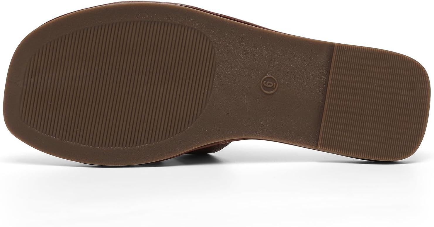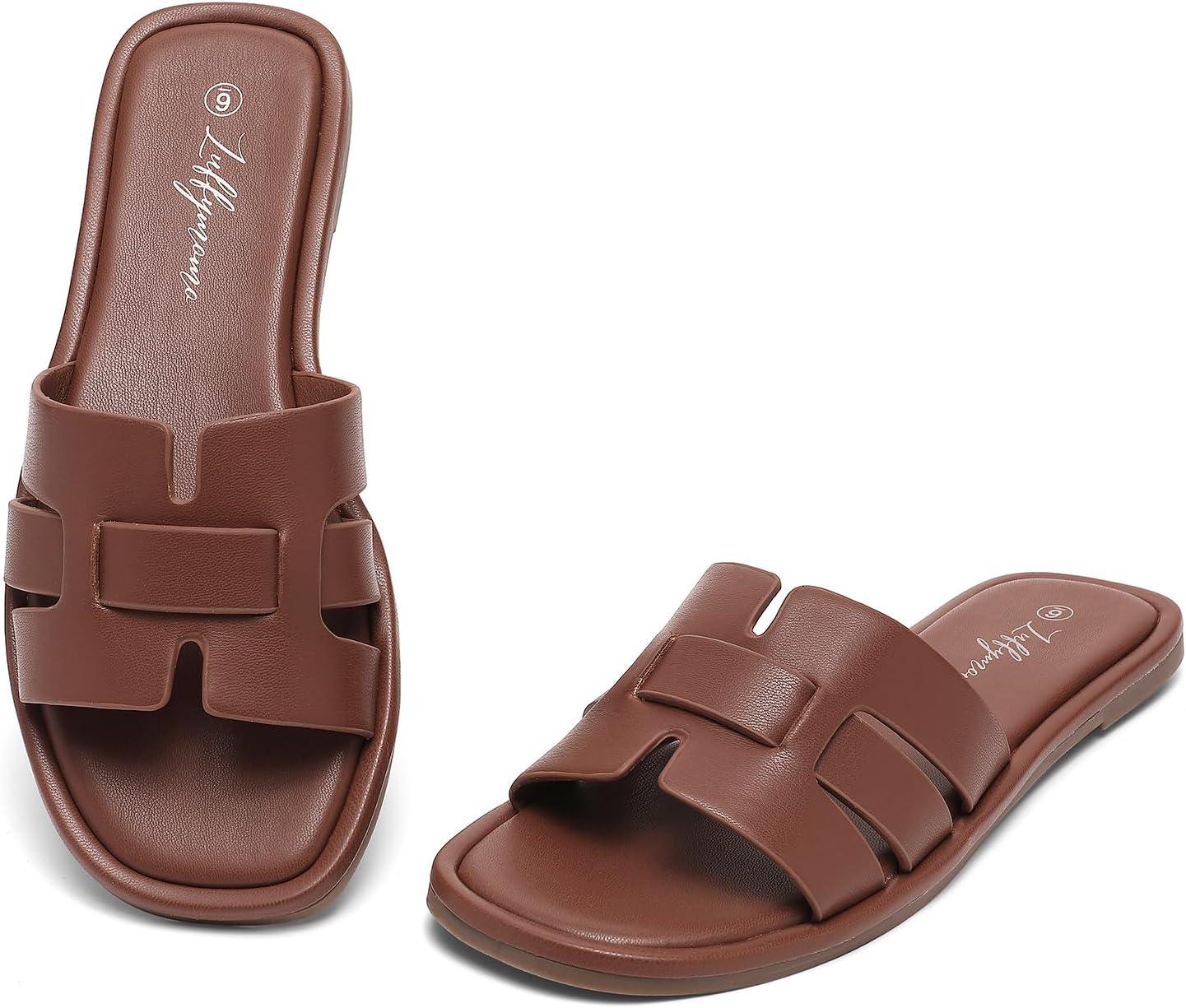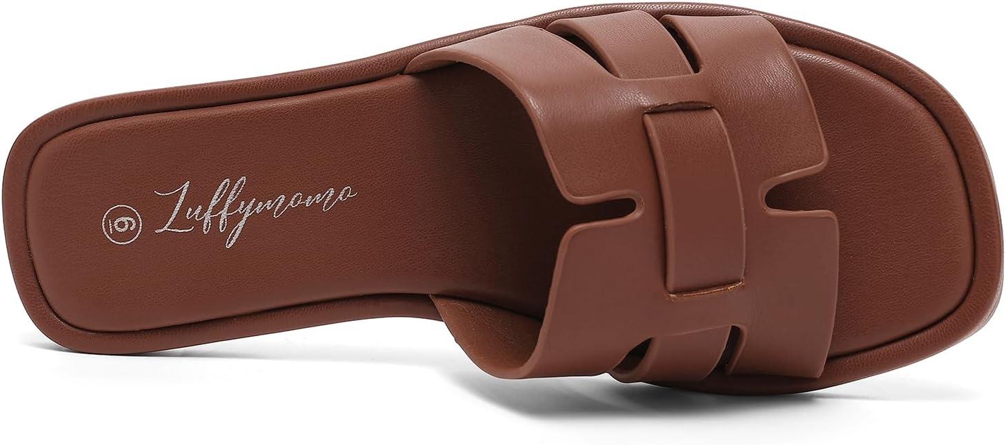 Luffymomo Womens Slip on Flat Sandals Comfortable Summer Casual Slides Sandals(Brown)