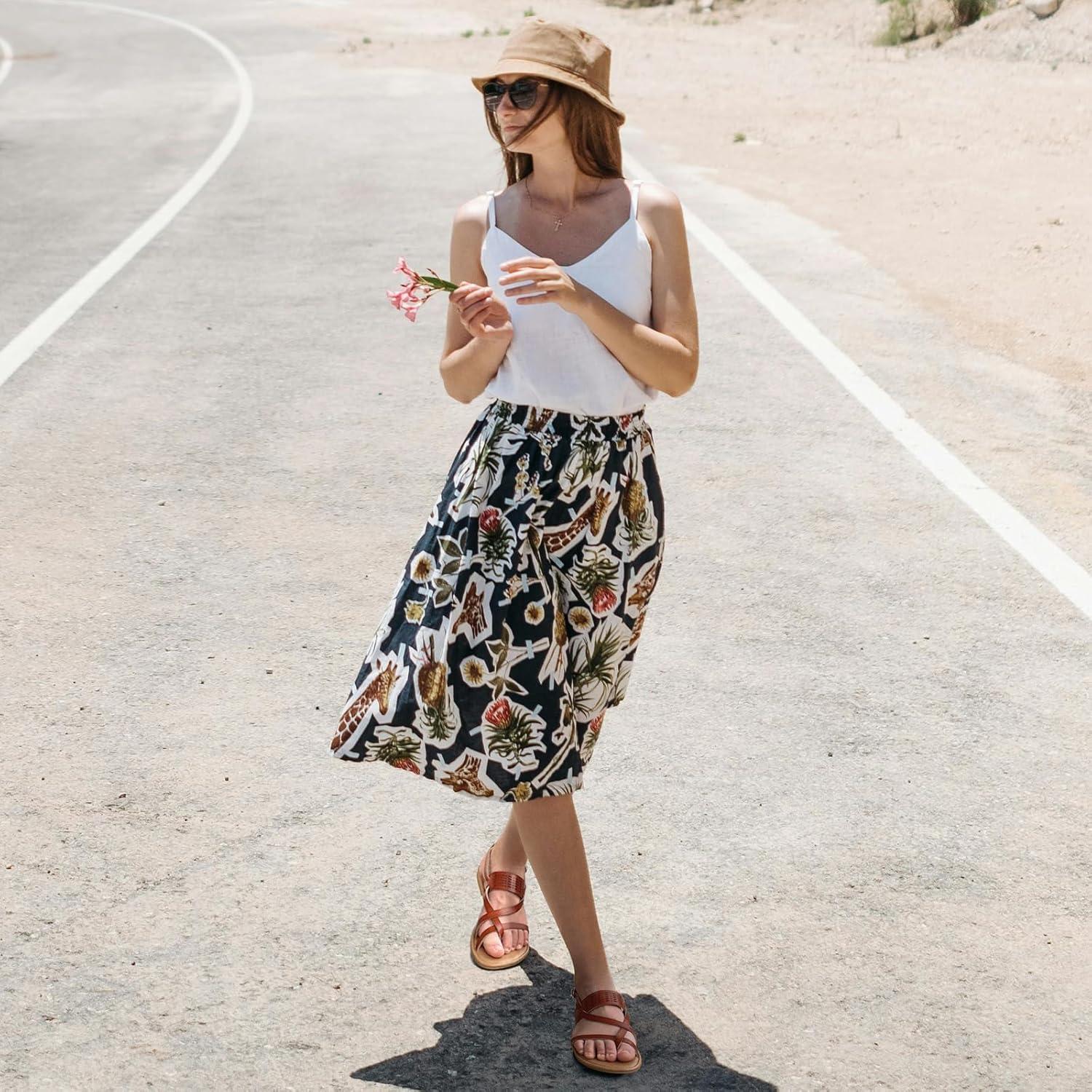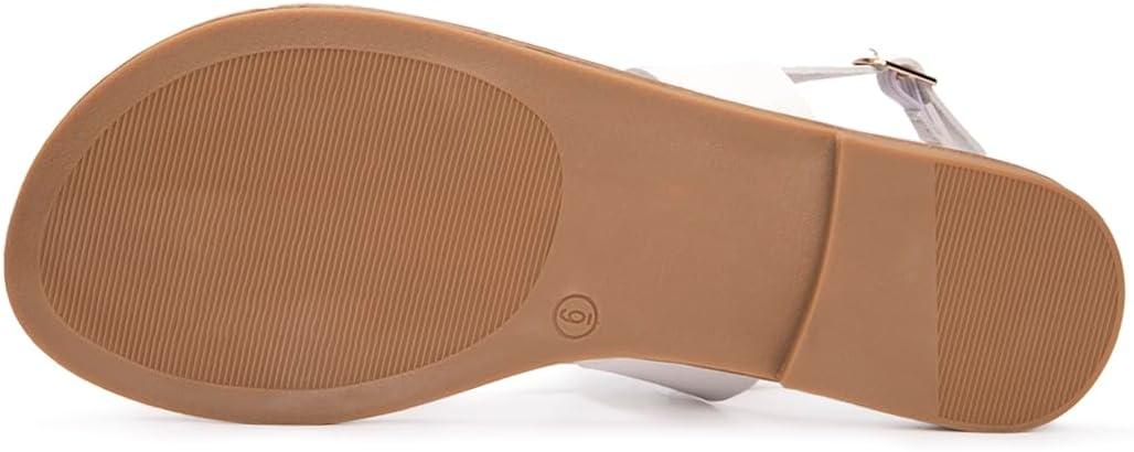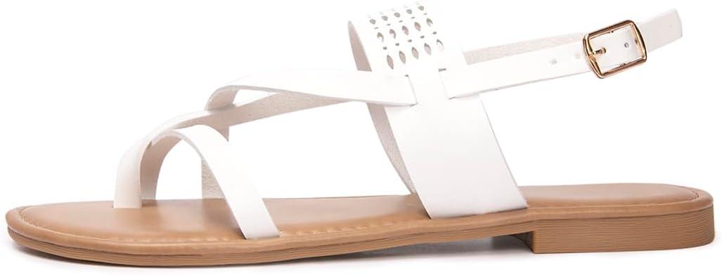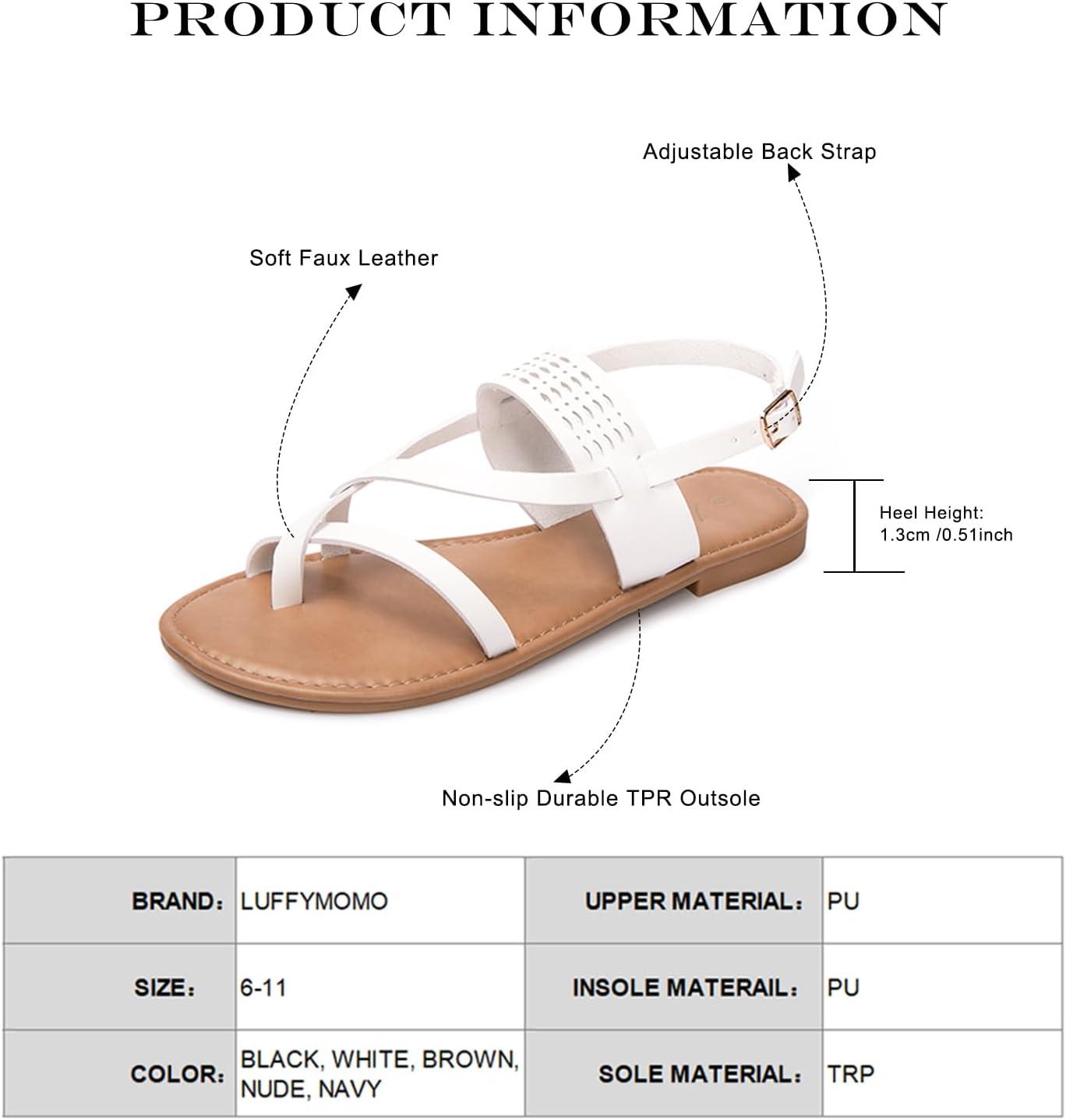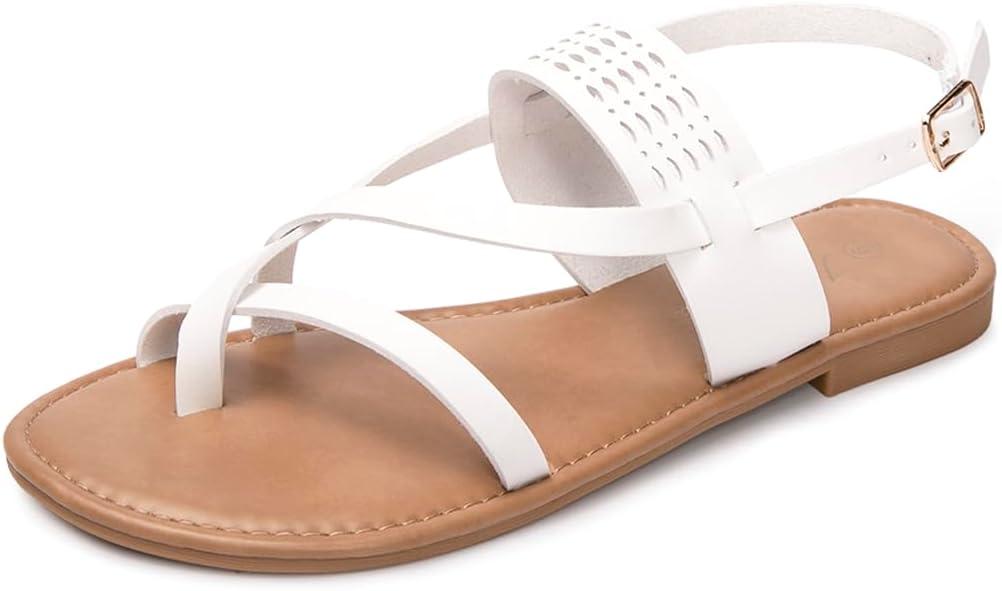 Luffymomo Womens Strappy Flat Sandals Leathe Gladiator Sandals Summer Casual Fisherman Thong(White)