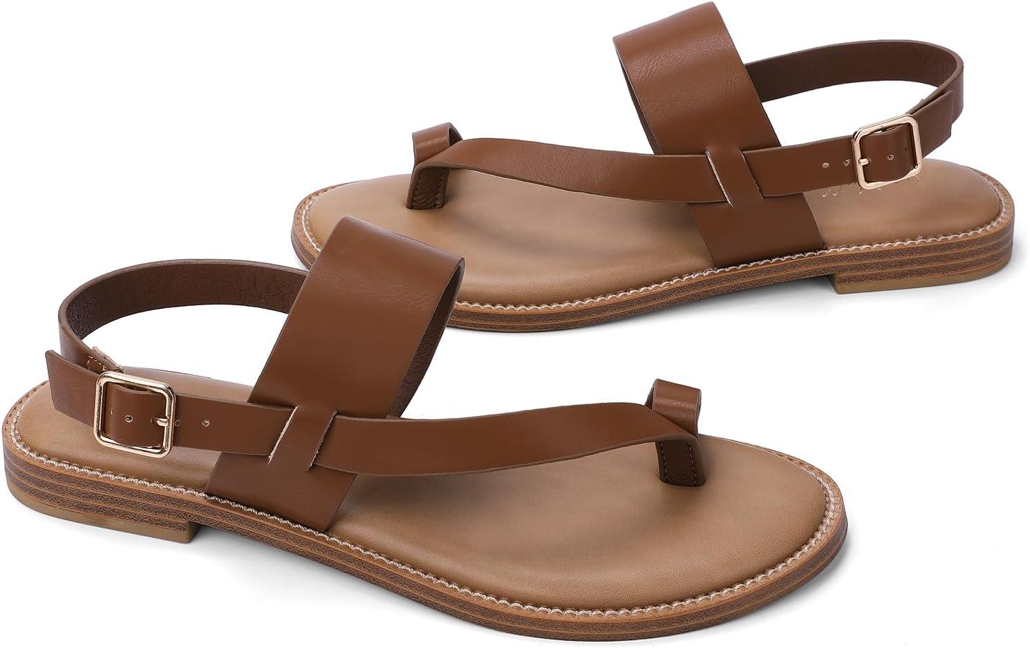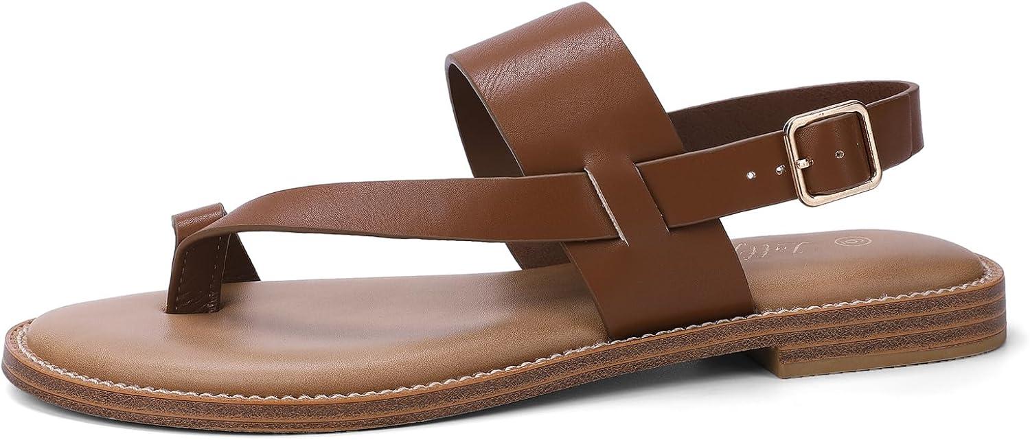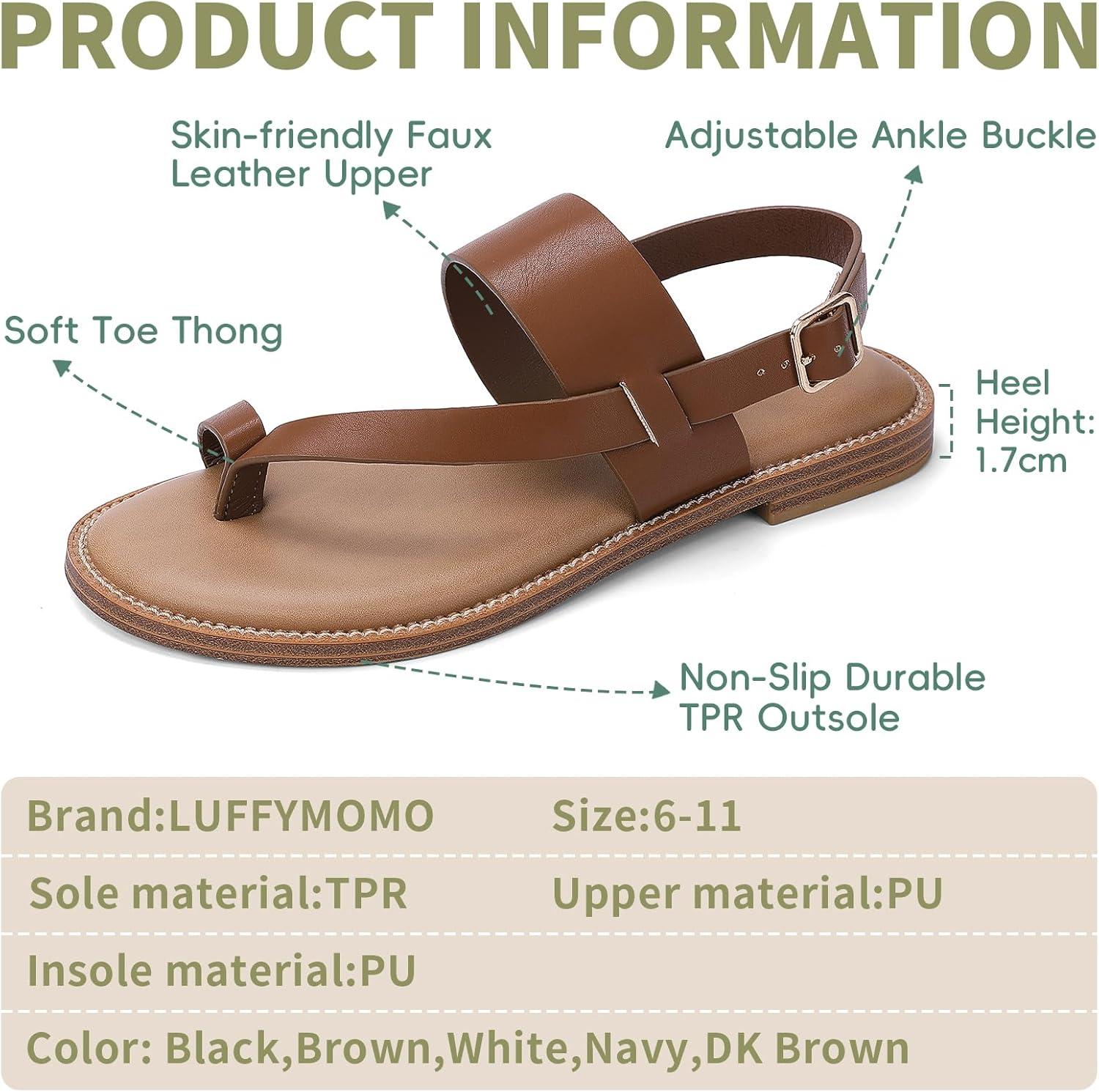 Luffymomo Women’s Thong Flat Sandals Adjustable Ankle Buckle Summer Sandal Casual Open Toe Fisherman Shoes(Dk Brown)