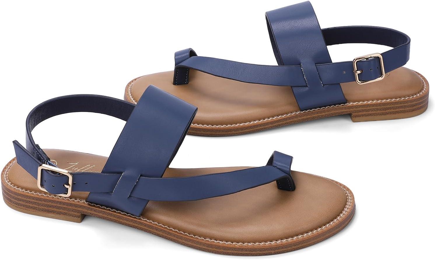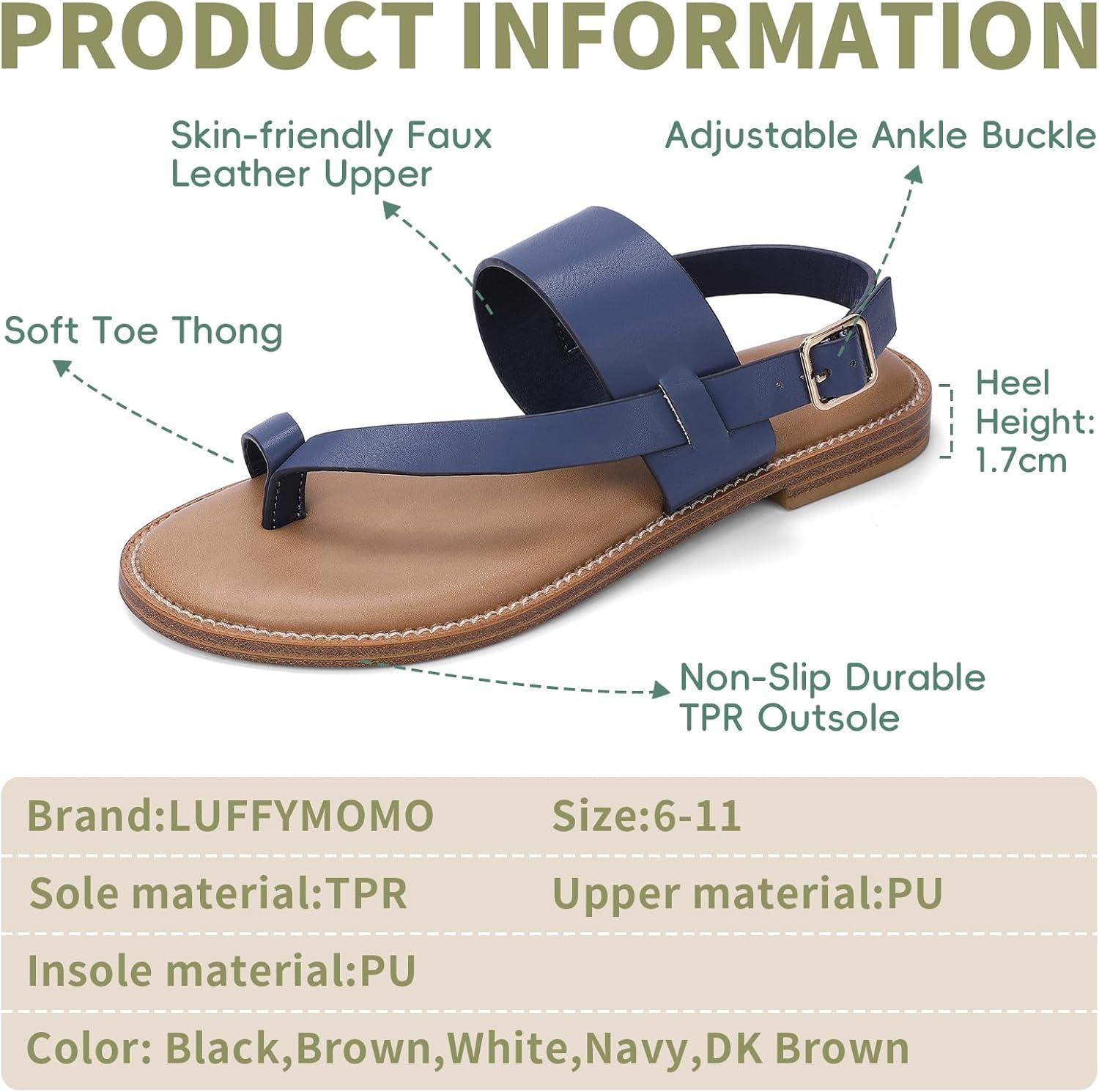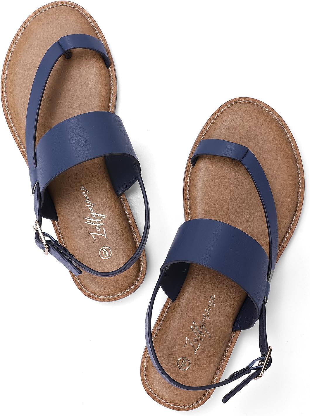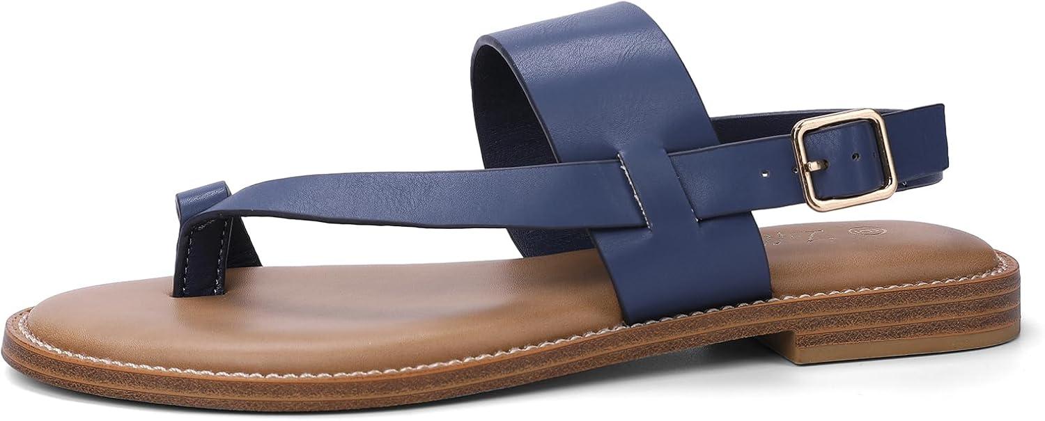 Luffymomo Women’s Thong Flat Sandals Adjustable Ankle Buckle Summer Sandal Casual Open Toe Fisherman Shoes(Navy)