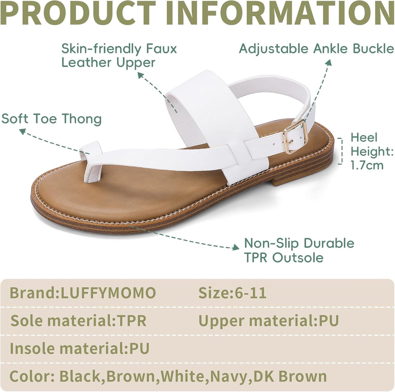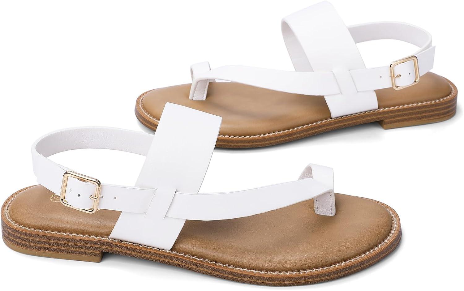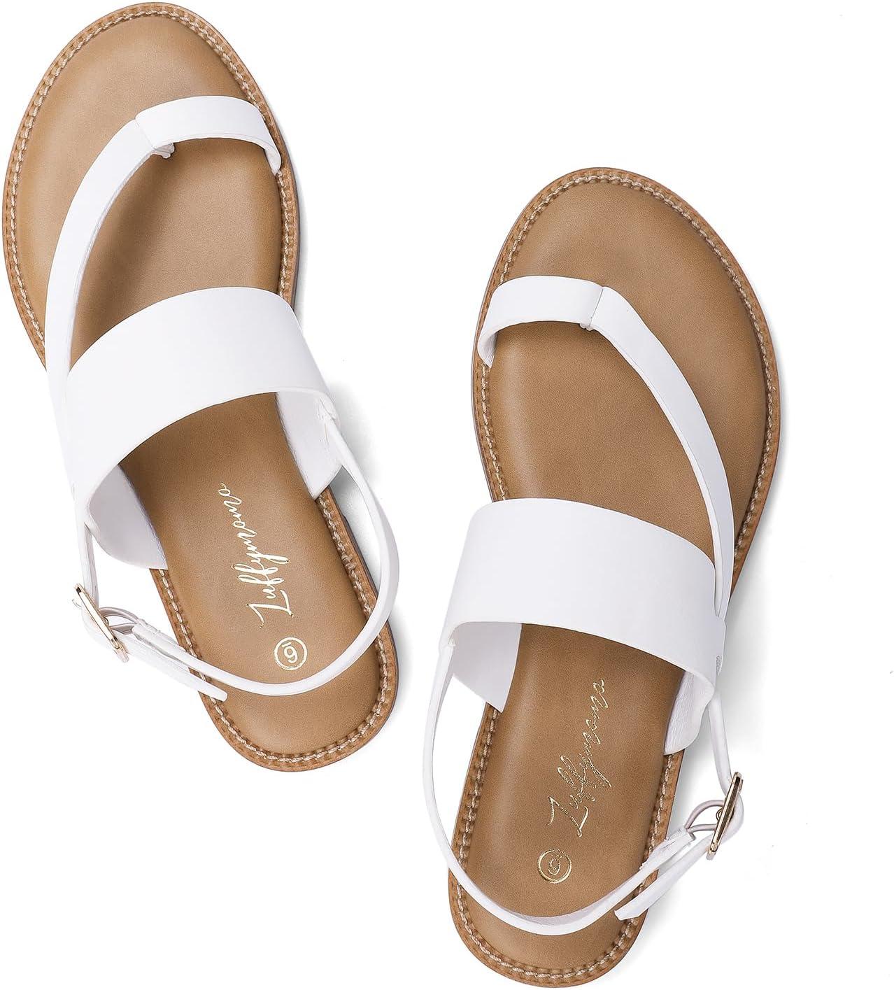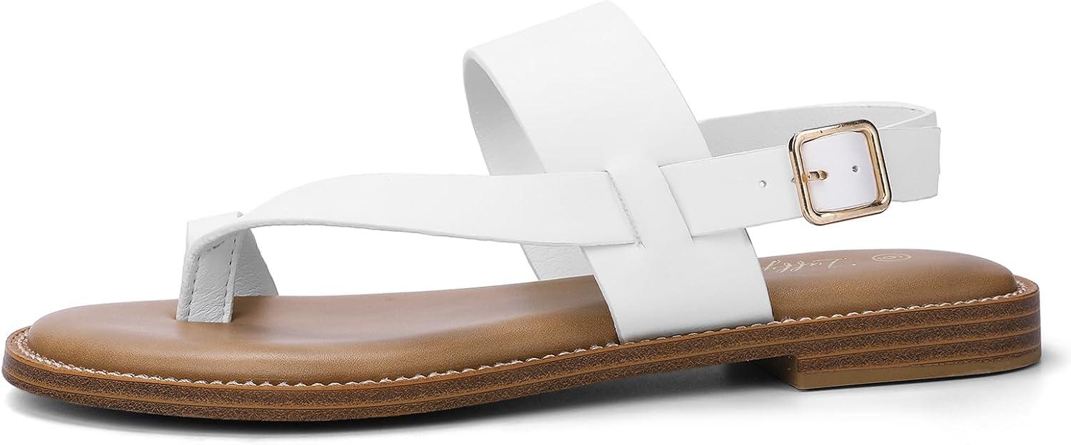 Luffymomo Women’s Thong Flat Sandals Adjustable Ankle Buckle Summer Sandal Casual Open Toe Fisherman Shoes(White)