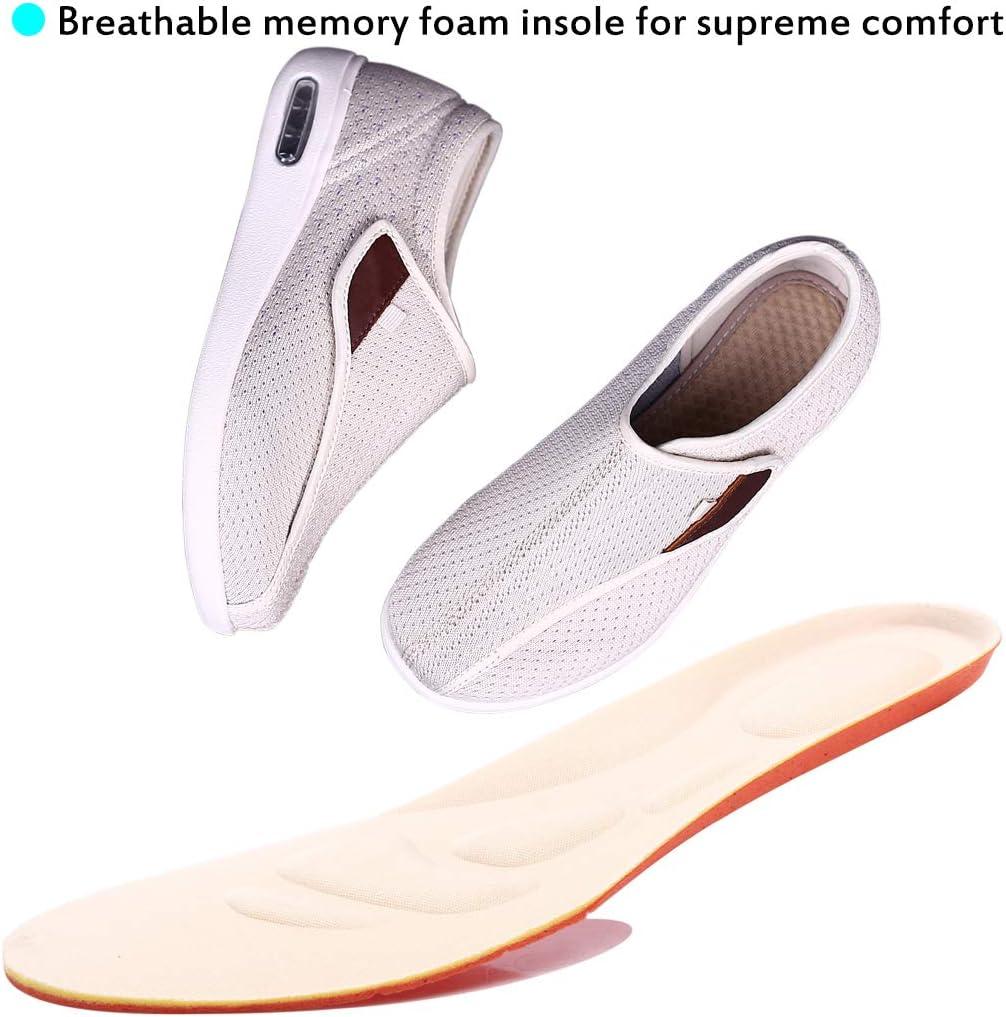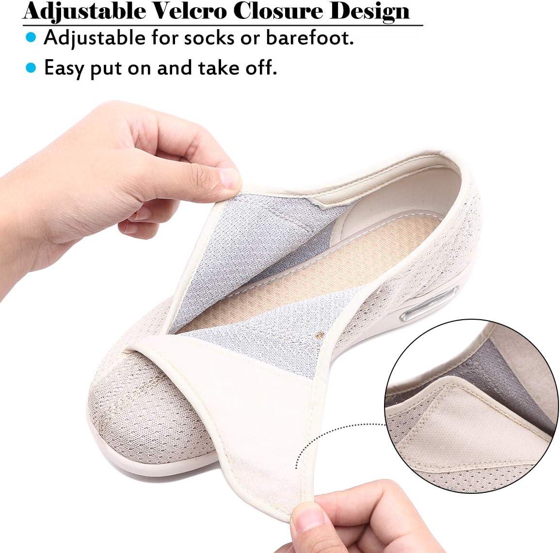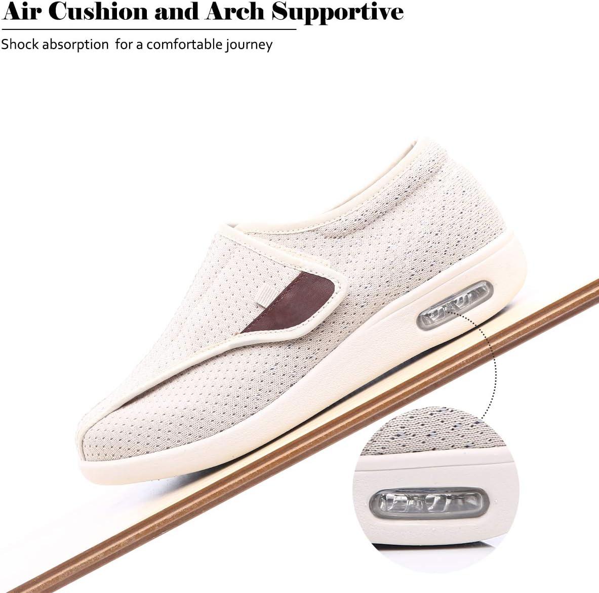Mei MACLEOD Comfortable Wide Shoes with Adjustable Strap Closure Lightweight Arch Supportive Sneakers for Seniors Diabetic Swollen Feet(Beige)