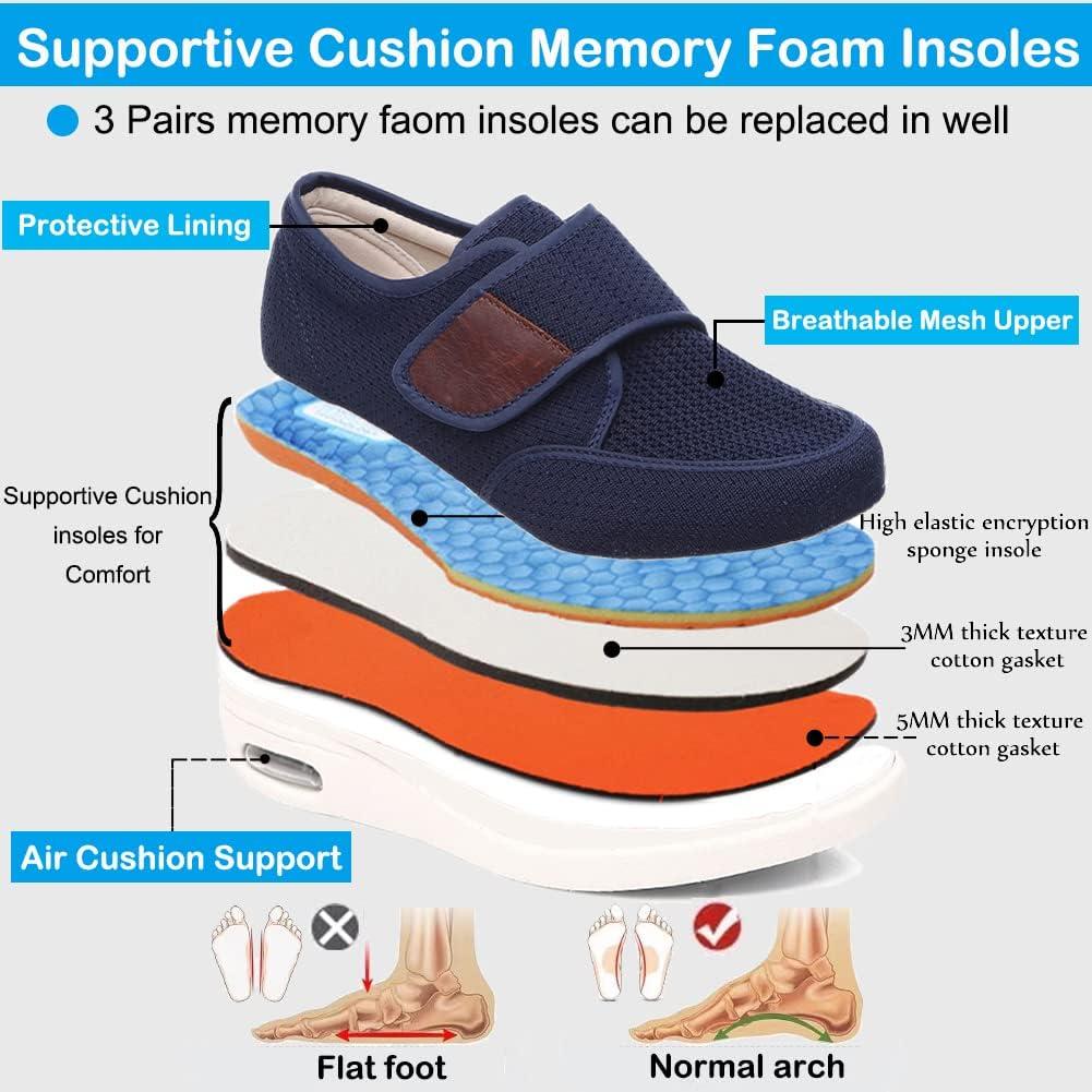 Mei MACLEOD Diabetic Shoes for Men Extra Wide Shoes for Swollen Feet Adjustable Walking Shoes for Elderly Foot Pain Relief(Blue)