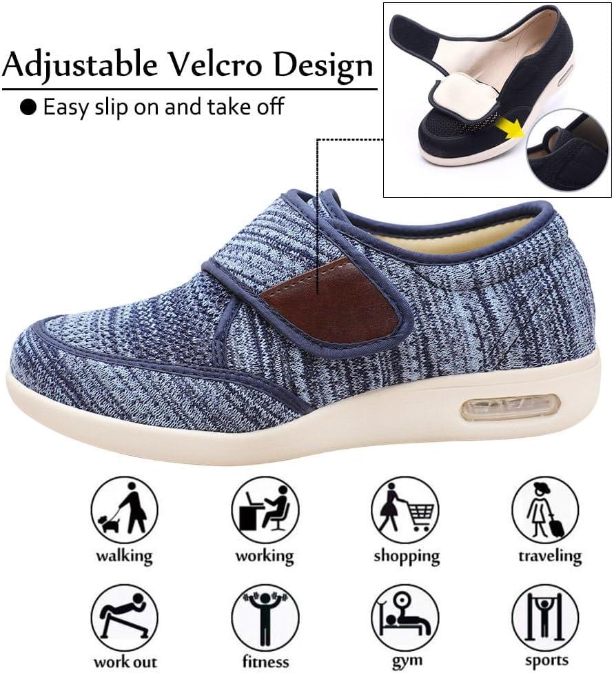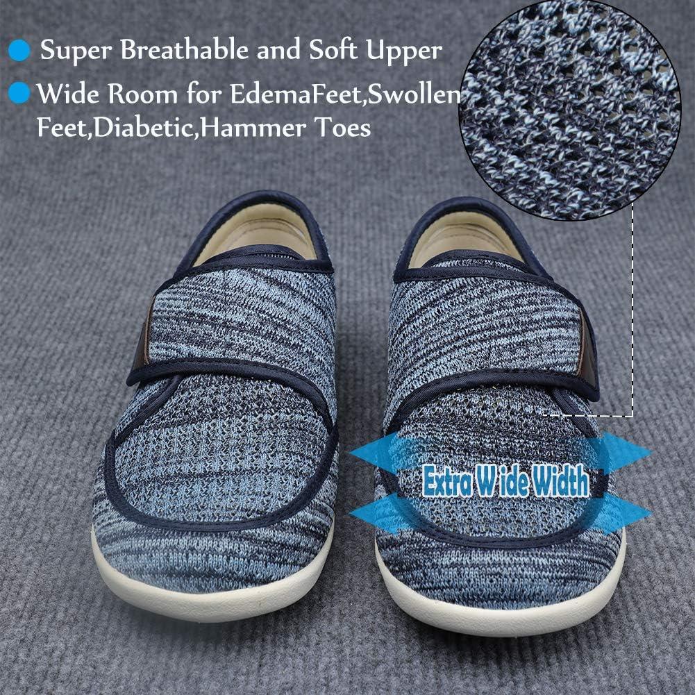 Mei MACLEOD Diabetic Shoes for Men Extra Wide Shoes for Swollen Feet Adjustable Walking Shoes for Elderly Foot Pain Relief(Knit Blue)