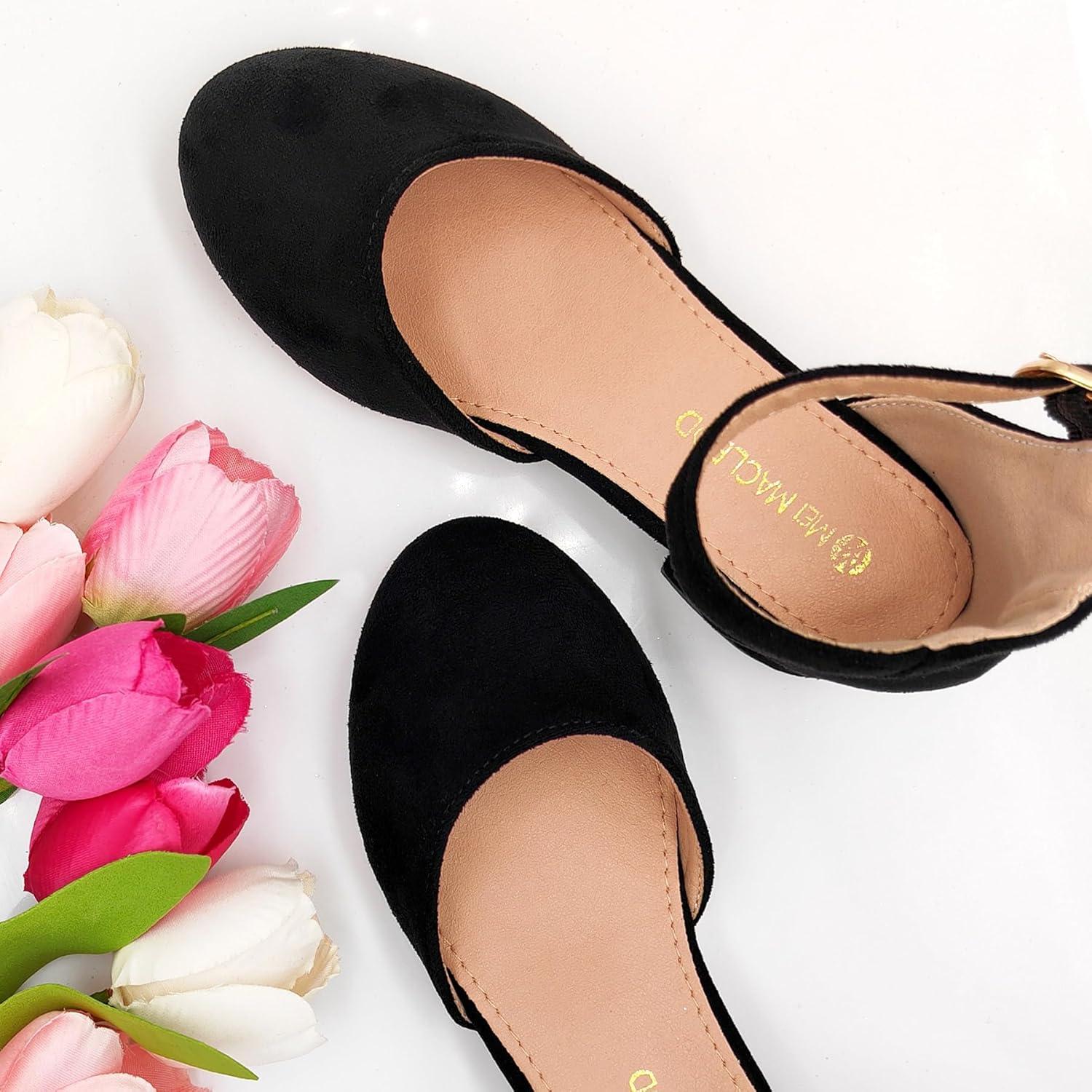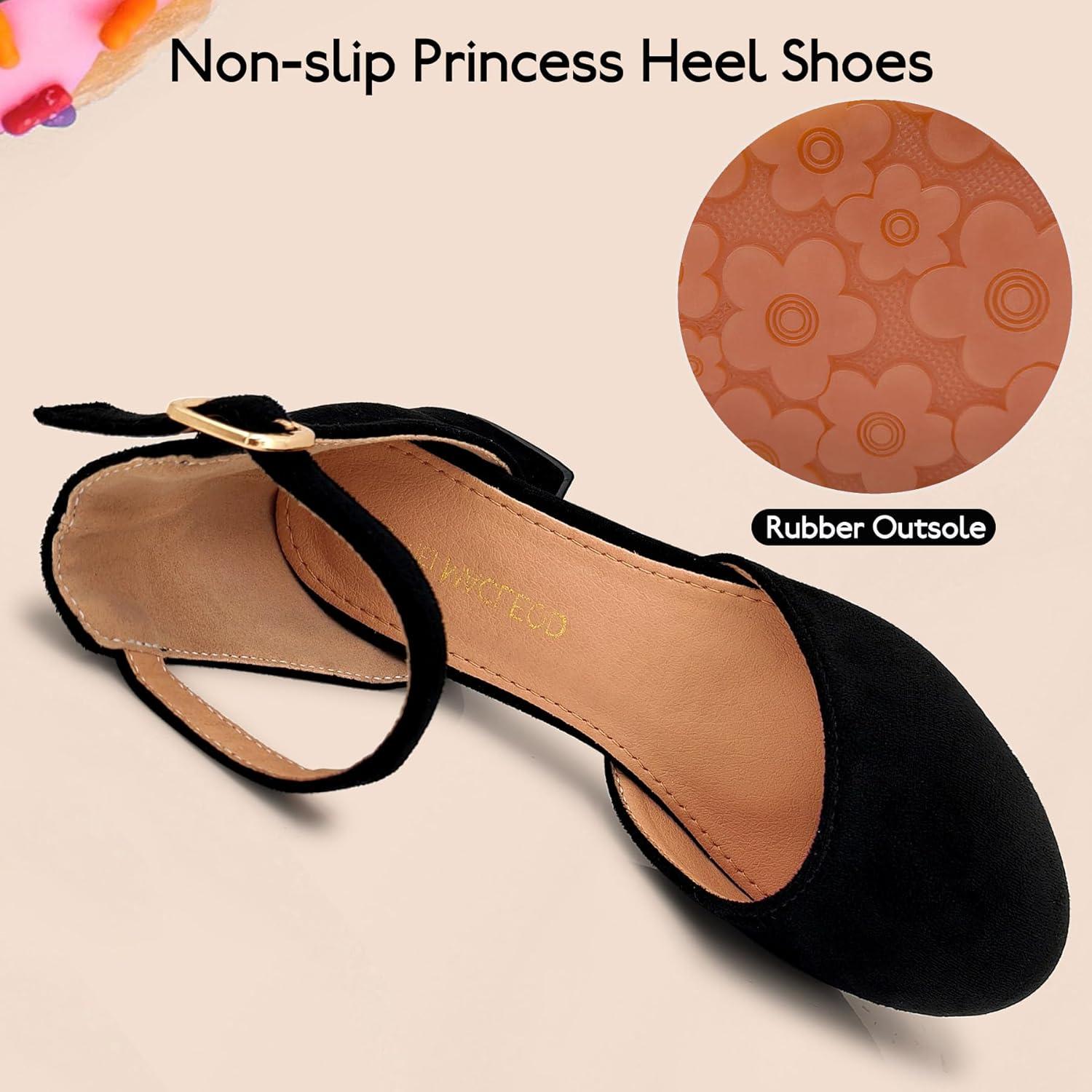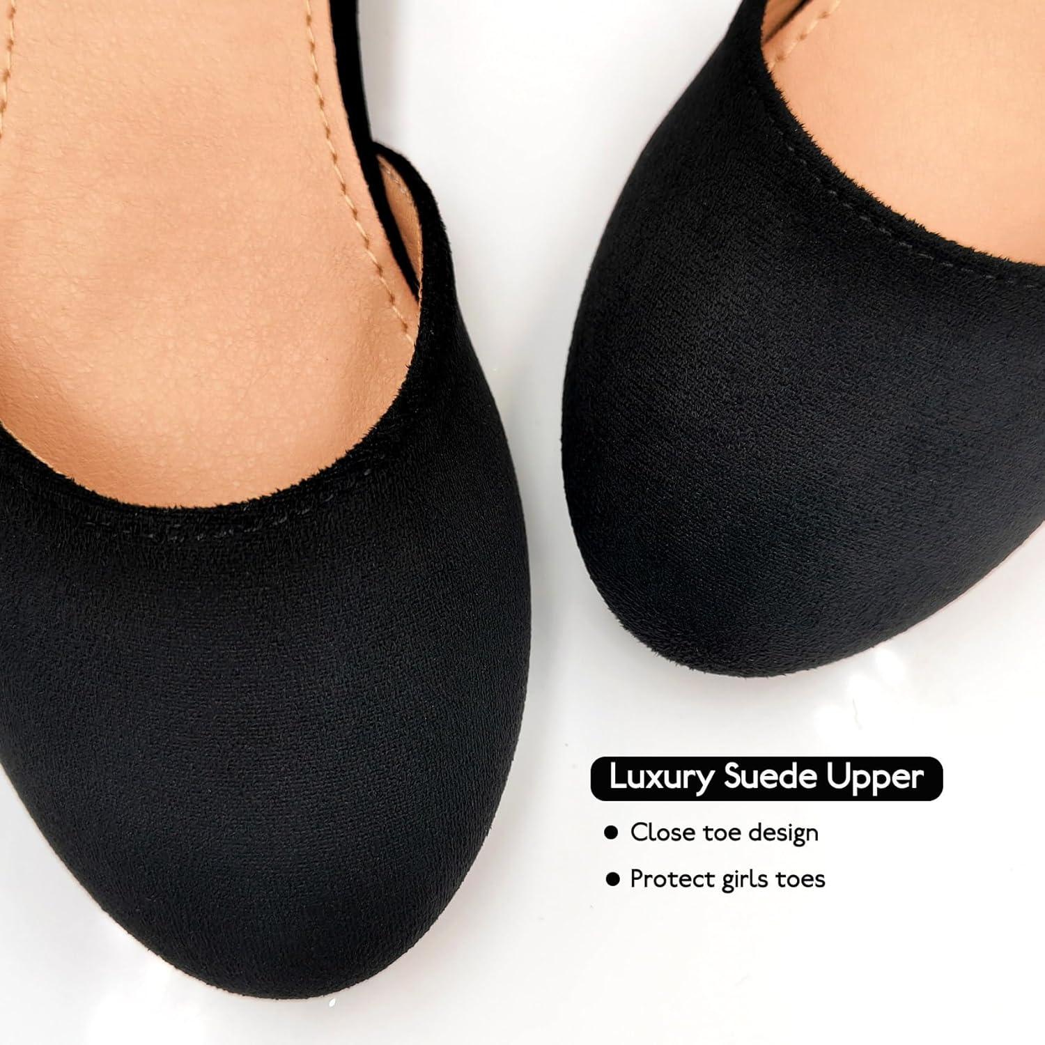 Mei MACLEOD Girls Dress Shoes Sparkly Princess Low Heel Shoes Chunky Heels with Ankle Strap for Wedding Holiday Party(Suede Black)