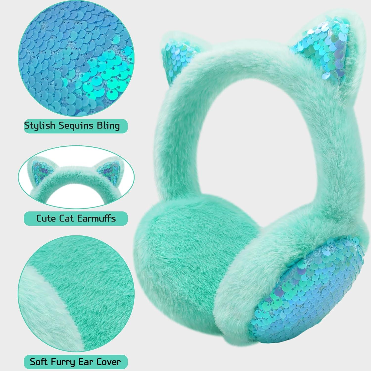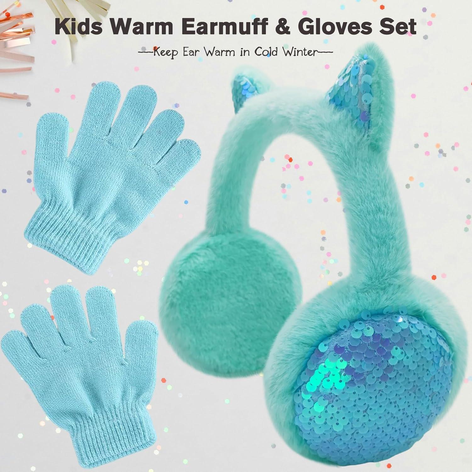 Mei MACLEOD Girls Earmuffs Knit Winter Ear Muffs Gloves Set for Kids Boys Cold Weather Ear Warmer(B-cyan (Earmuff Gloves Set))