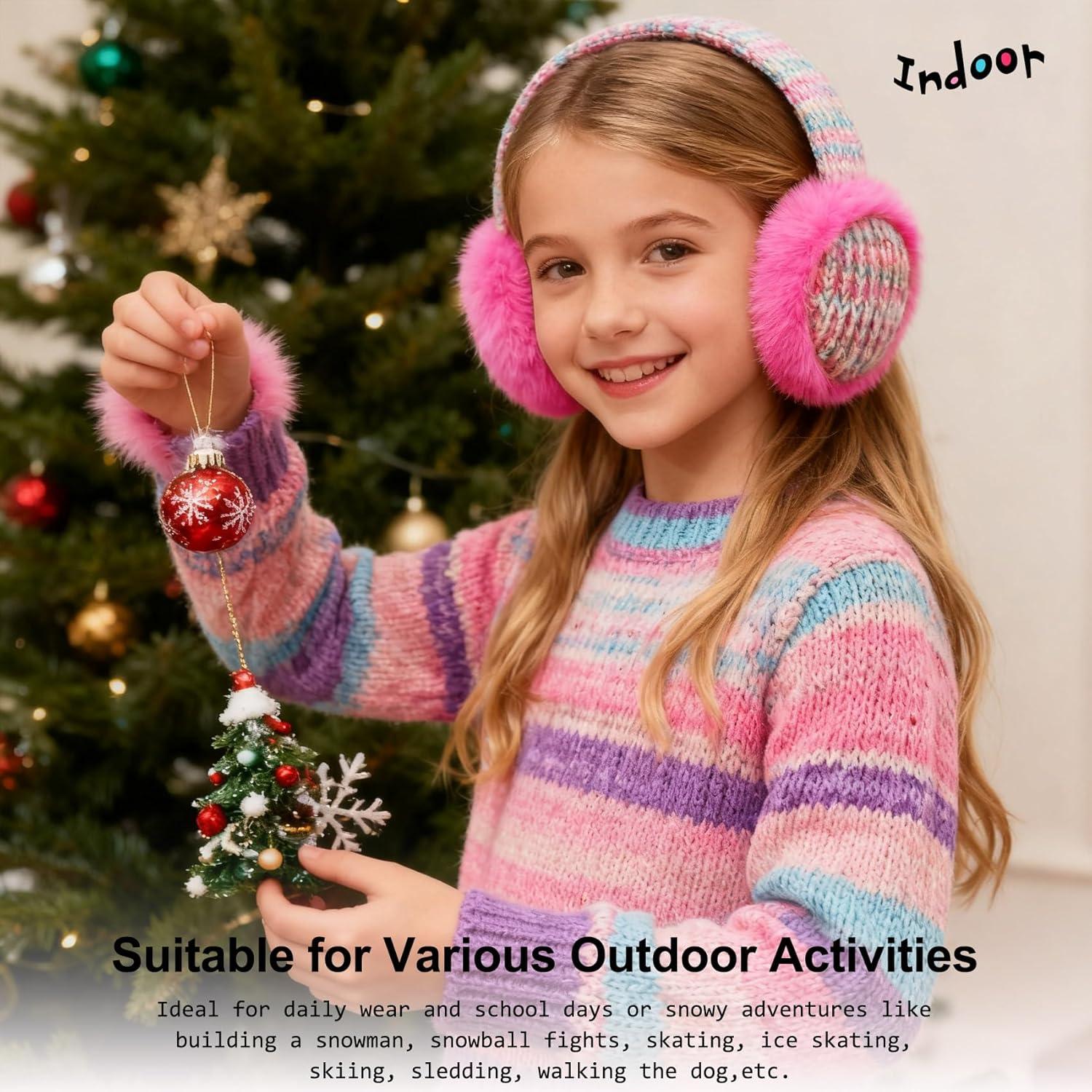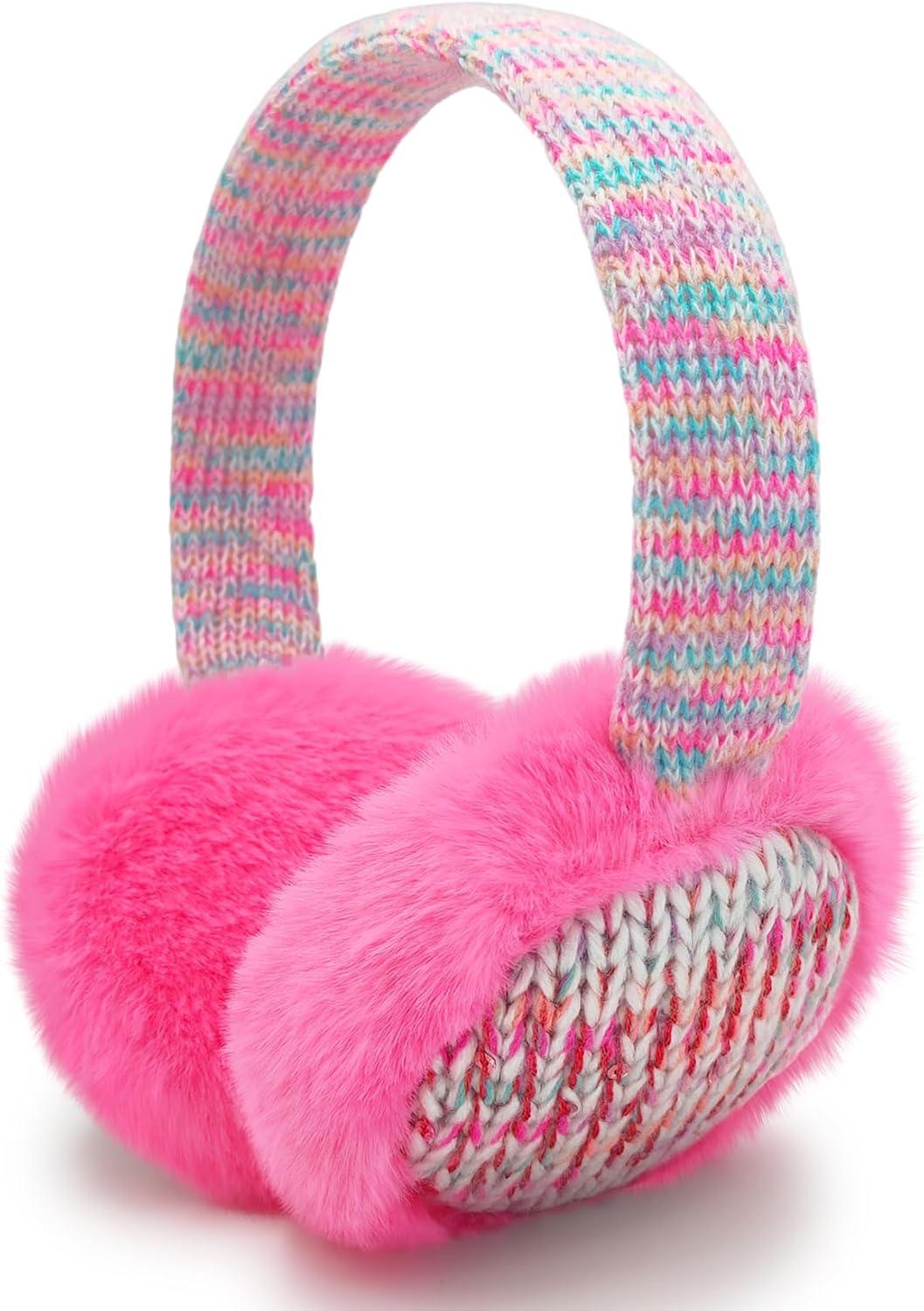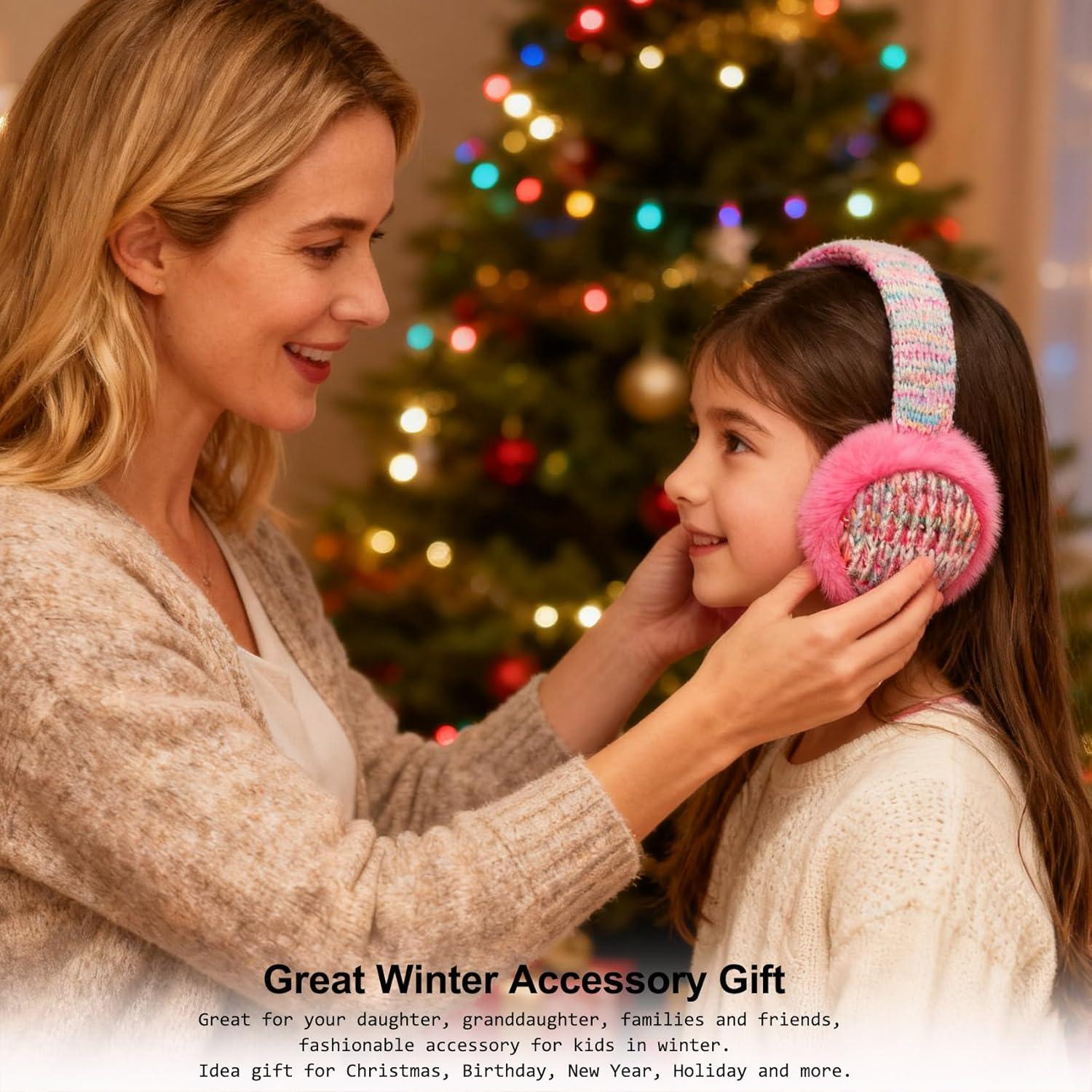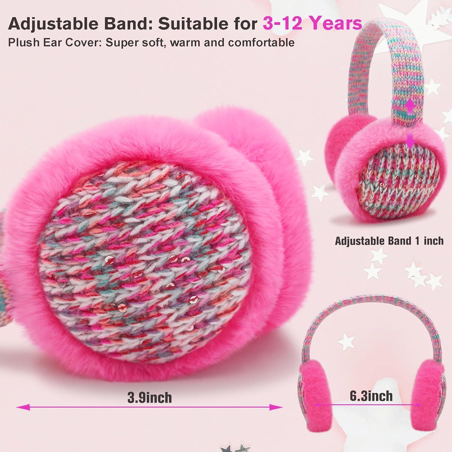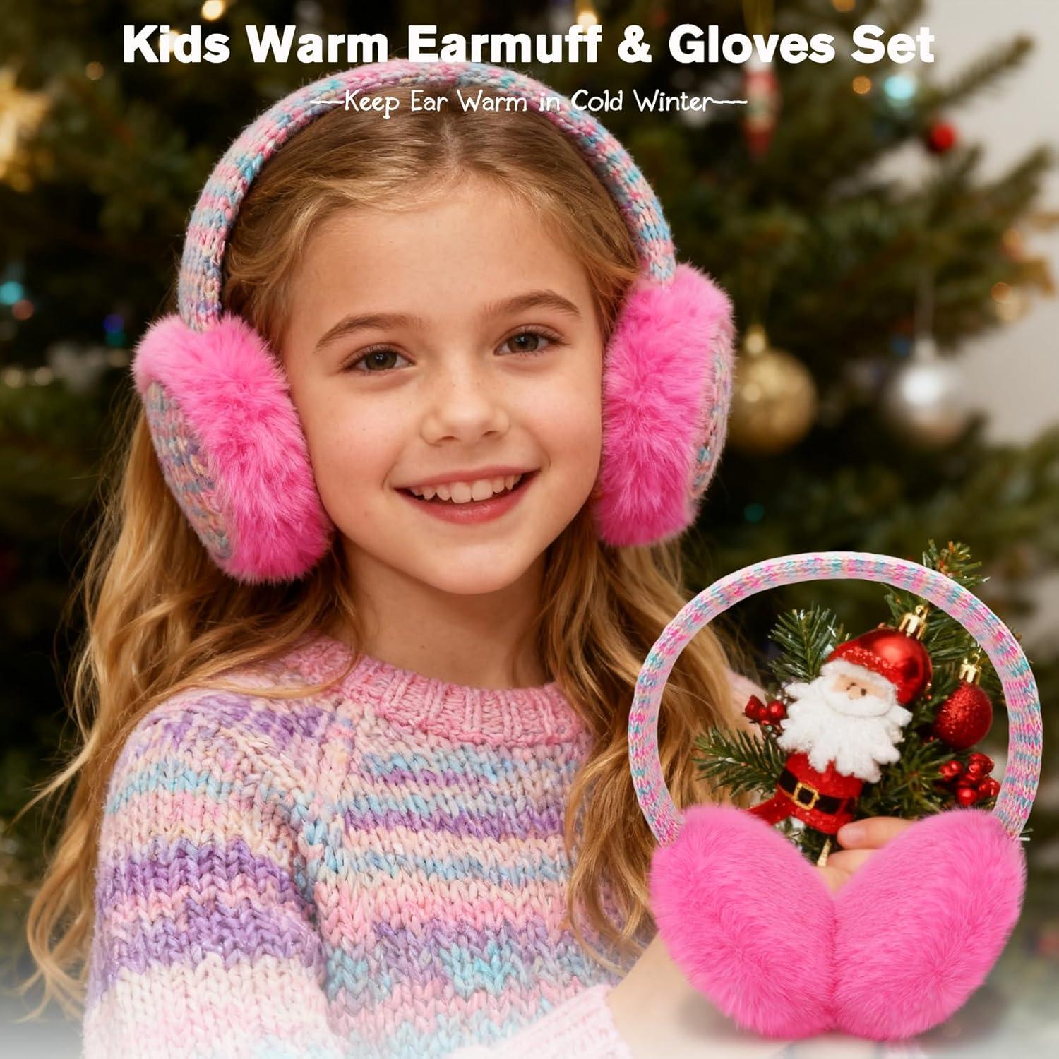 Mei MACLEOD Girls Earmuffs Knit Winter Ear Muffs Gloves Set for Kids Boys Cold Weather Ear Warmer(C-pink (Earmuff))