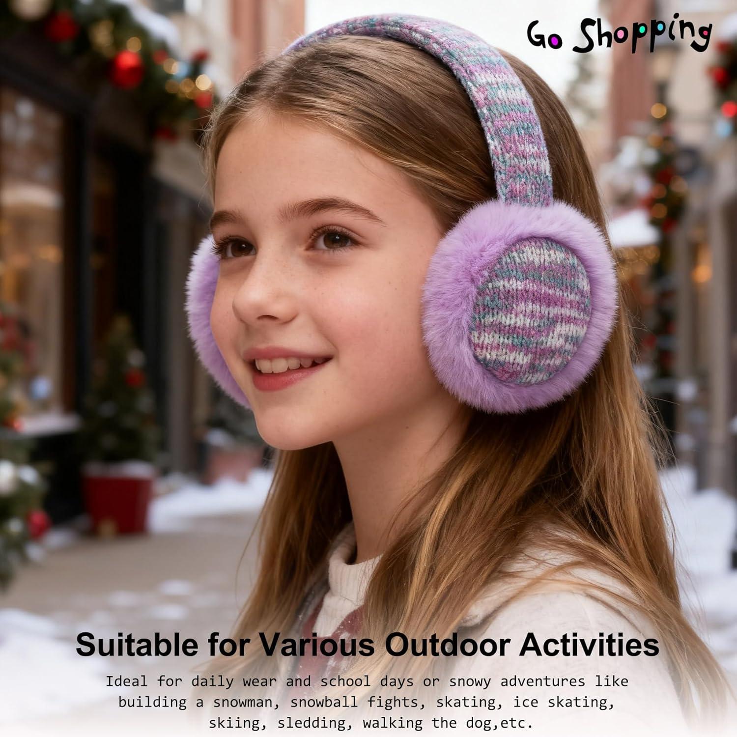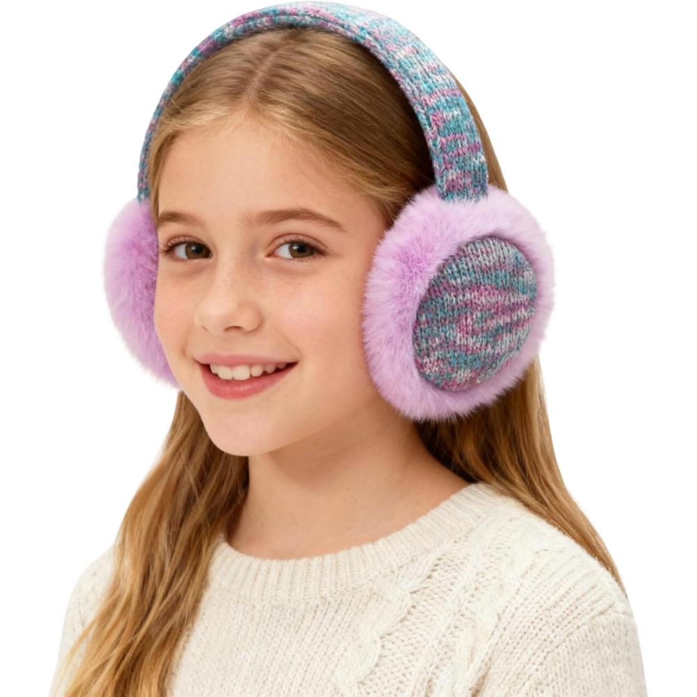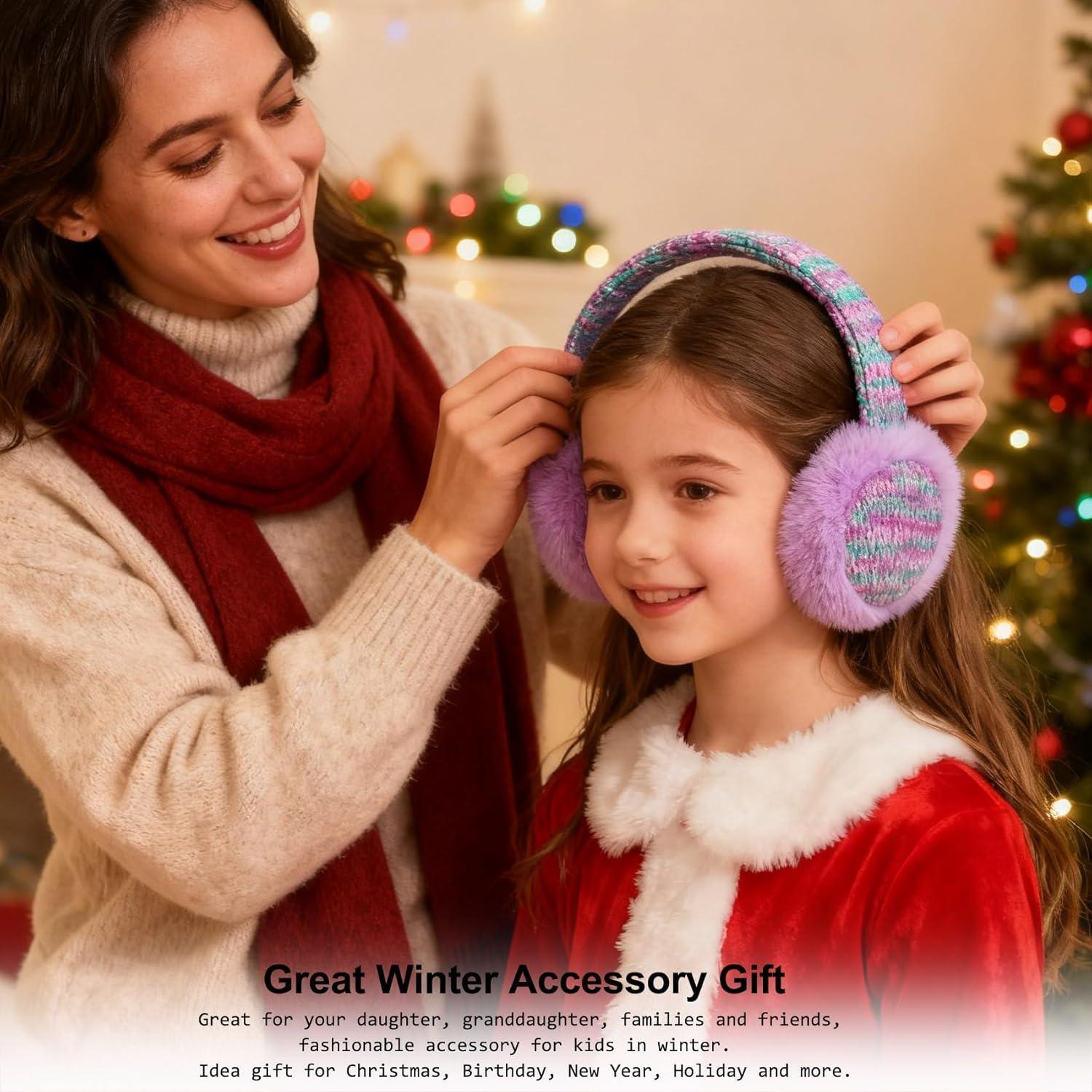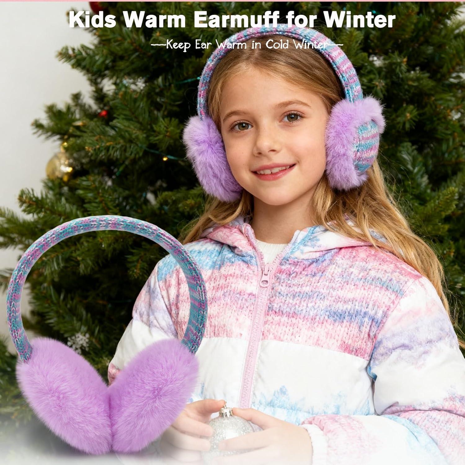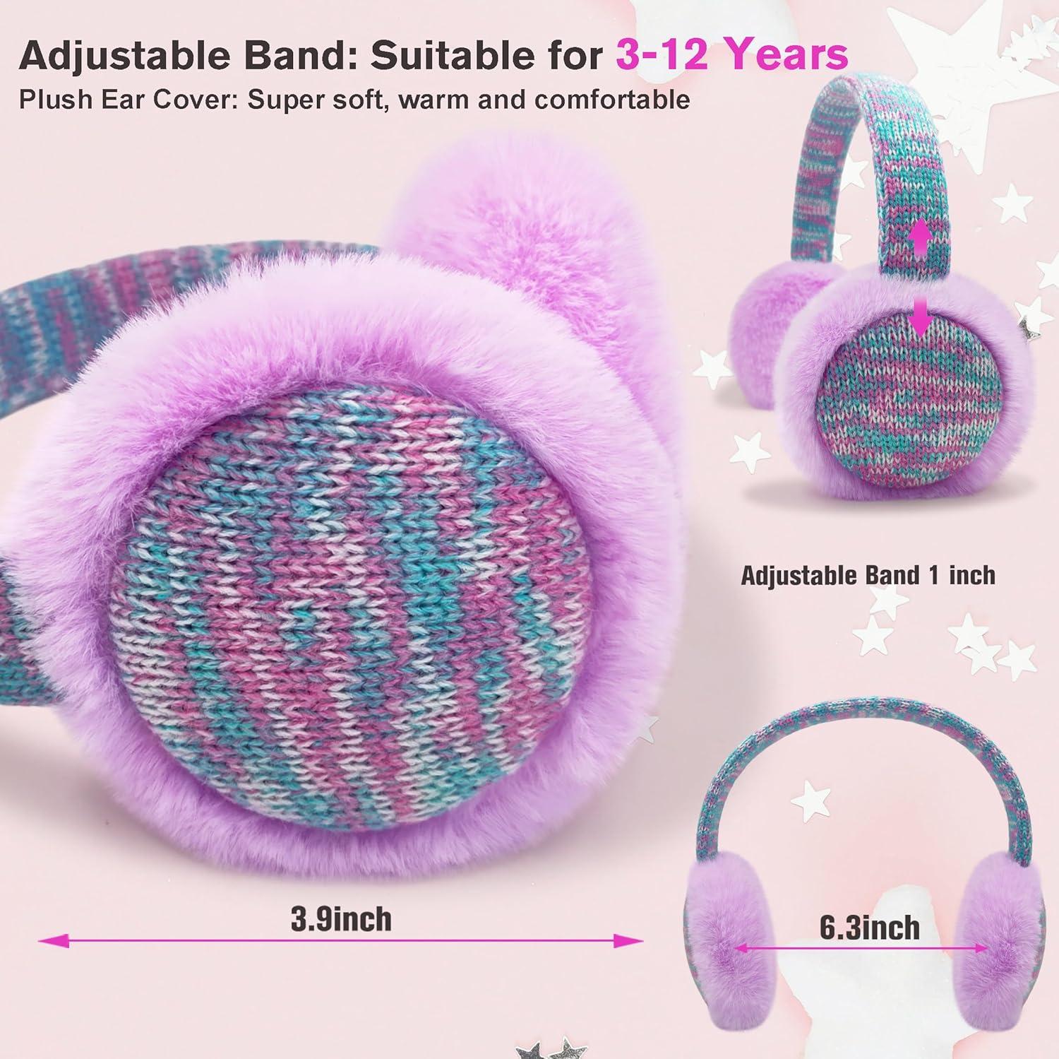 Mei MACLEOD Girls Earmuffs Knit Winter Ear Muffs Gloves Set for Kids Boys Cold Weather Ear Warmer(C-purple (Earmuff))