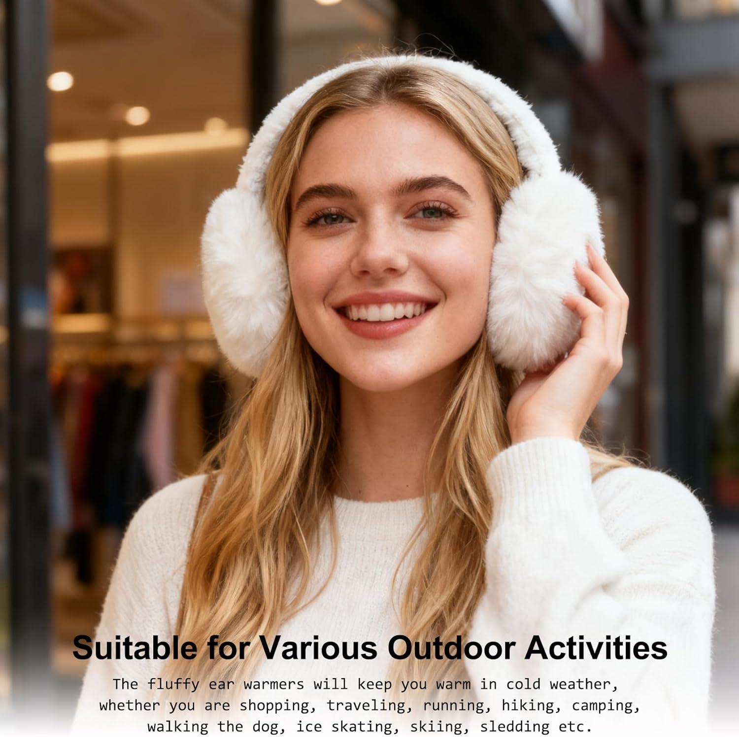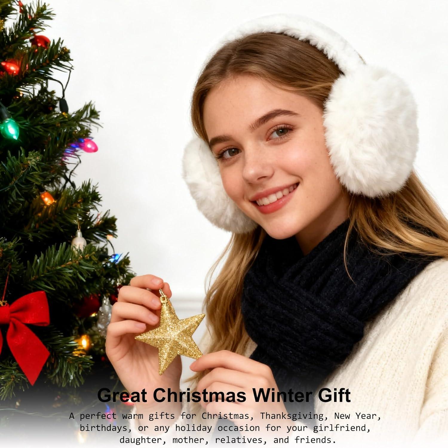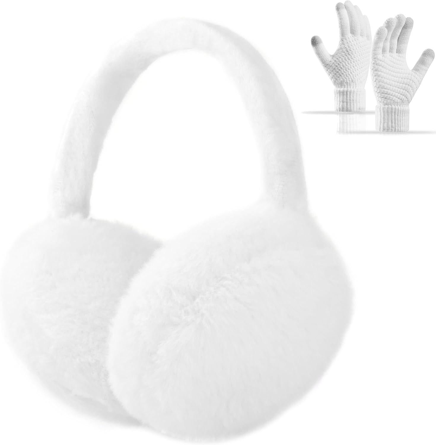 Mei MACLEOD Girls Earmuffs Knit Winter Ear Muffs Gloves Set for Kids Boys Cold Weather Ear Warmer(D-white (Earmuff Gloves Set))