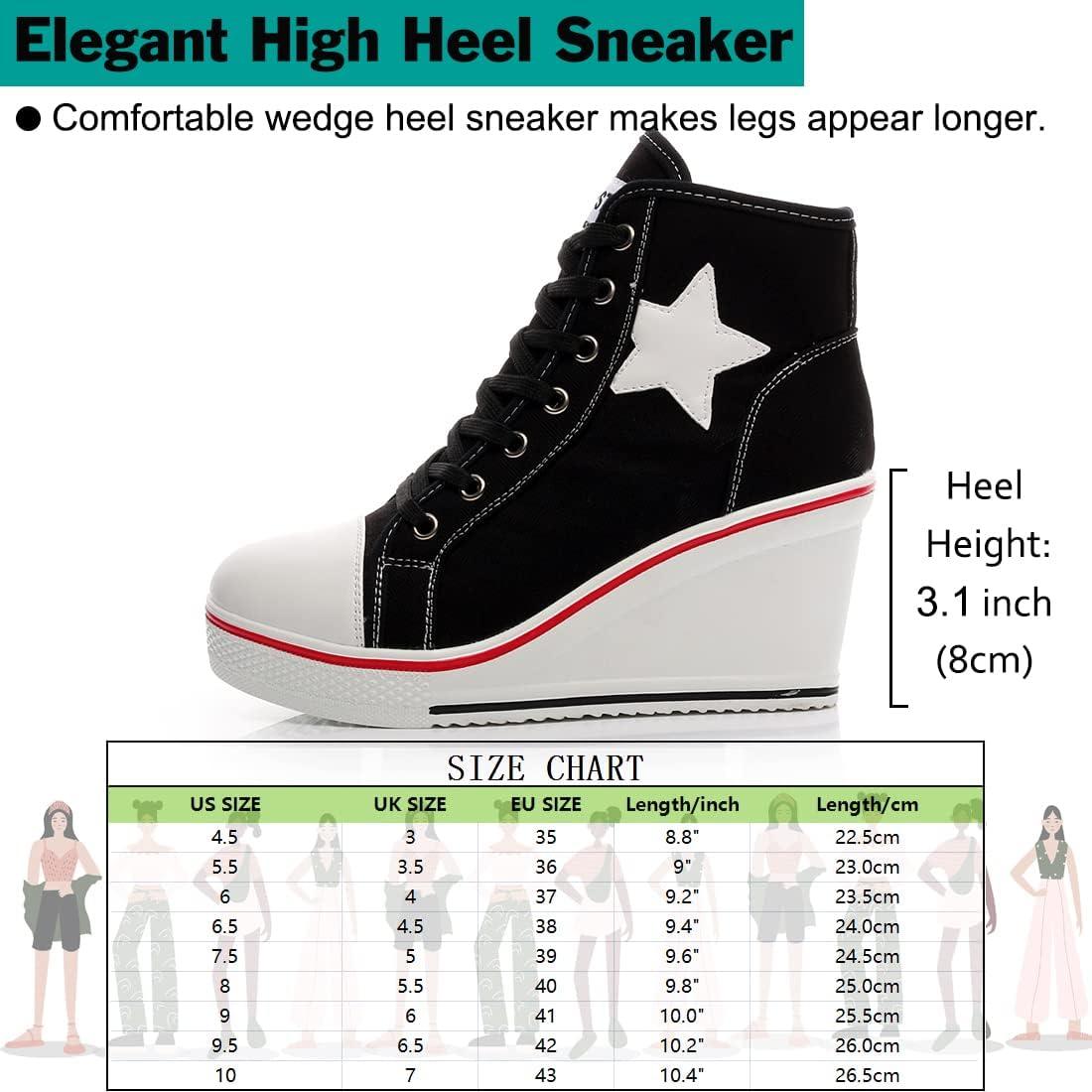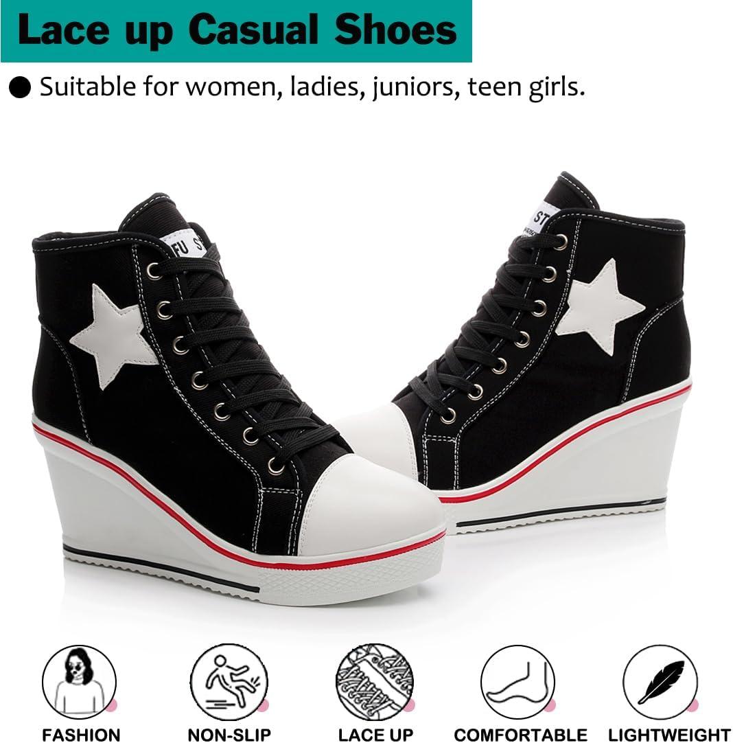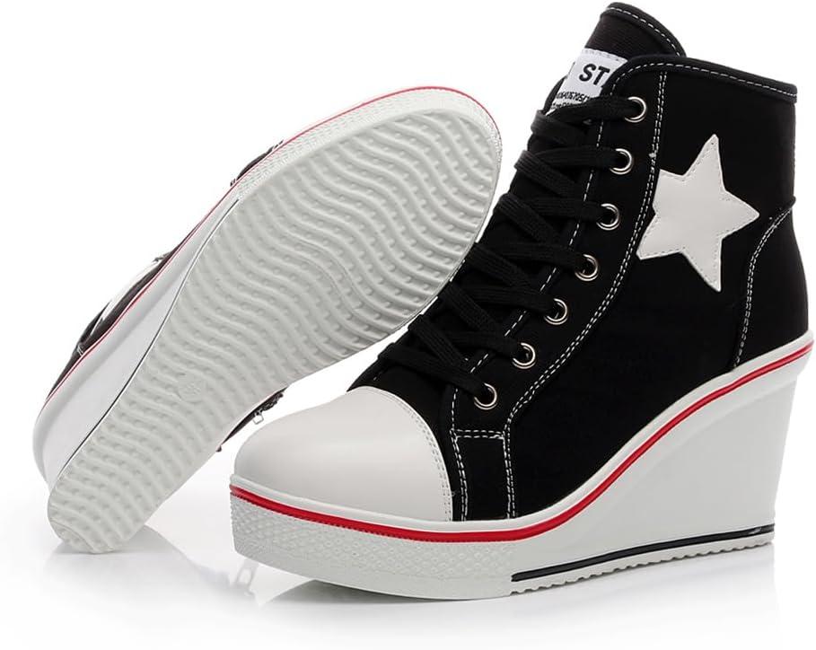 Mei MACLEOD High Heel Wedge Sneakers for Women Casual Lace Up Canvas Shoes for Ladies Platform Wedge Shoes AnkleBooties(Black)
