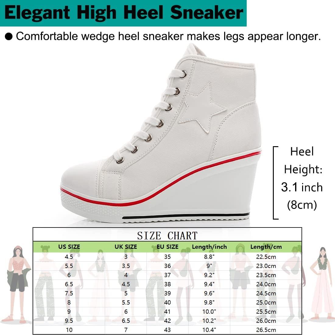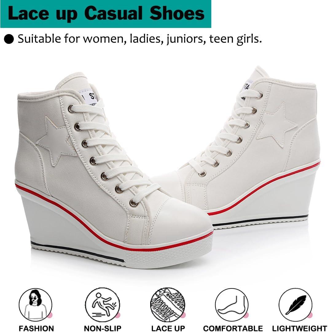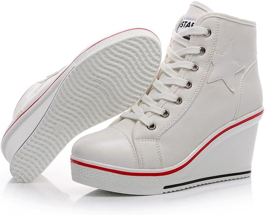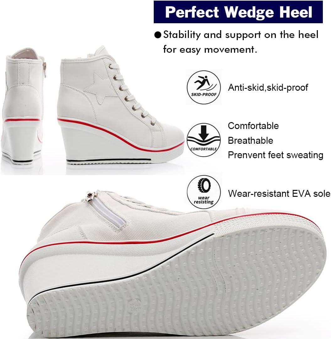 Mei MACLEOD High Heel Wedge Sneakers for Women Casual Lace Up Canvas Shoes for Ladies Platform Wedge Shoes AnkleBooties(White)