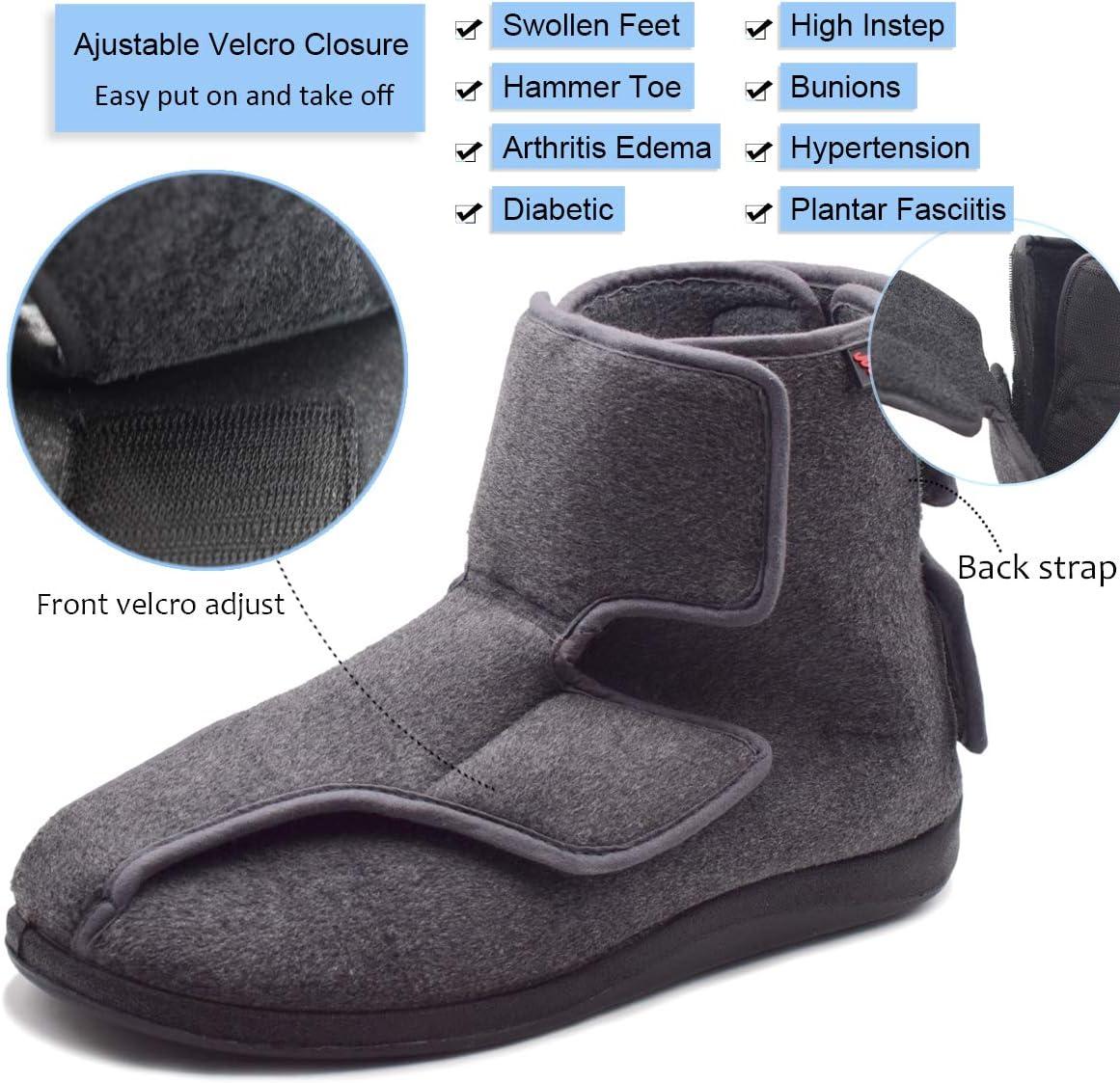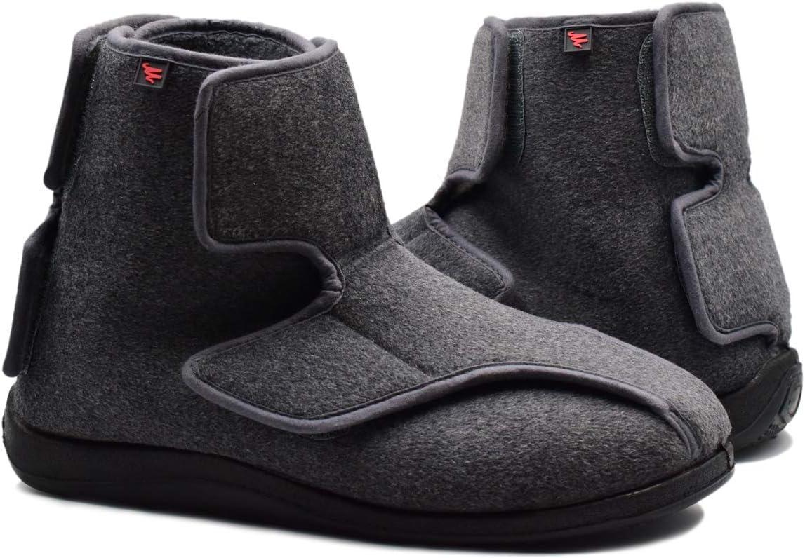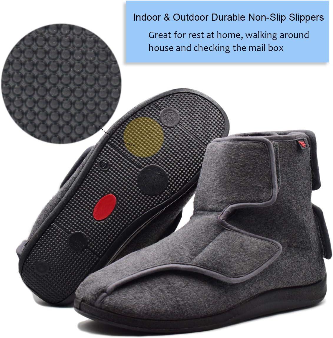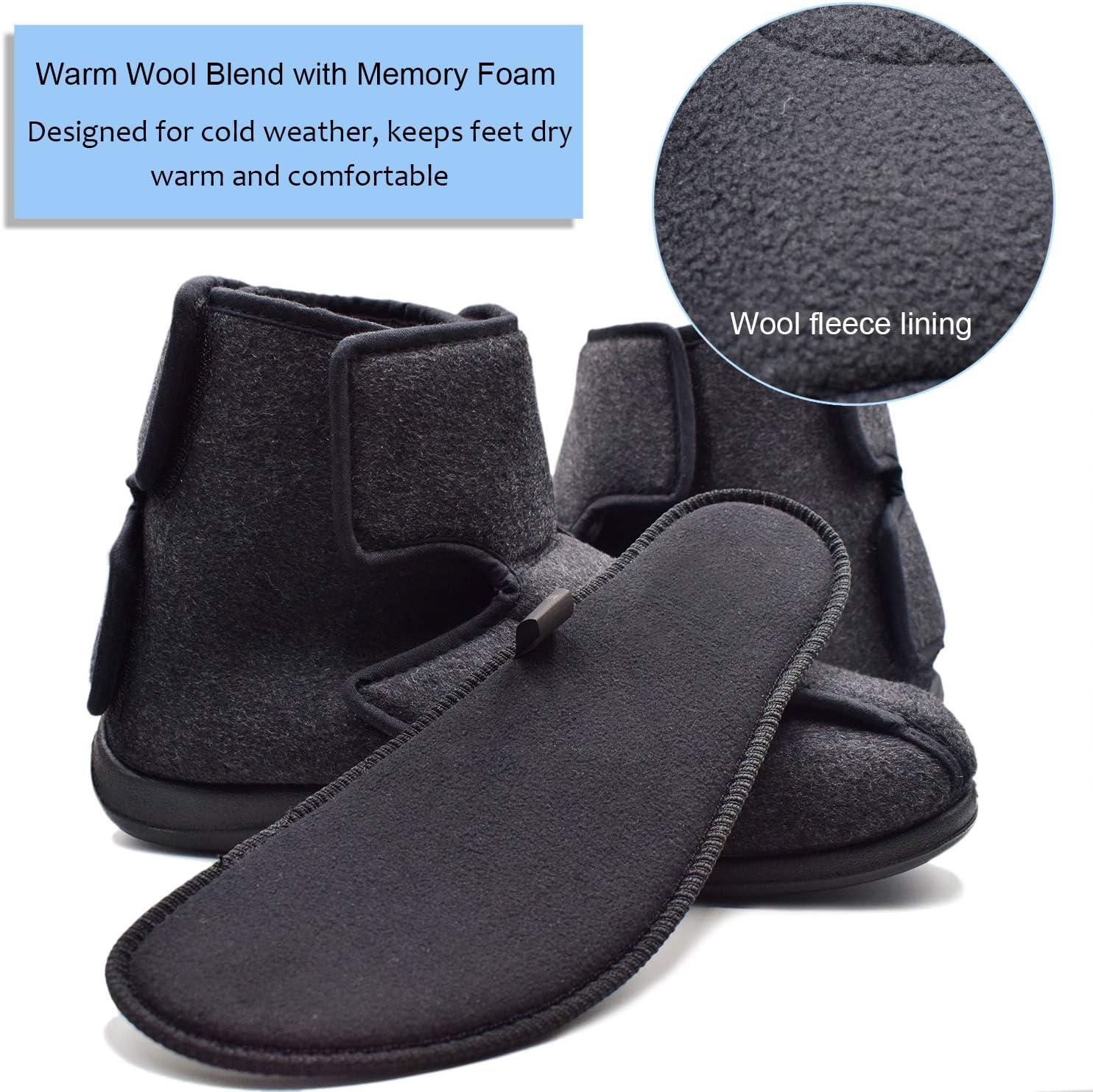 Mei MACLEOD Men’s Extra Wide Width Booties Slippers with Memory Foam Adjustable Closure Non-Slip House Slippers Indoor/Outdoor for Swollen Feet Plantar Fasciitis Diabetic