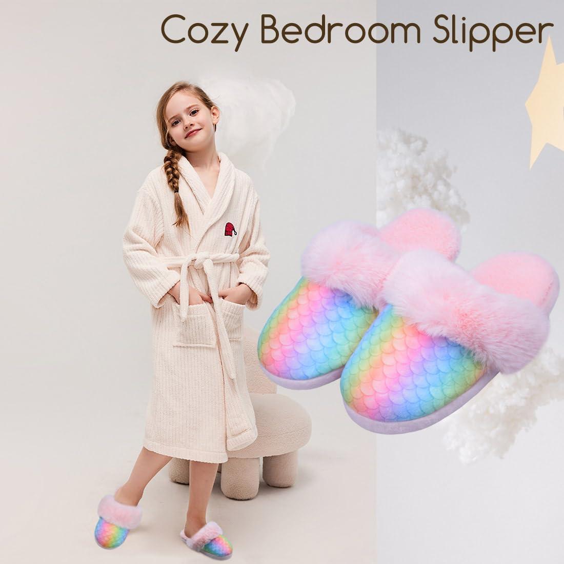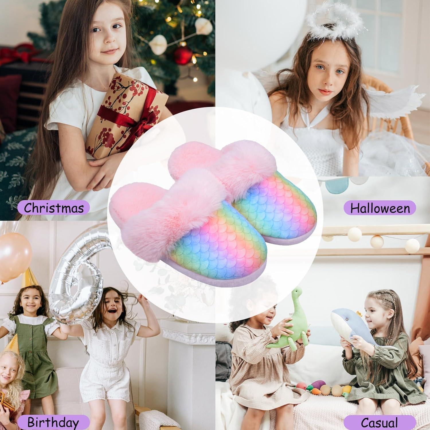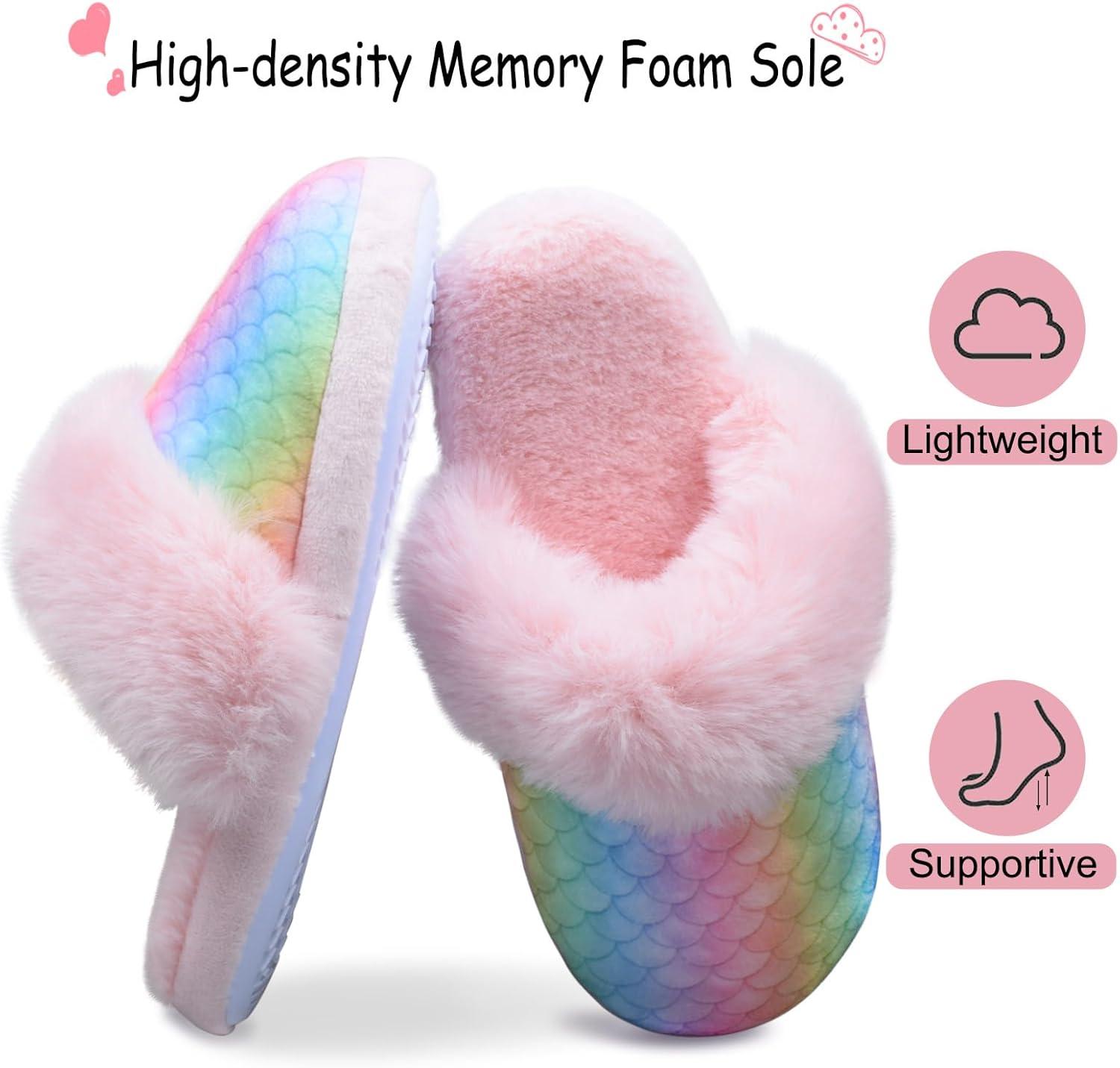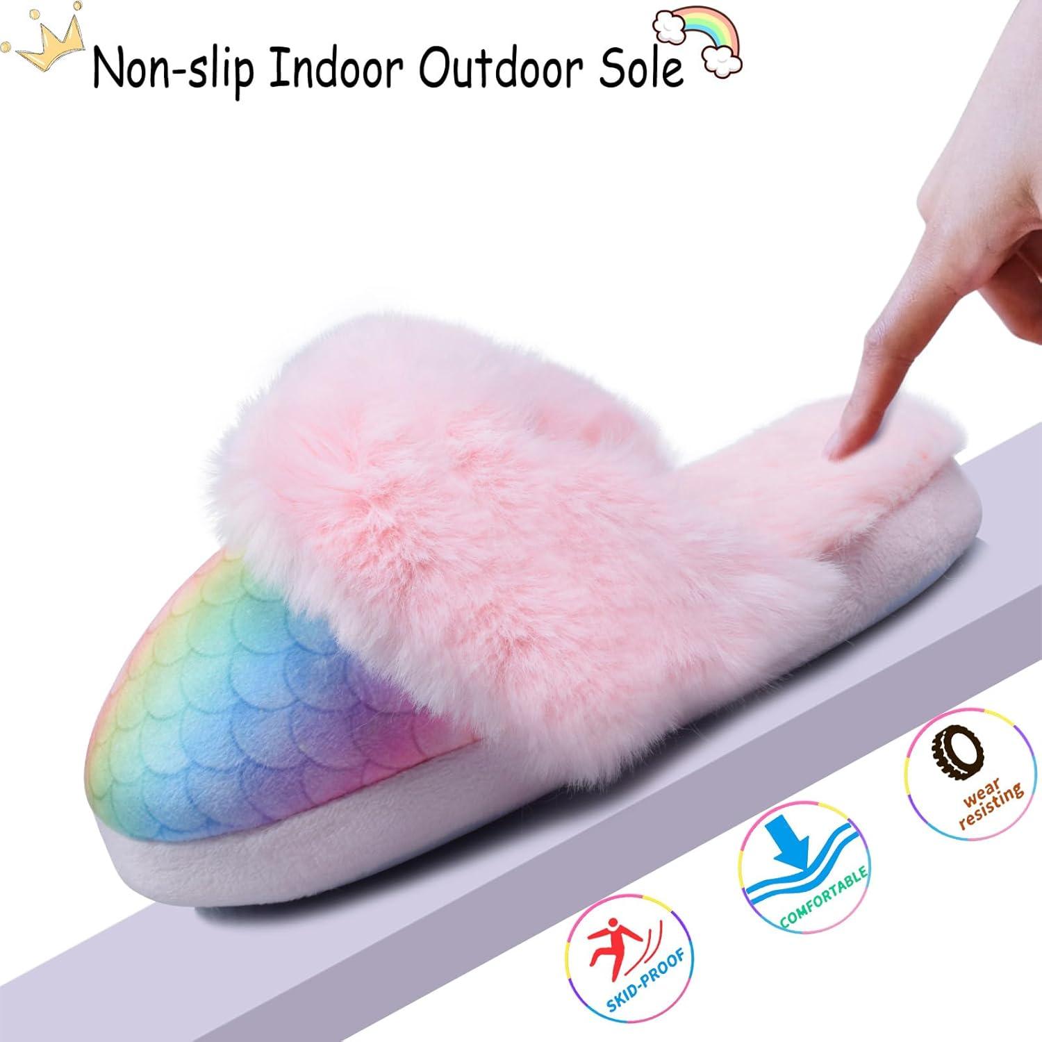 Mei MACLEOD Mermaid Fluffy House Slippers Fuzzy Glitter Slipper Faux Fur Plush Slipper Slip On Slides Sandal for Little/Big Girls(Pink-mermaid)