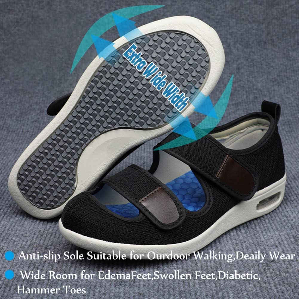 Mei MACLEOD Wide House Slipper Adjustable Strap Edema Shoes for Swollon Feet Diabetic Indoor Outdoor(Black)