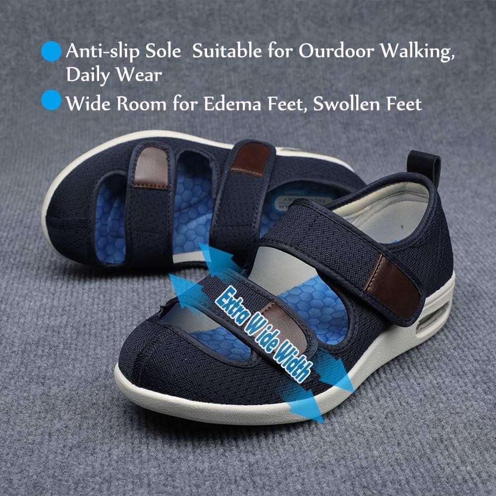 Mei MACLEOD Wide House Slipper Adjustable Strap Edema Shoes for Swollon Feet Diabetic Indoor Outdoor(Blue)