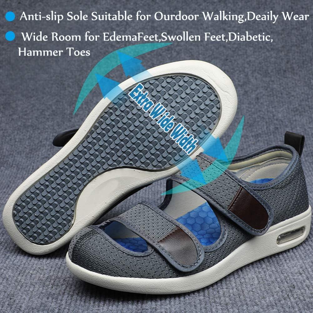 Mei MACLEOD Wide House Slipper Adjustable Strap Edema Shoes for Swollon Feet Diabetic Indoor Outdoor(Grey)