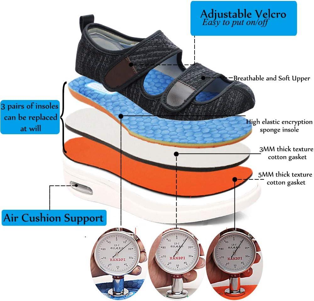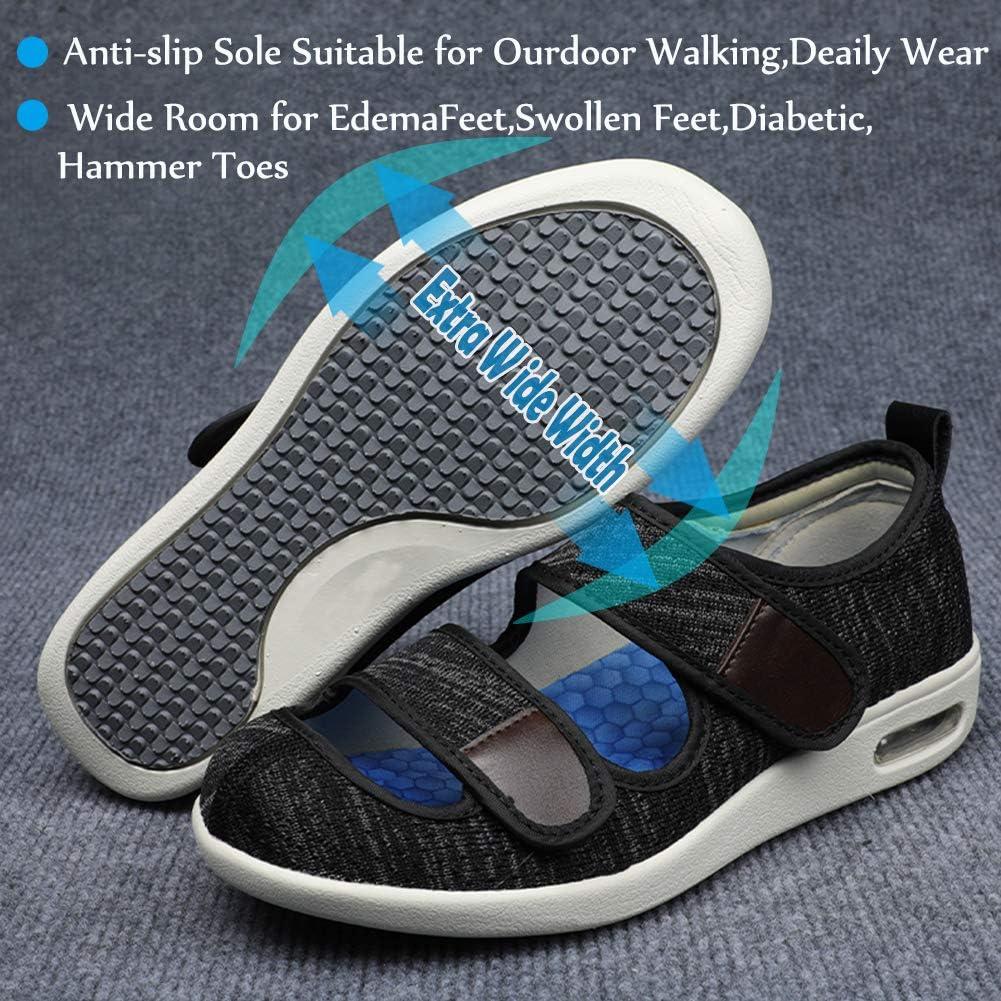 Mei MACLEOD Wide House Slipper Adjustable Strap Edema Shoes for Swollon Feet Diabetic Indoor Outdoor(Knit Black)