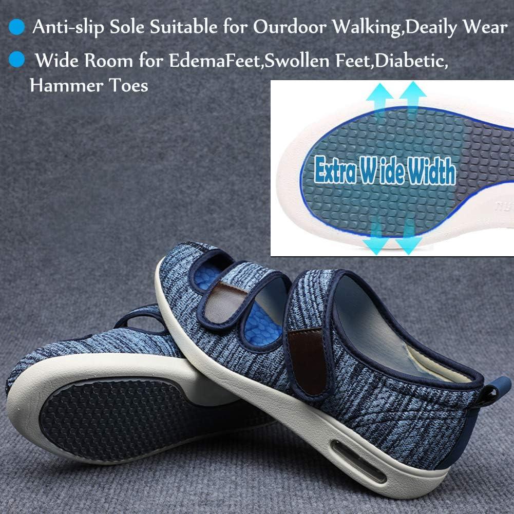 Mei MACLEOD Wide House Slipper Adjustable Strap Edema Shoes for Swollon Feet Diabetic Indoor Outdoor(Knit Blue)