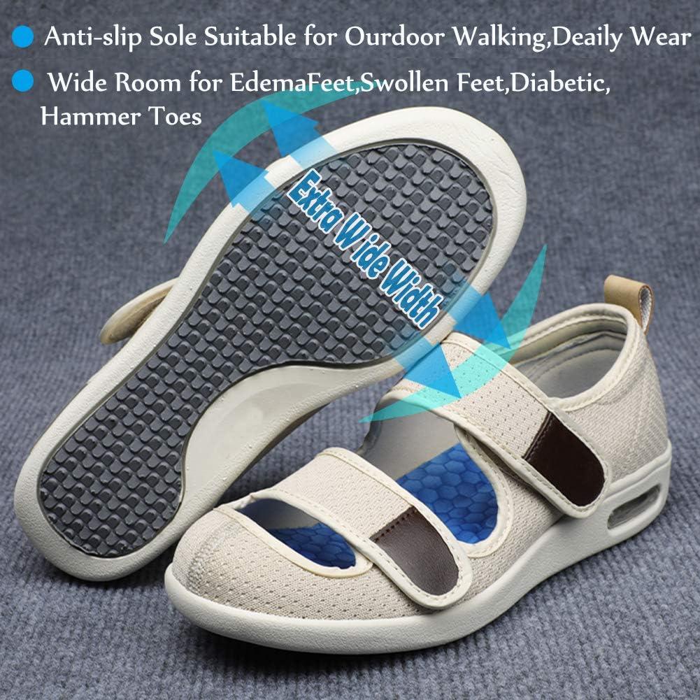 Mei MACLEOD Wide House Slipper Adjustable Strap Edema Shoes for Swollon Feet Diabetic Indoor Outdoor(White)