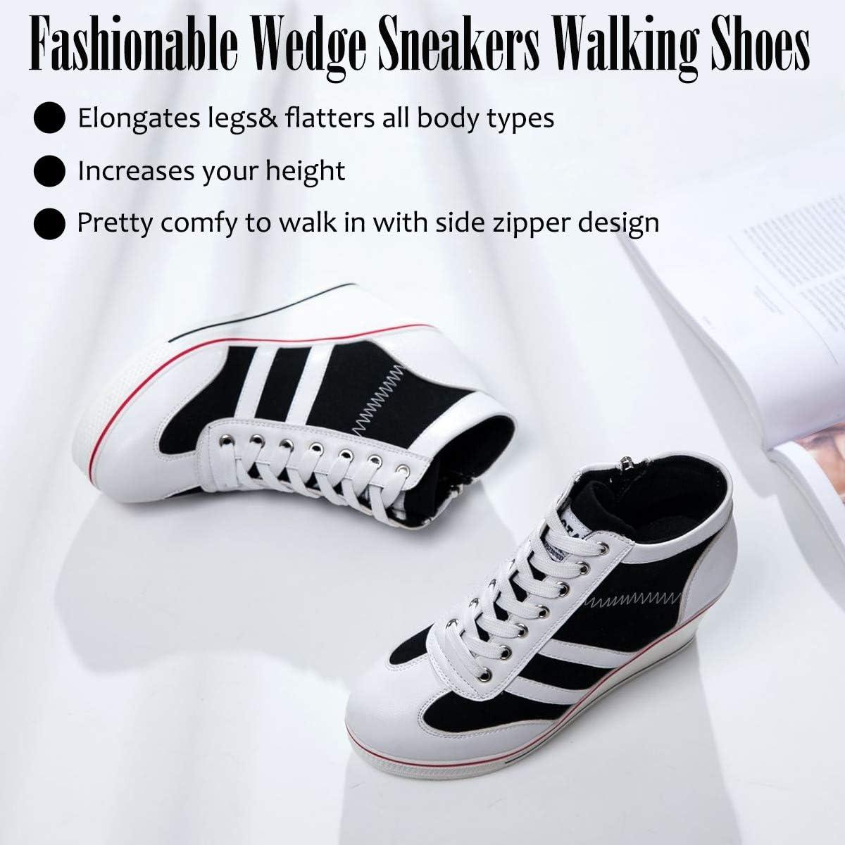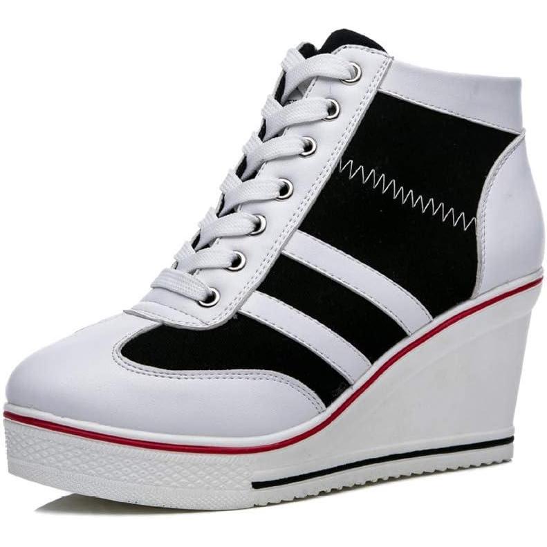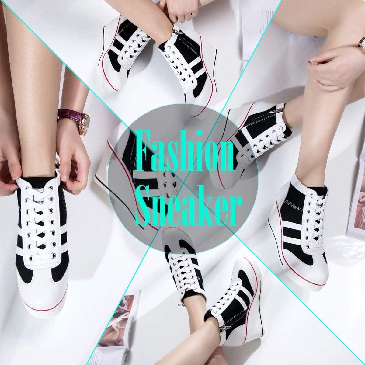Mei MACLEOD Women Wedge Sneakers Platform Wedge High Heel Sneakers Ankle Booties Casual Canvas Shoes(Black&white)