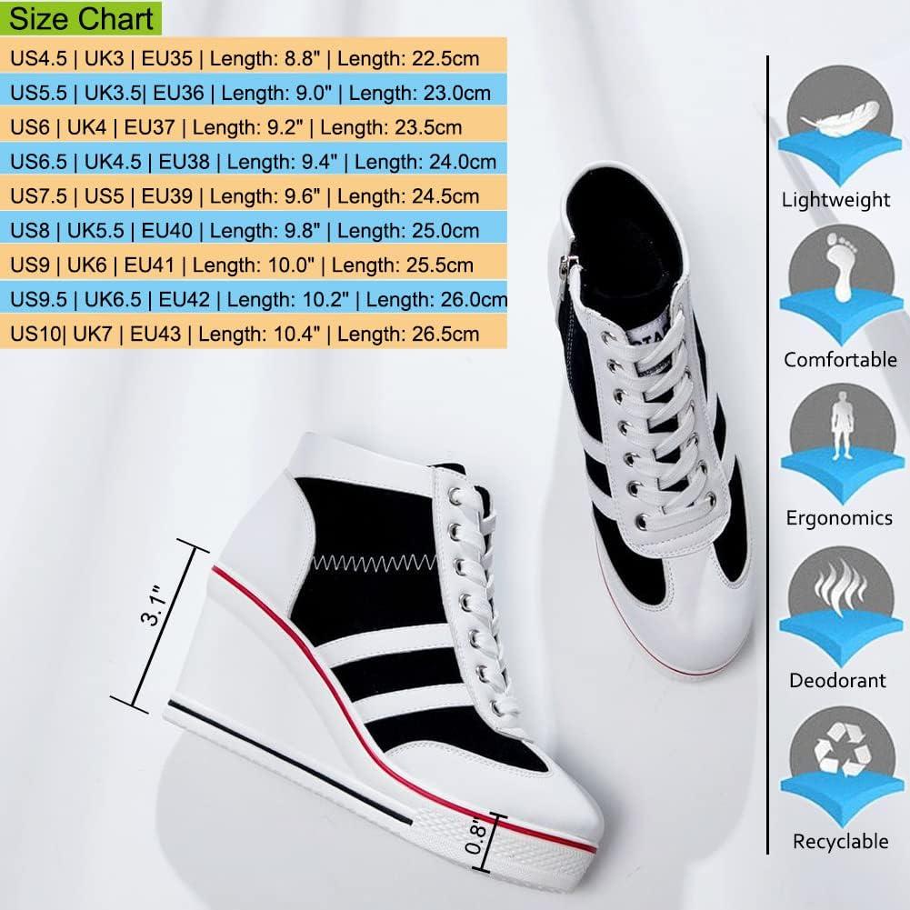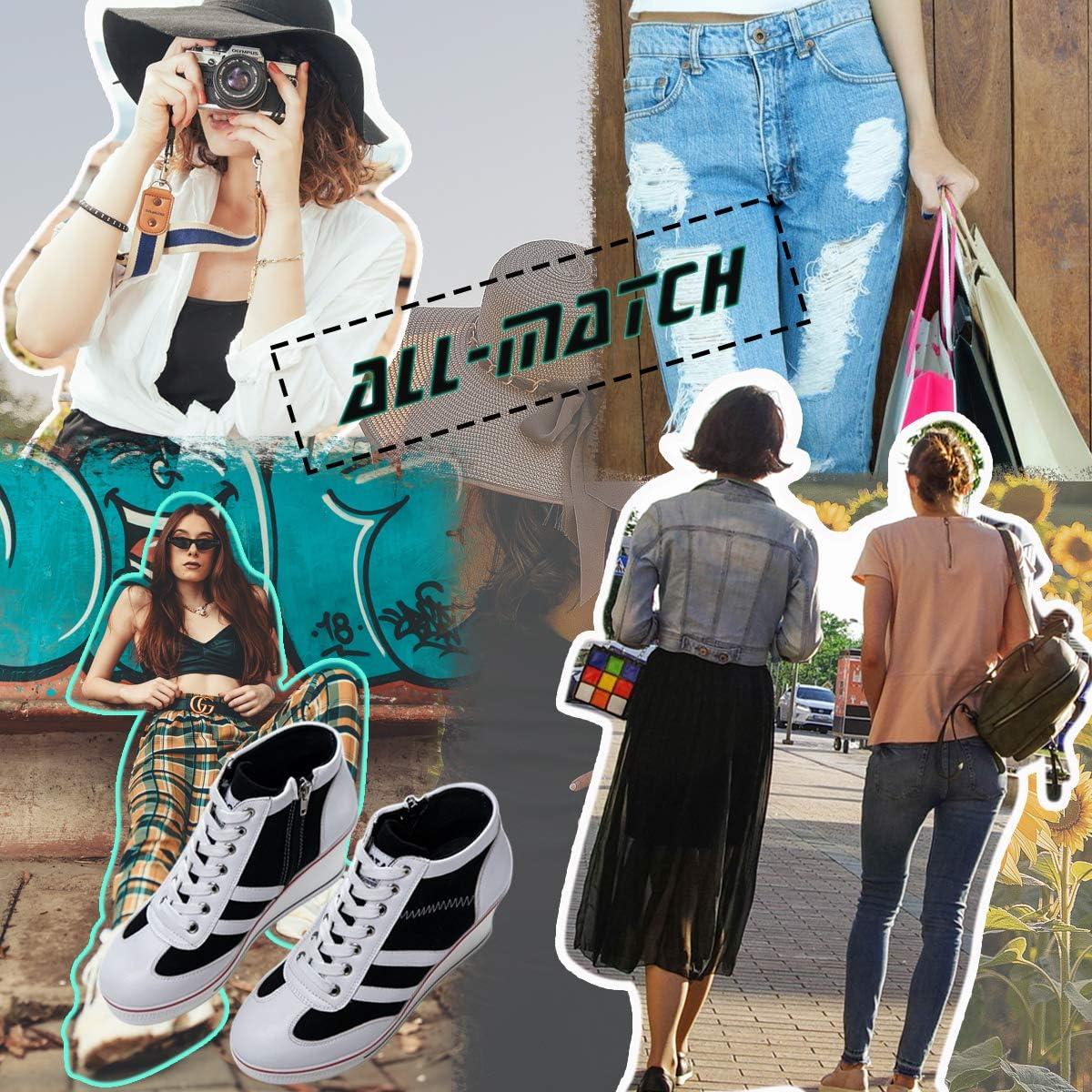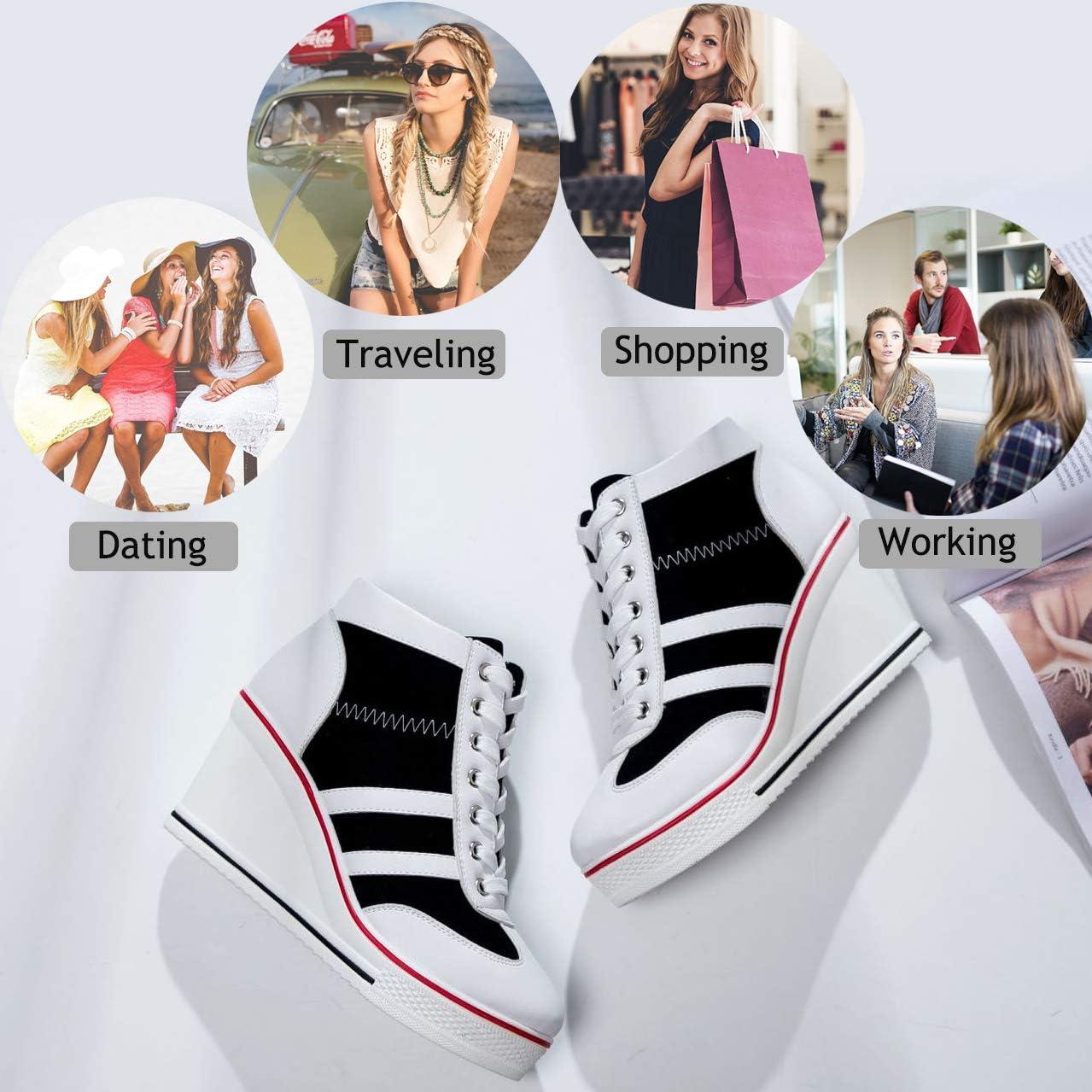 Mei MACLEOD Women Wedge Sneakers Platform Wedge High Heel Sneakers Ankle Booties Casual Canvas Shoes(Black&white)