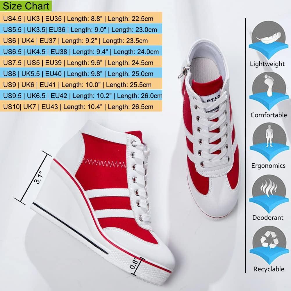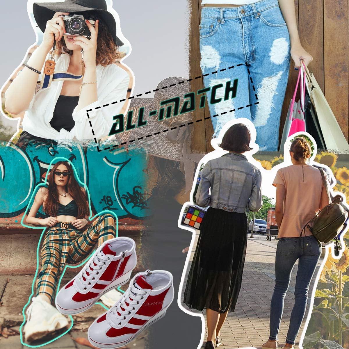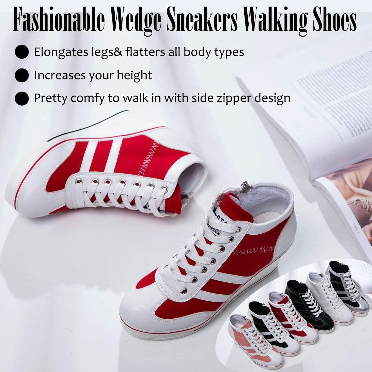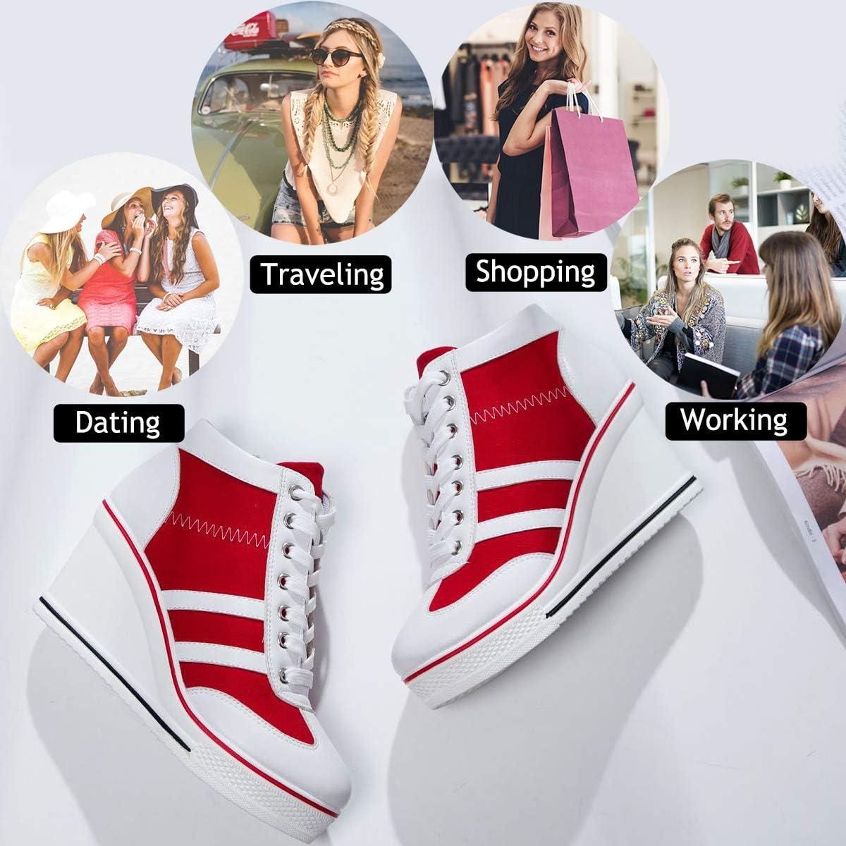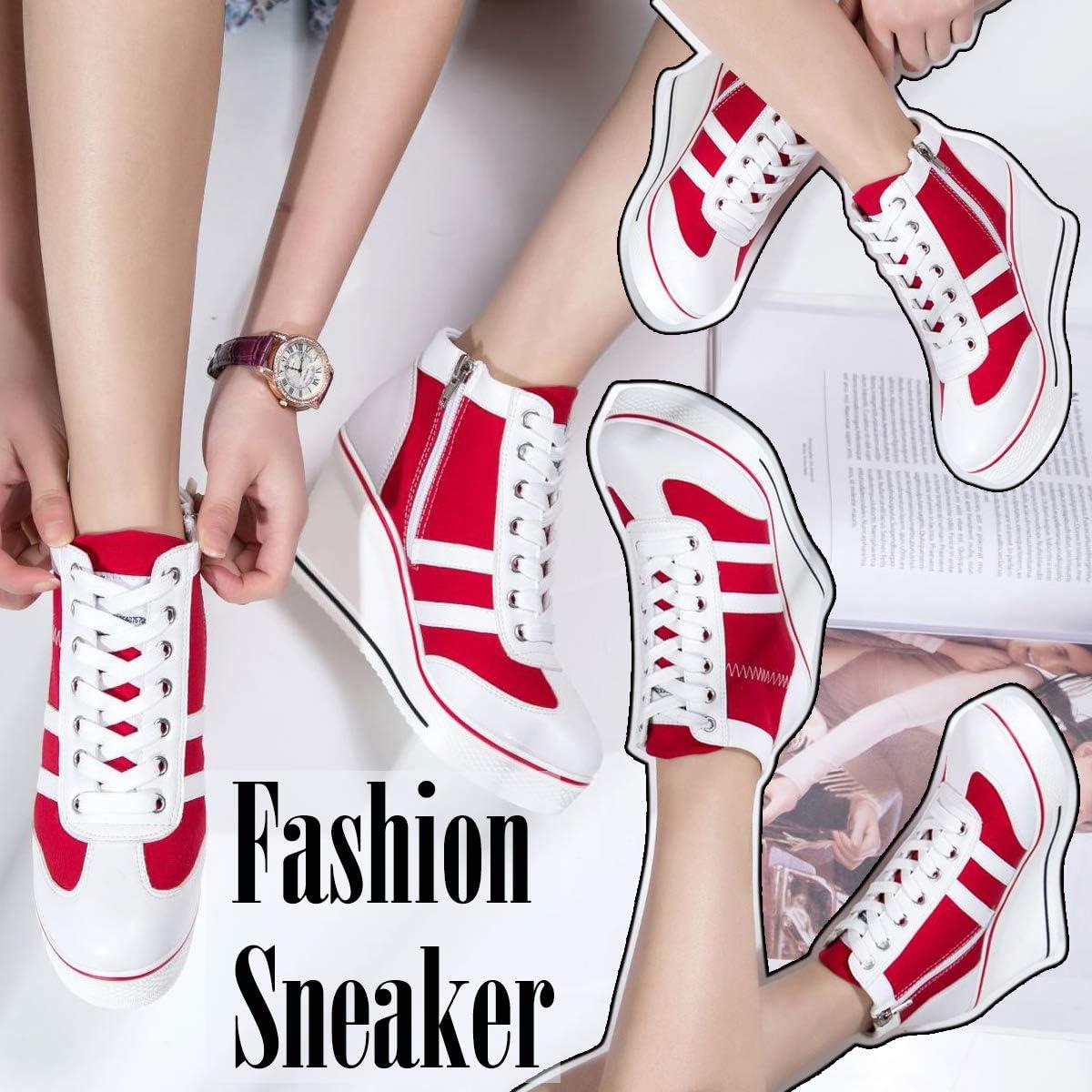 Mei MACLEOD Women Wedge Sneakers Platform Wedge High Heel Sneakers Ankle Booties Casual Canvas Shoes(Red)
