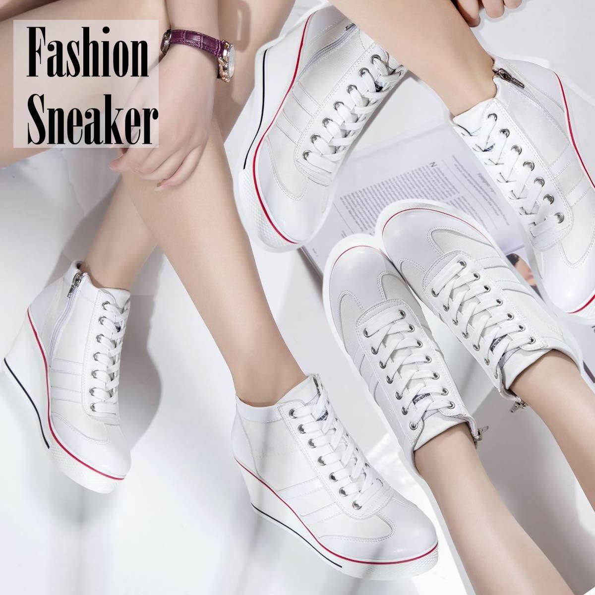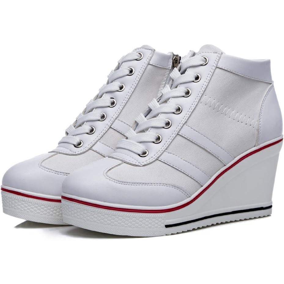 Mei MACLEOD Women Wedge Sneakers Platform Wedge High Heel Sneakers Ankle Booties Casual Canvas Shoes(White)