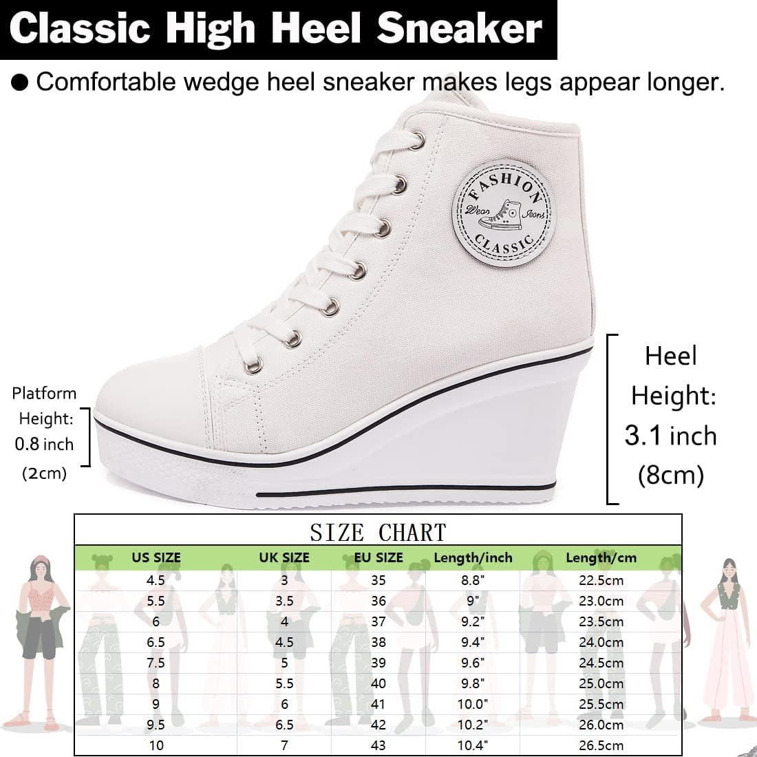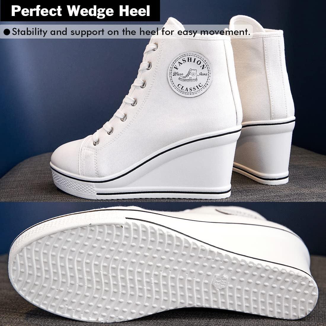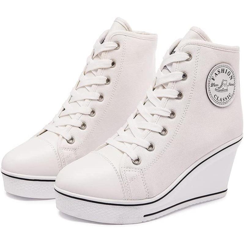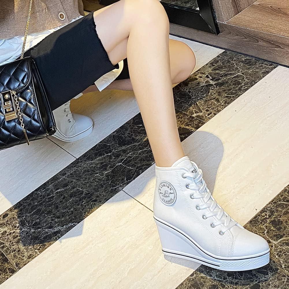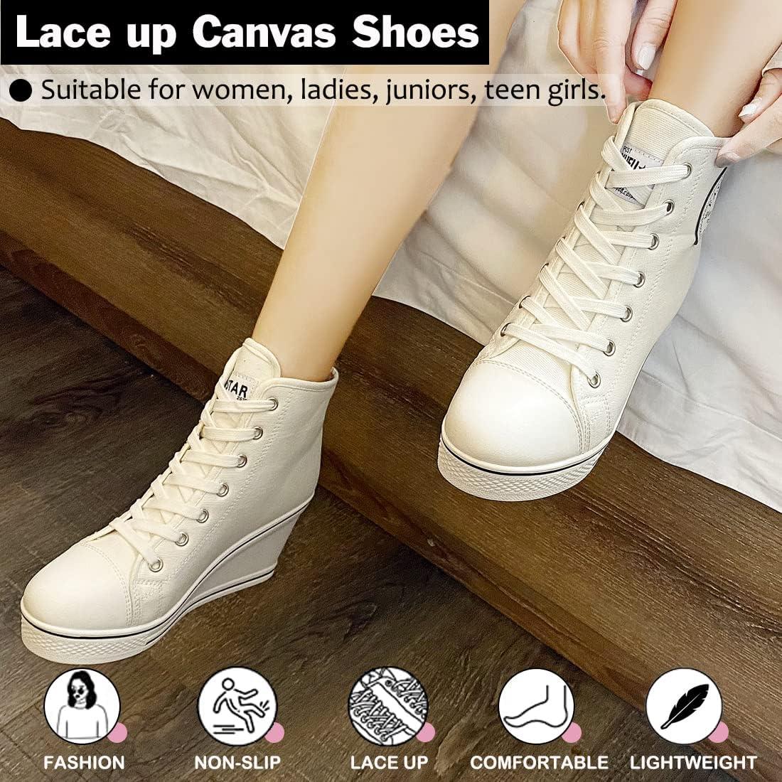 Mei MACLEOD Women’s Canvas Shoes High Heel Wedge Sneakers High Top Sneakers Casual Lace Up Shoes for Teen Girls College Student(White)