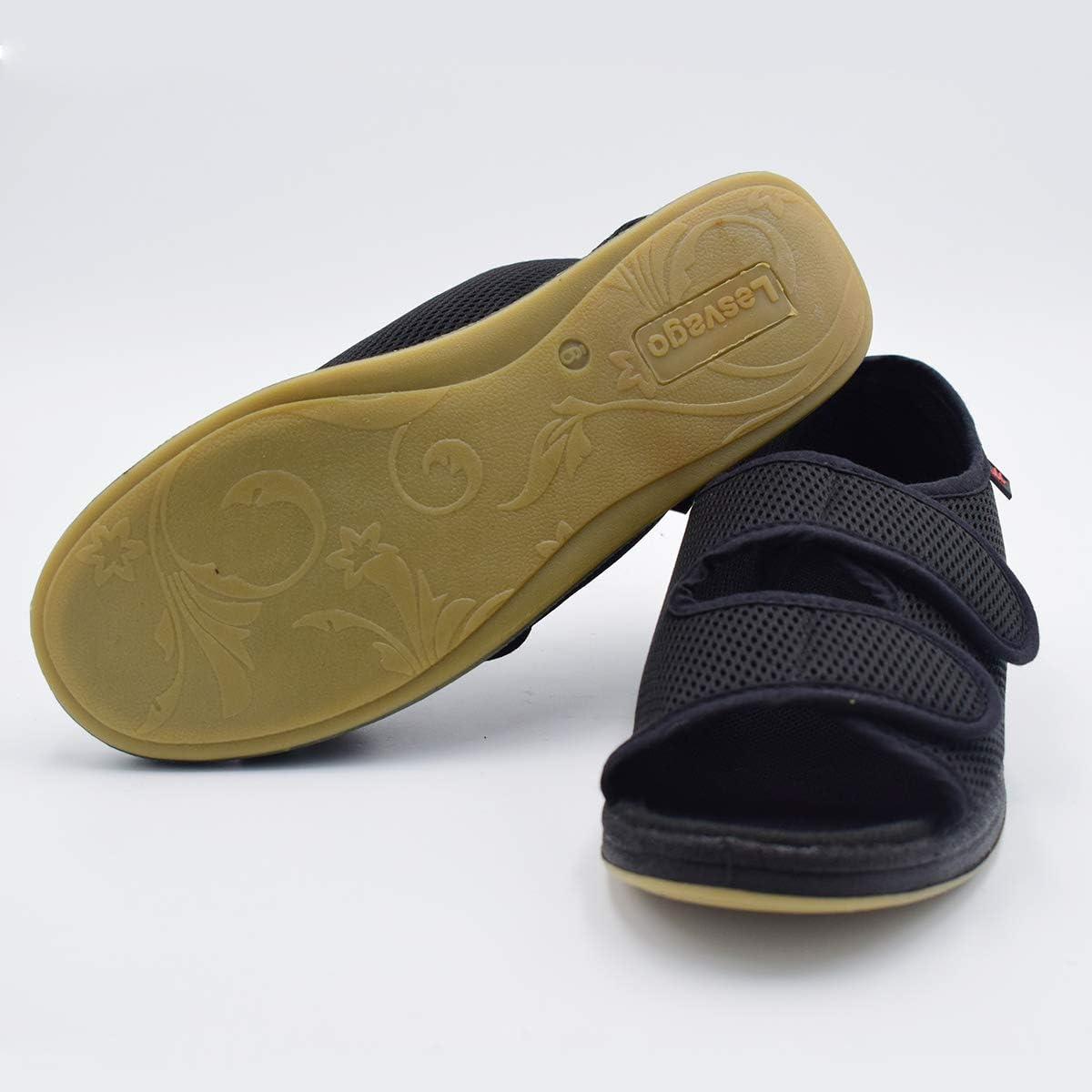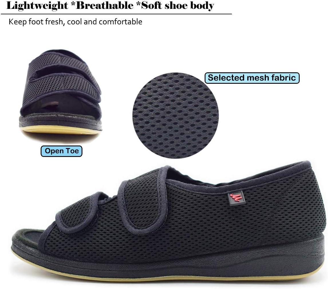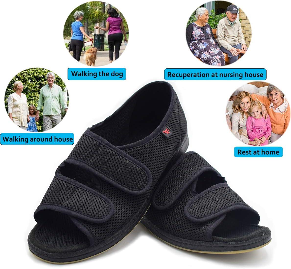 Mei MACLEOD Women’s Comfortable Open Toe Arthritis Edema House Slippers for Diabetic Flat Feet Swollen Feet(Black)