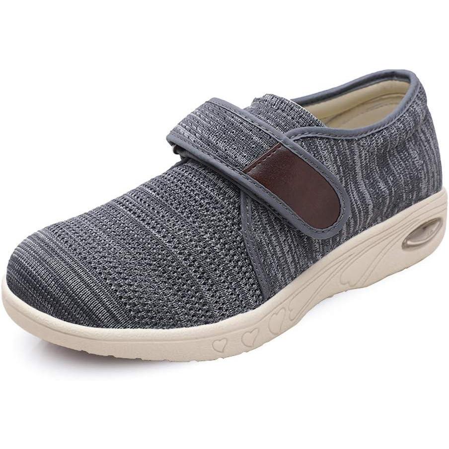 Mei MACLEOD Women’s Diabetic Shoes, Edema Shoes for Swollen Feet Wide Walking Shoes for Elderly Plantar Fasciitis(Knit Grey)