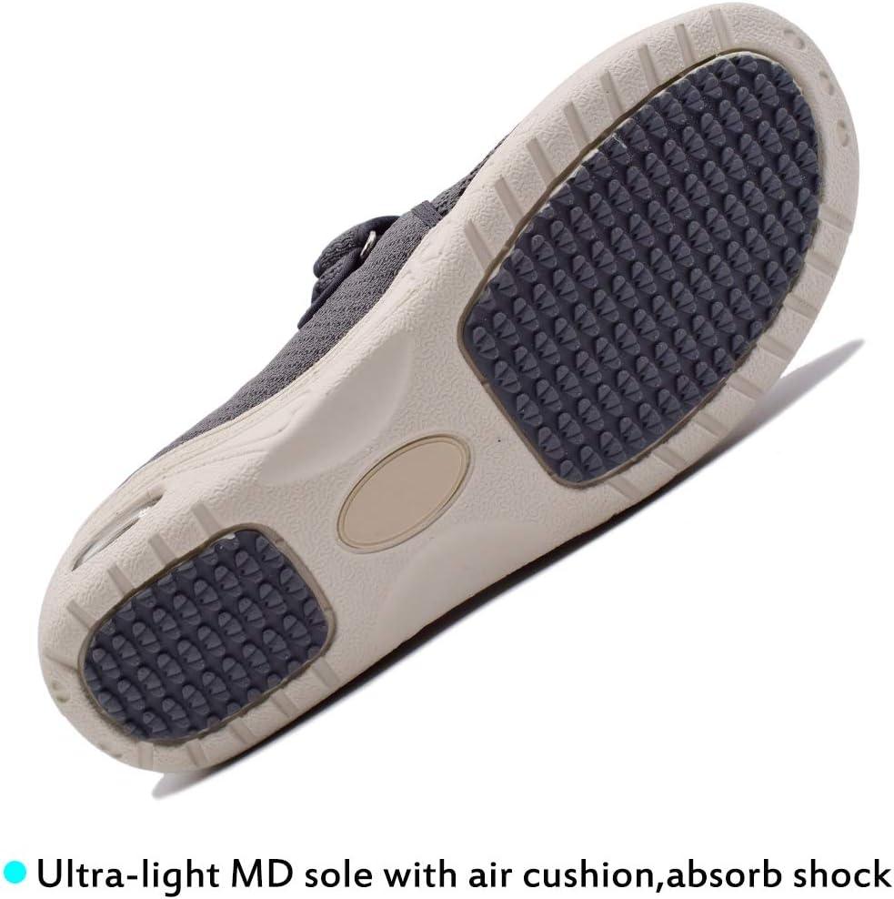 Mei MACLEOD Women’s Diabetic Shoes Extra Wide Edema Shoes Adjustable Strap Lightweight Walking Sneakers for Elderly Swollen Feet, Heel Pain Relief, Plantar Fasciitis(Grey Women)
