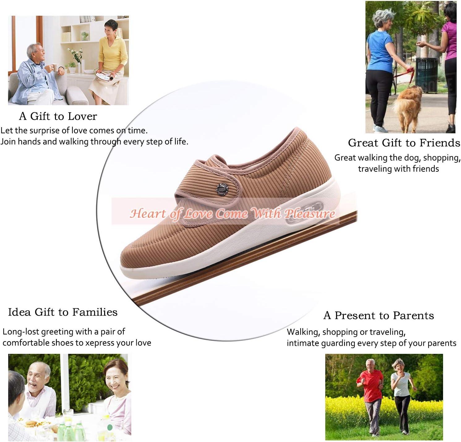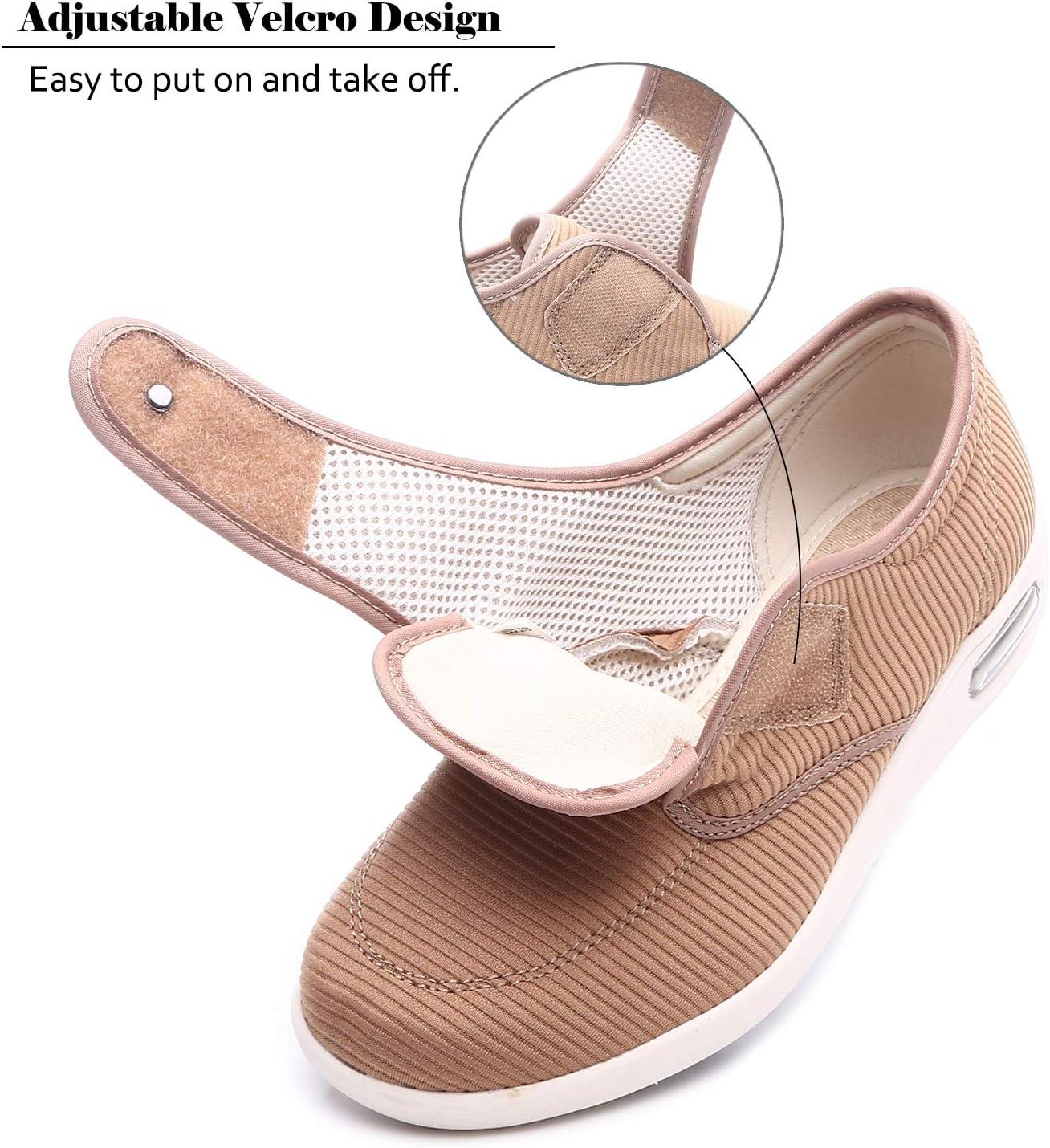 Mei MACLEOD Women’s Diabetic Shoes with Adjustable Strap Lightweight Wide Walking Shoes Edema Swollen Feet Shoes(Coffee)