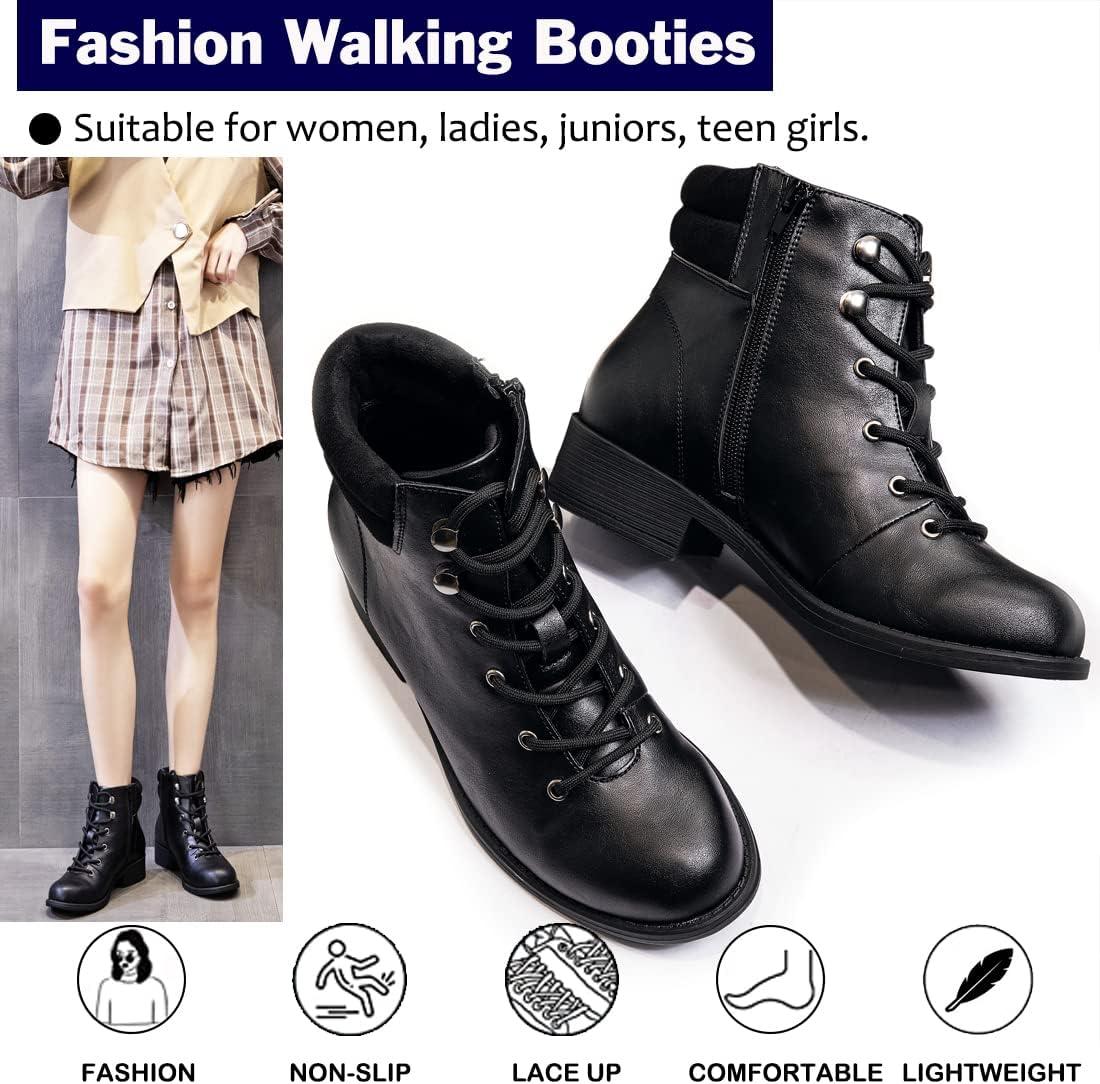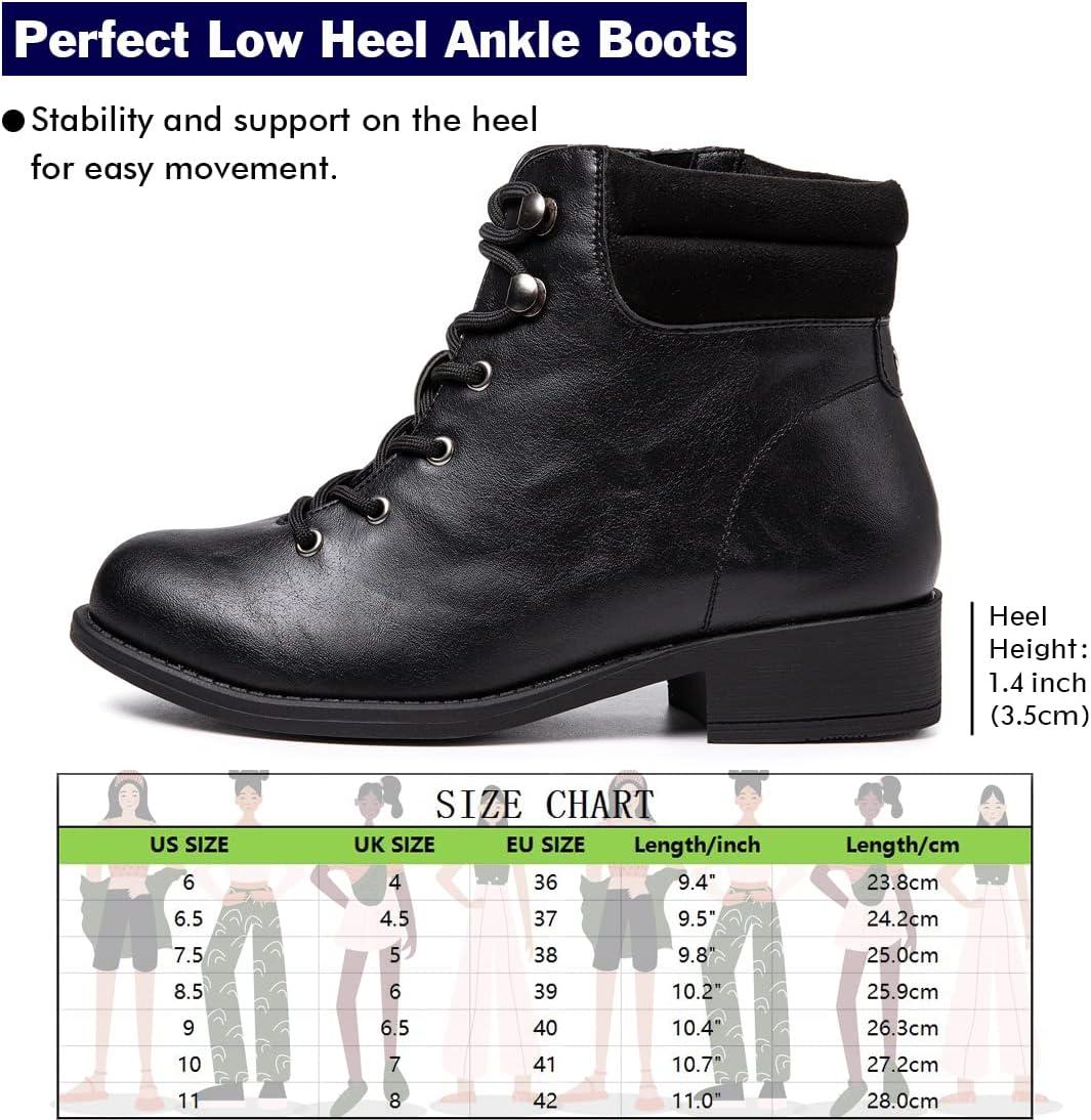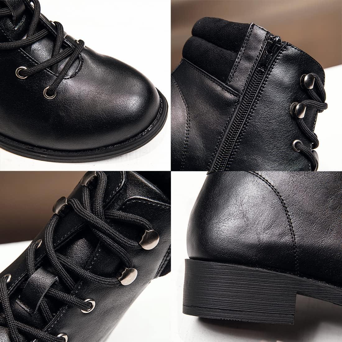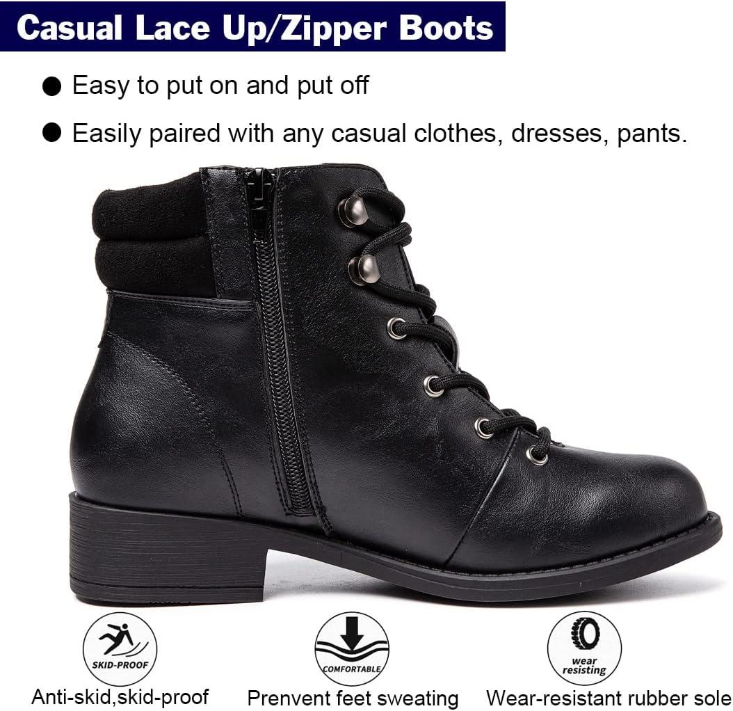 Mei MACLEOD Womens Lace Ankle Boots with Zipper Casual Hiking Boot Round Toe Low Heel Fashion Booties Work Combat Boots