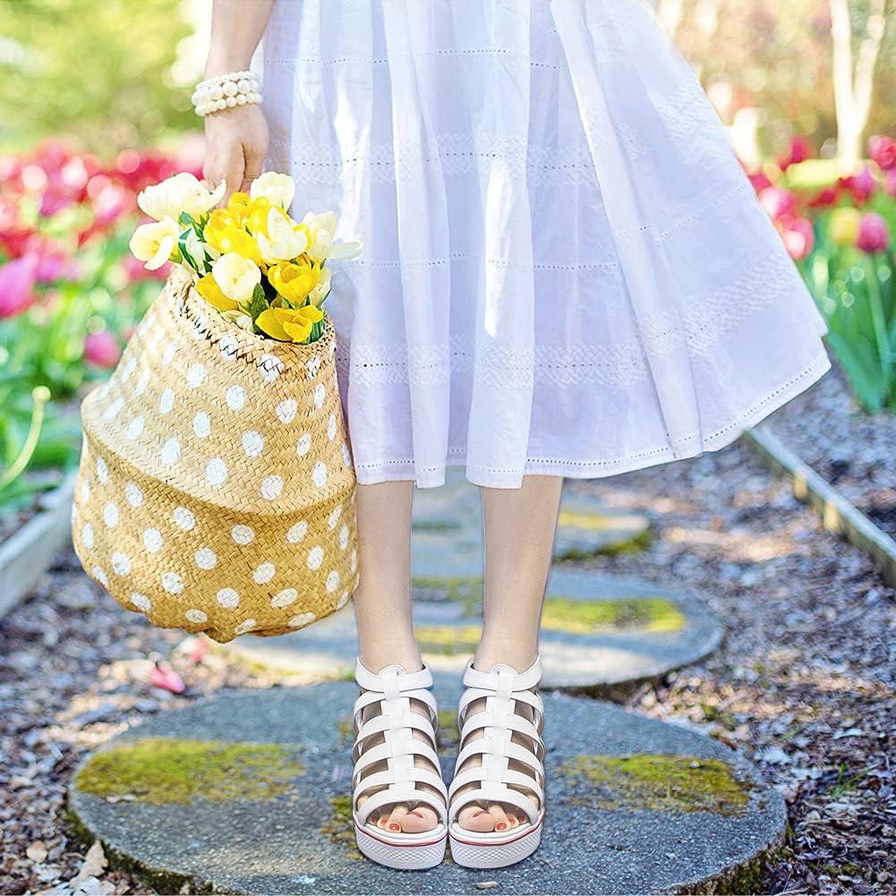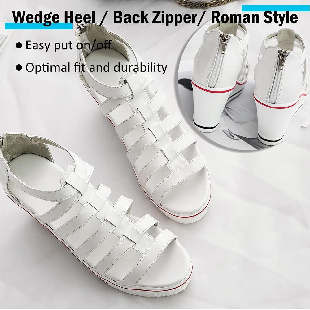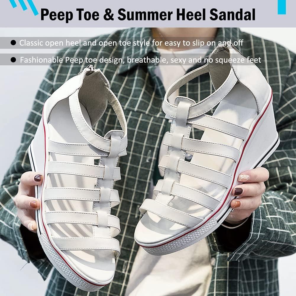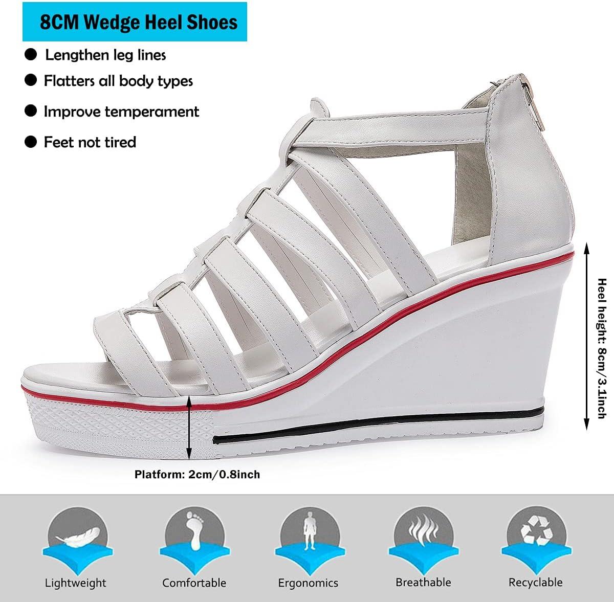 Mei MACLEOD Womens Lace Up Heeled Sneakers, Fashion Platform Wedge Sneakers Casual Canvas Shoes for Girls(C-white)