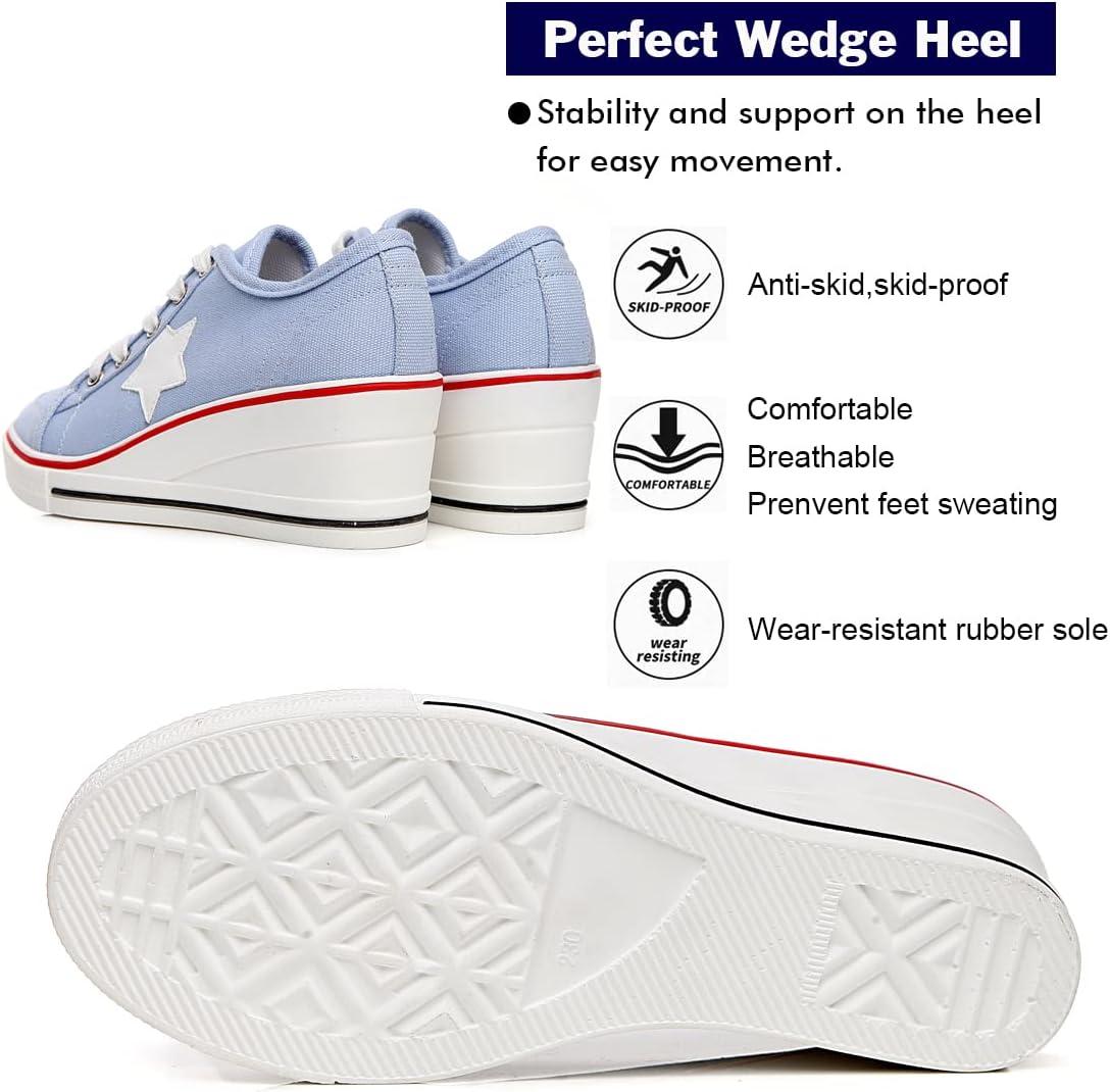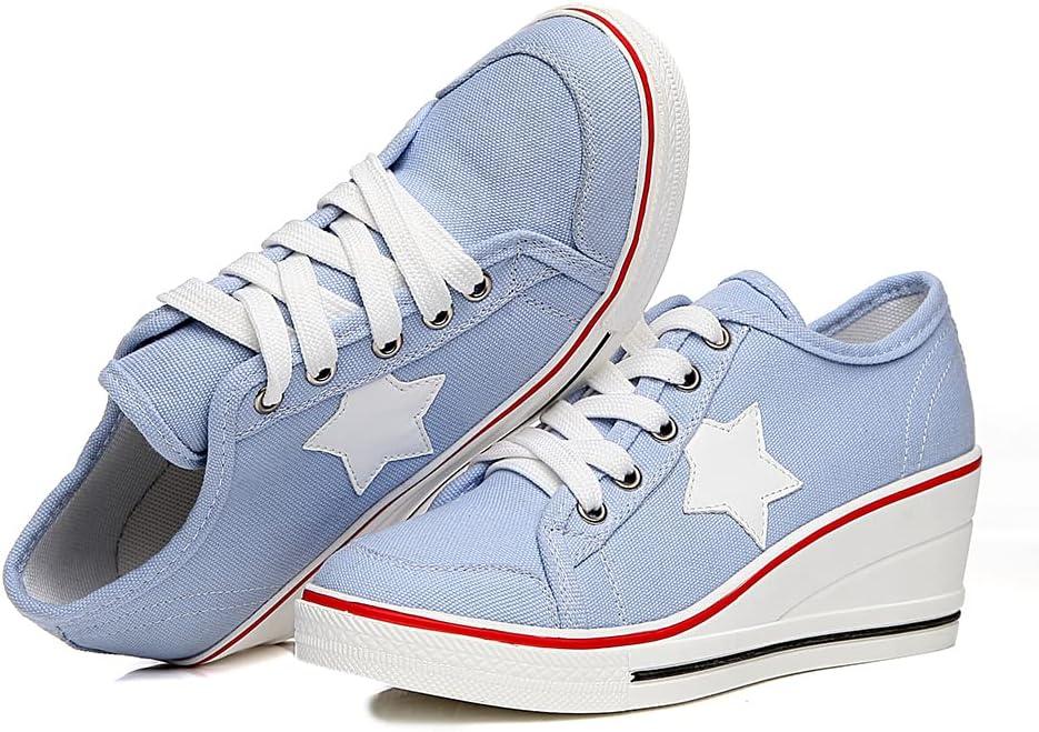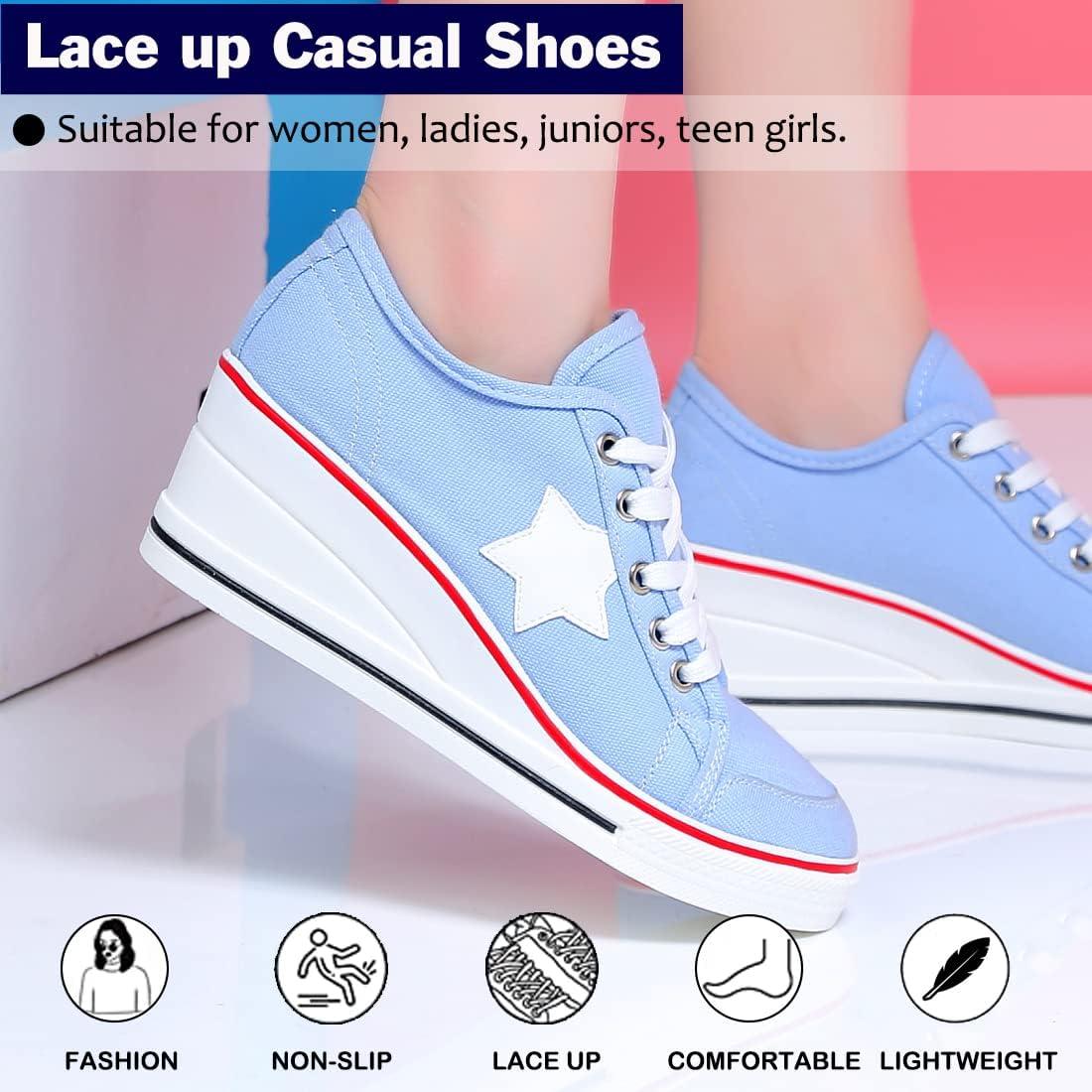 Get up to 50% off on Mei MACLEOD Womens Lace Up Heeled Sneakers, Fashion Platform Wedge Sneakers Casual Canvas Shoes for Girls(Light Blue) styles during our spring sale event.