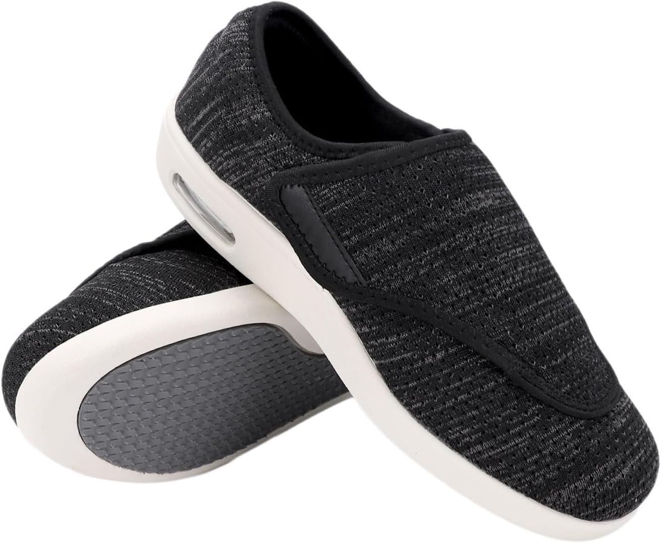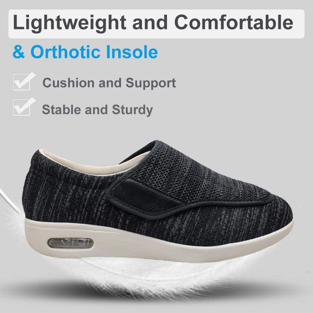 Men’s Diabetic Shoes, Lightweight Wide Width Walking Sneakers with Adjustable Closures for Diabetic Edema Plantar Fasciitis Bunions Arthritis Swollen Feet(Black Blended Yarn)