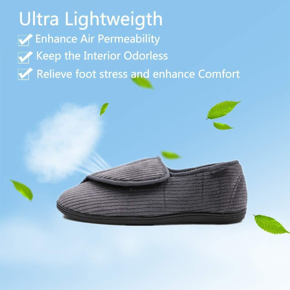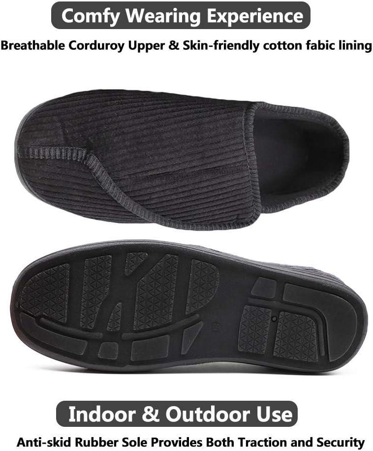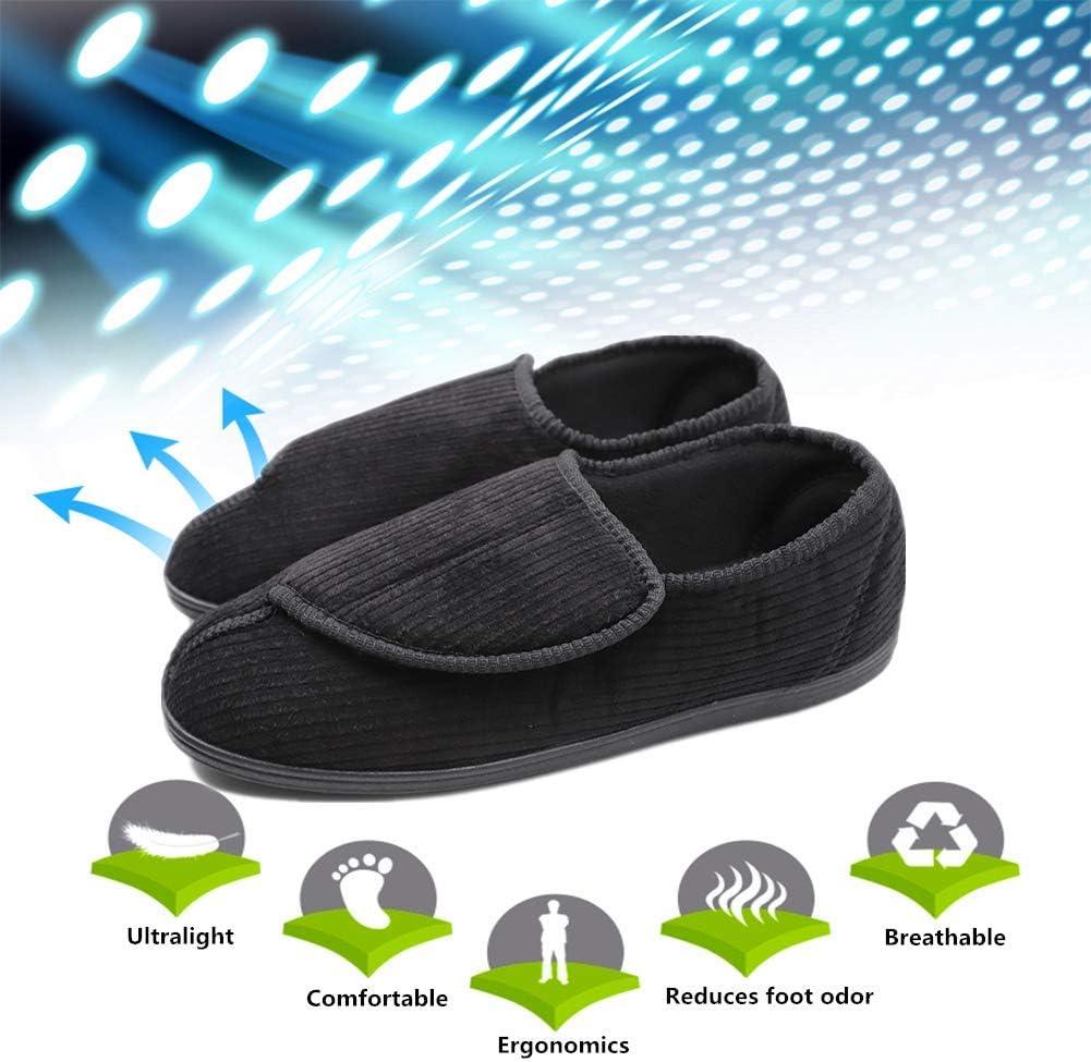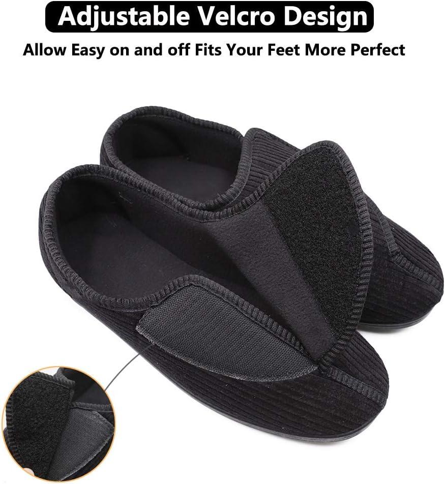 Mens Diabetic Slippers Extra Wide Memory Foam Comfort House Shoes with Adjustable Closure for Swollen Feet, Edema, Arthritis, Elderly Indoor/Outdoor(Black)