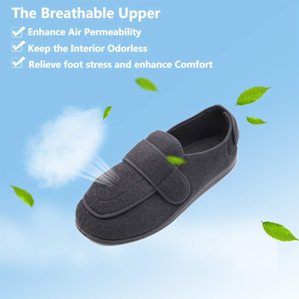 Men’s Extra Wide Width Diabetic Recovery Slippers, Adjustable Closures Swollen Feet Arthritis Edema Orthopedic Footwear, Indoor/Outdoor Walking Shoes(Black)