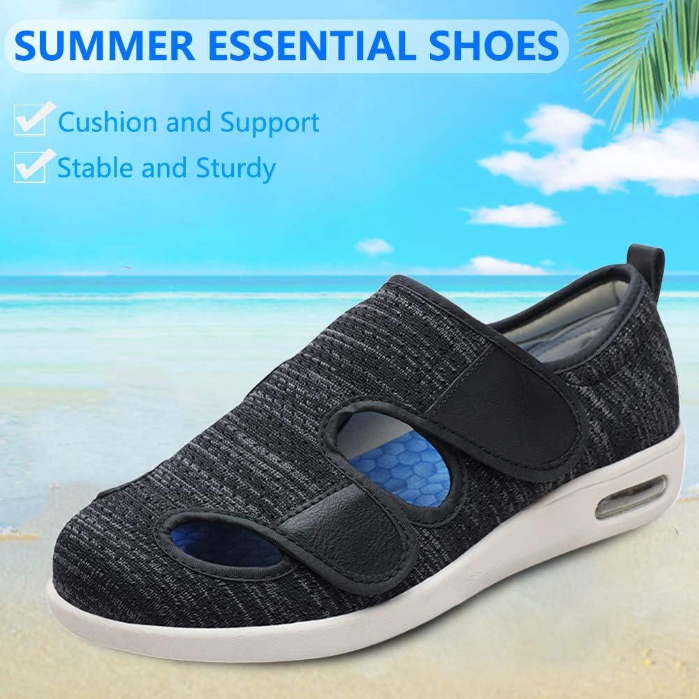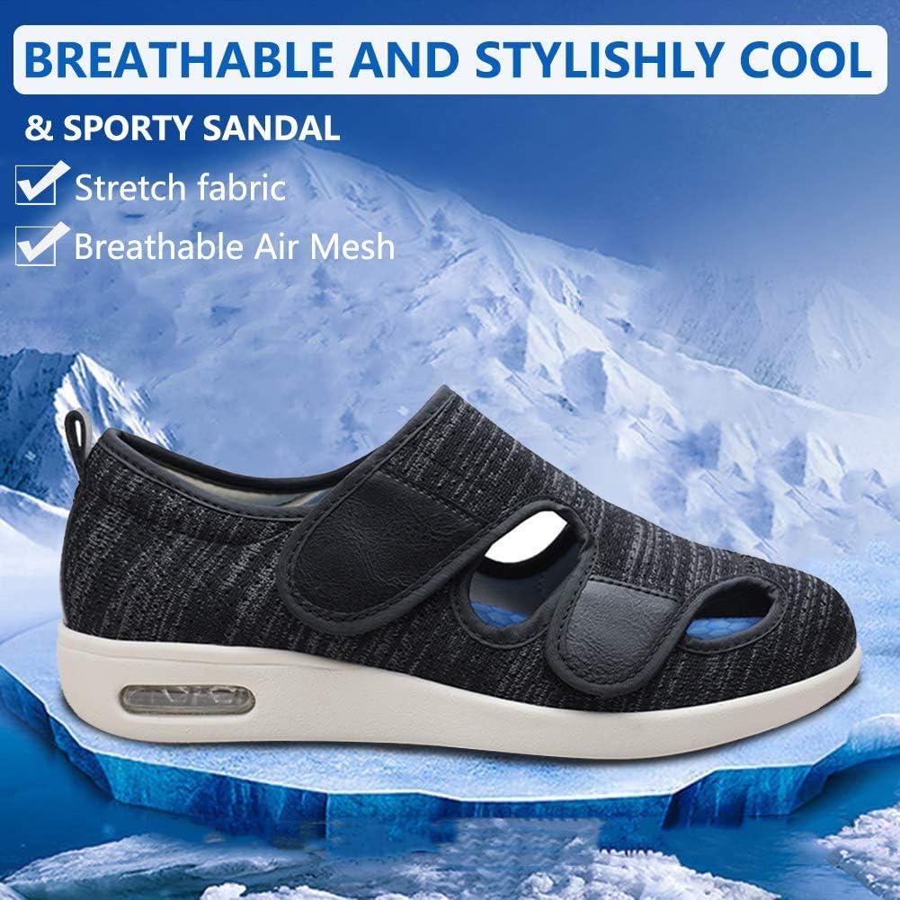 Women’s Diabetic Sandals, Adjustable Closure Comfy Slippers, Extra Wide Walking Shoes for Diabetic Edema Plantar Fasciitis Bunions Arthritis Swollen Feet(Black Blended Yarn)