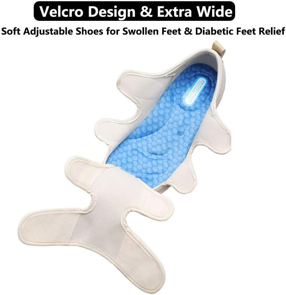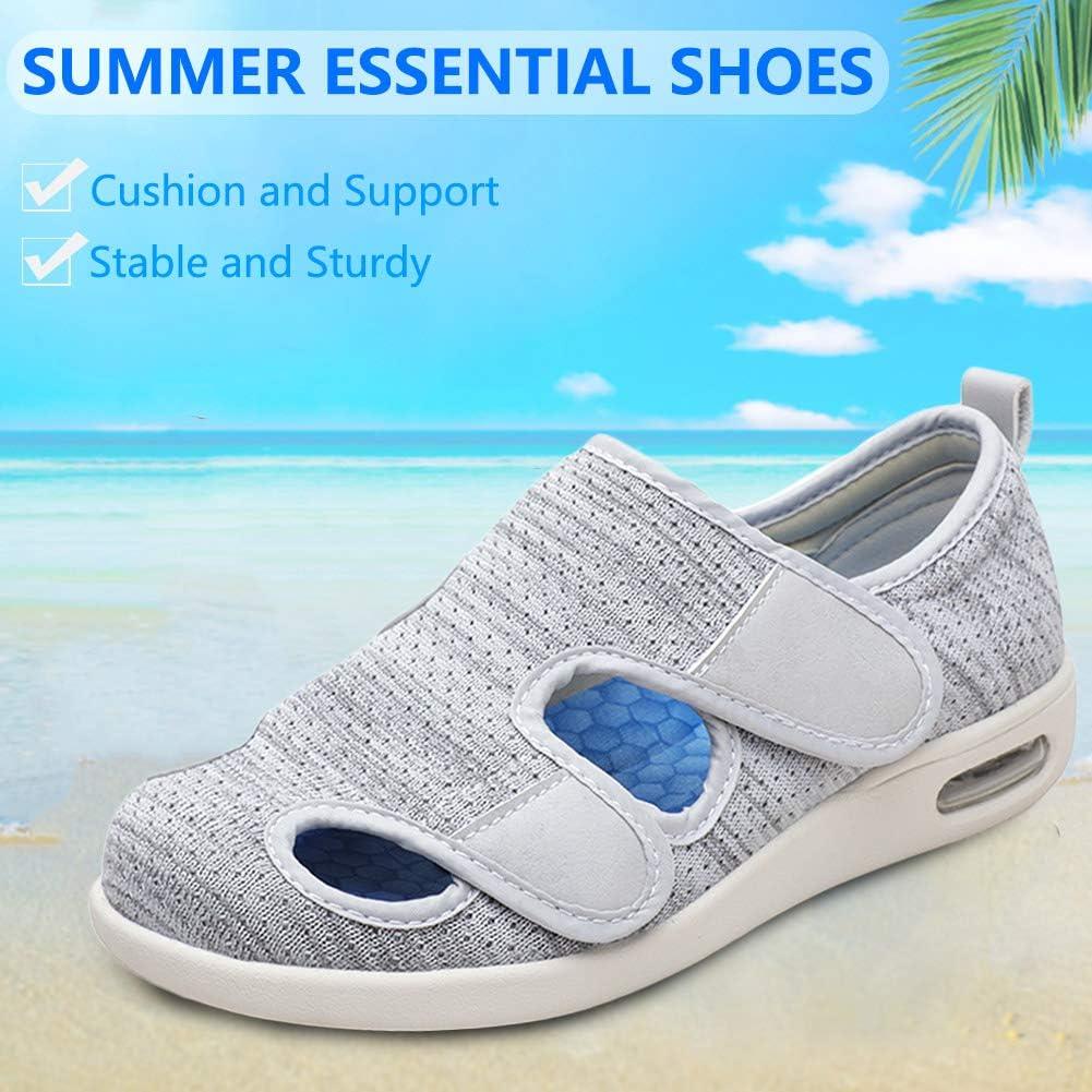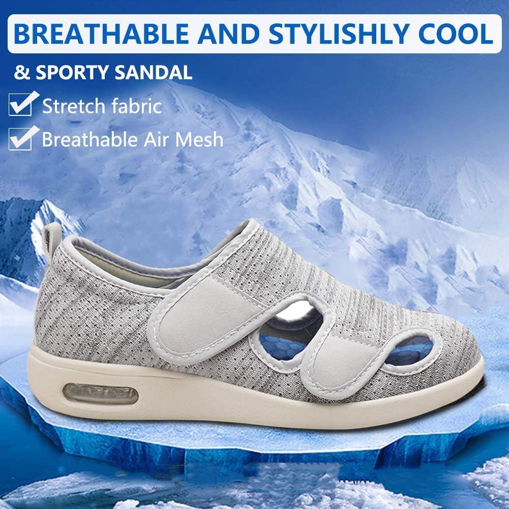 Women’s Diabetic Sandals, Adjustable Closure Comfy Slippers, Extra Wide Walking Shoes for Diabetic Edema Plantar Fasciitis Bunions Arthritis Swollen Feet(Light Gray Blended Yarn)