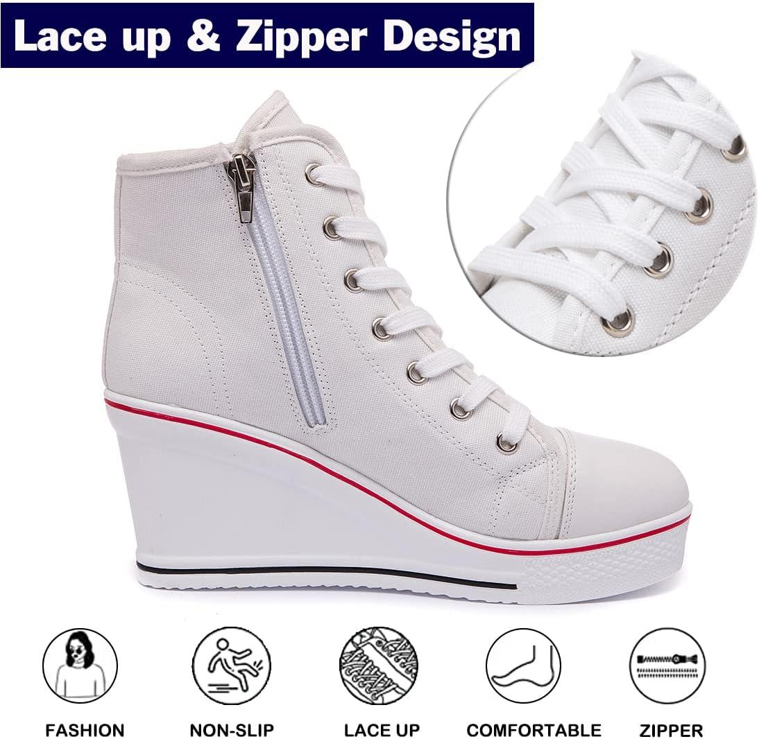 Discover the latest Womens Lace Up Heel Sneakers, Platform Wedge Sneakers Ankle Booties with Zipper Casual Canvas Fashion Sneaker for Girls(White) from and take advantage of our limited-time introductory offer.