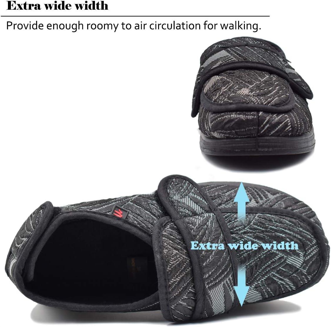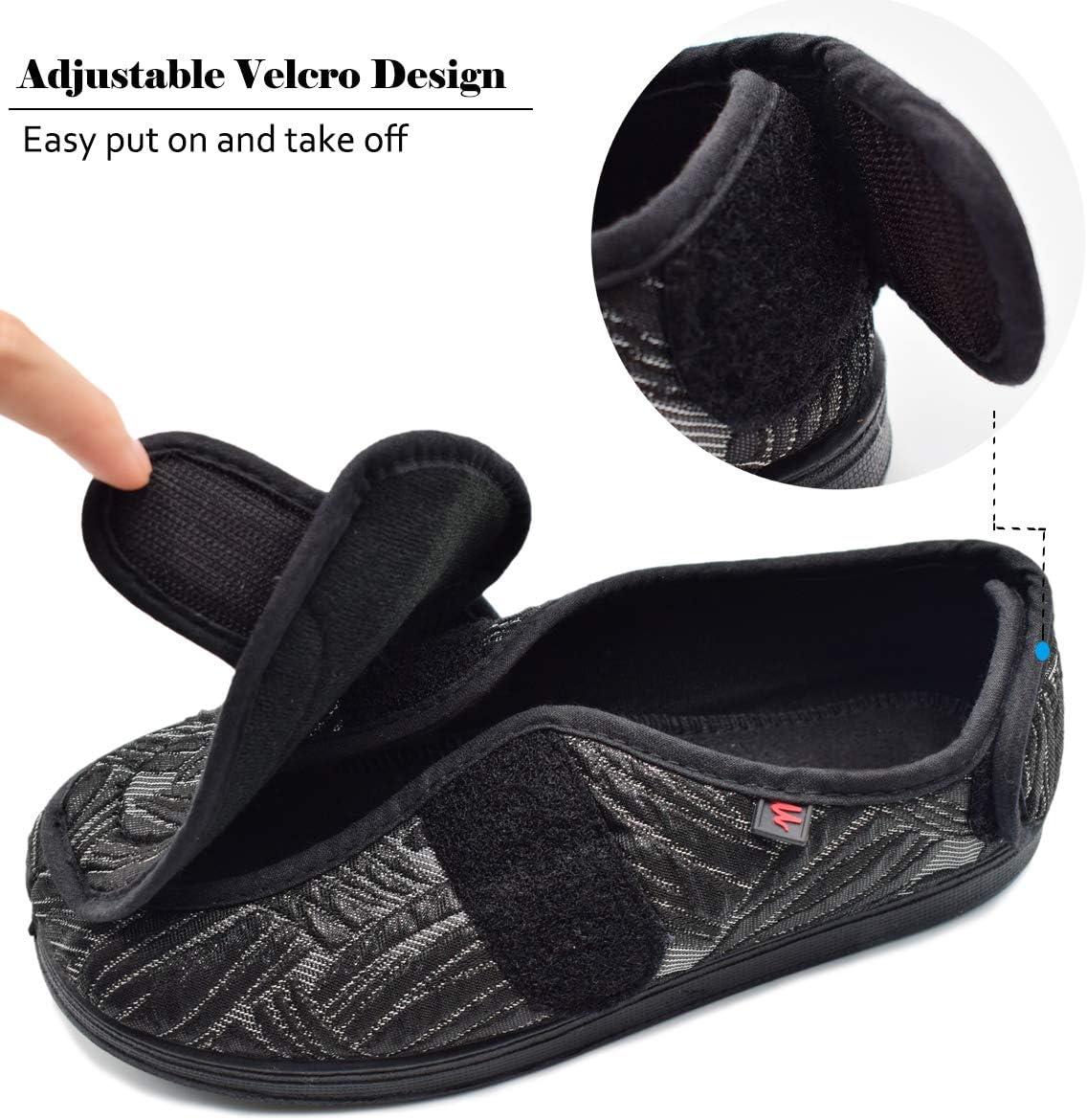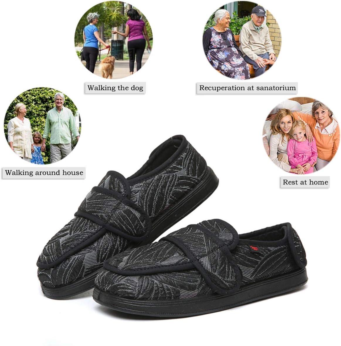 Women’s Wide Width House Shoes with Memory Foam Support Swollen Feet Edema Relief Cozy Outdoor Sole Diabetic House Slippers for Elderly Plantar Fasciitis(Black Leaf)