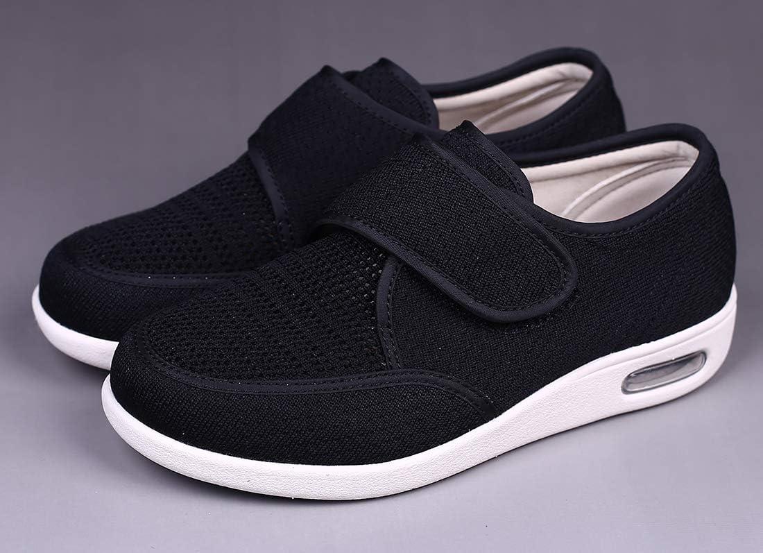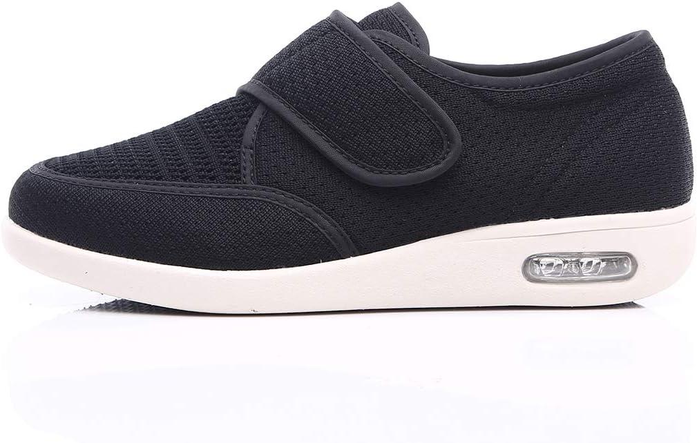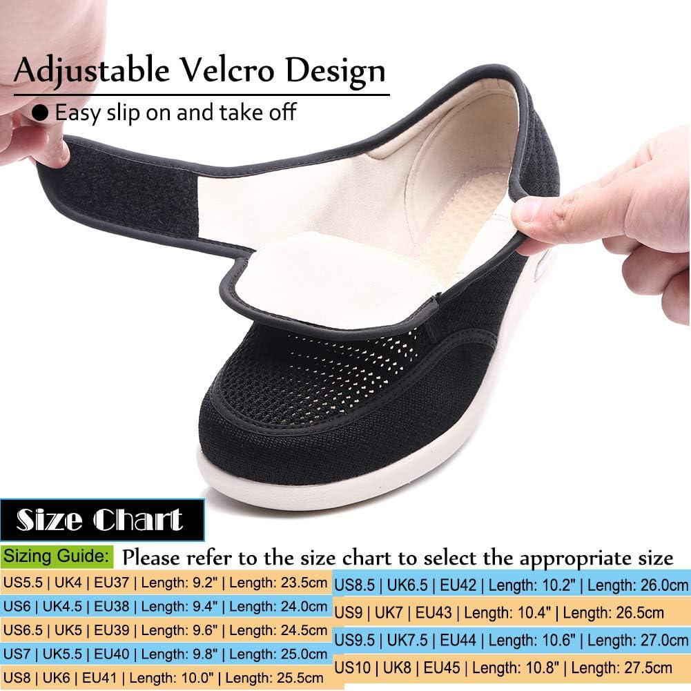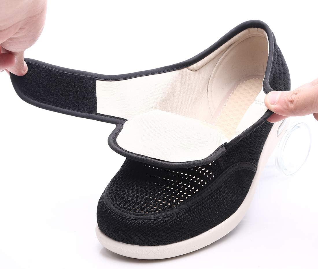 Women’s Wide Width Walking Shoes Adjustable Strap Shoes for Elderly Mother Lightweight Plantar Fasciitis Athletic Sneaker(Black)