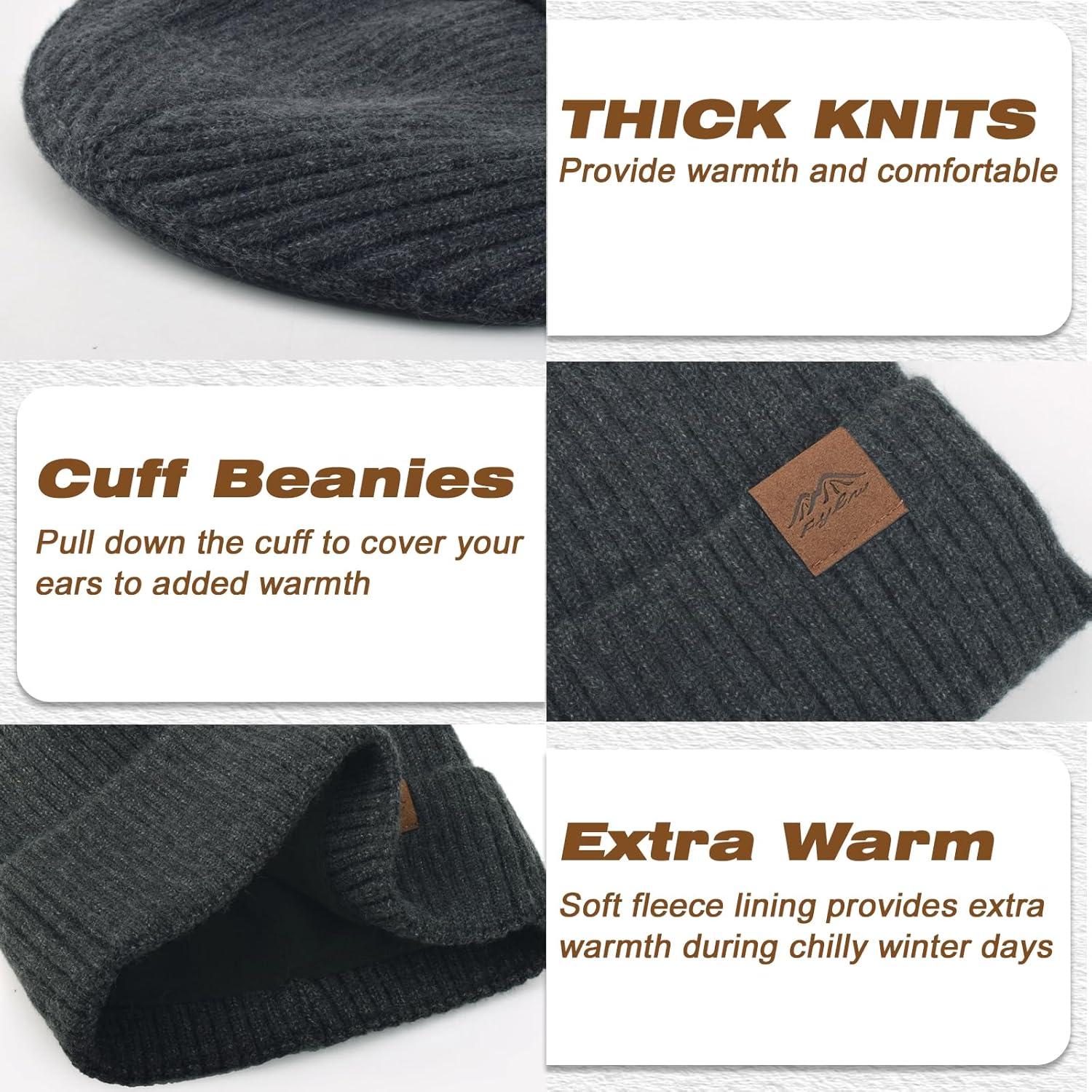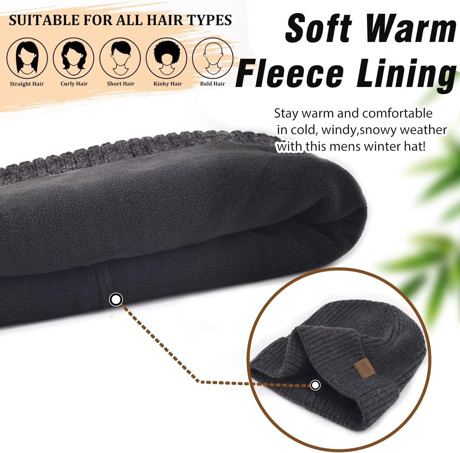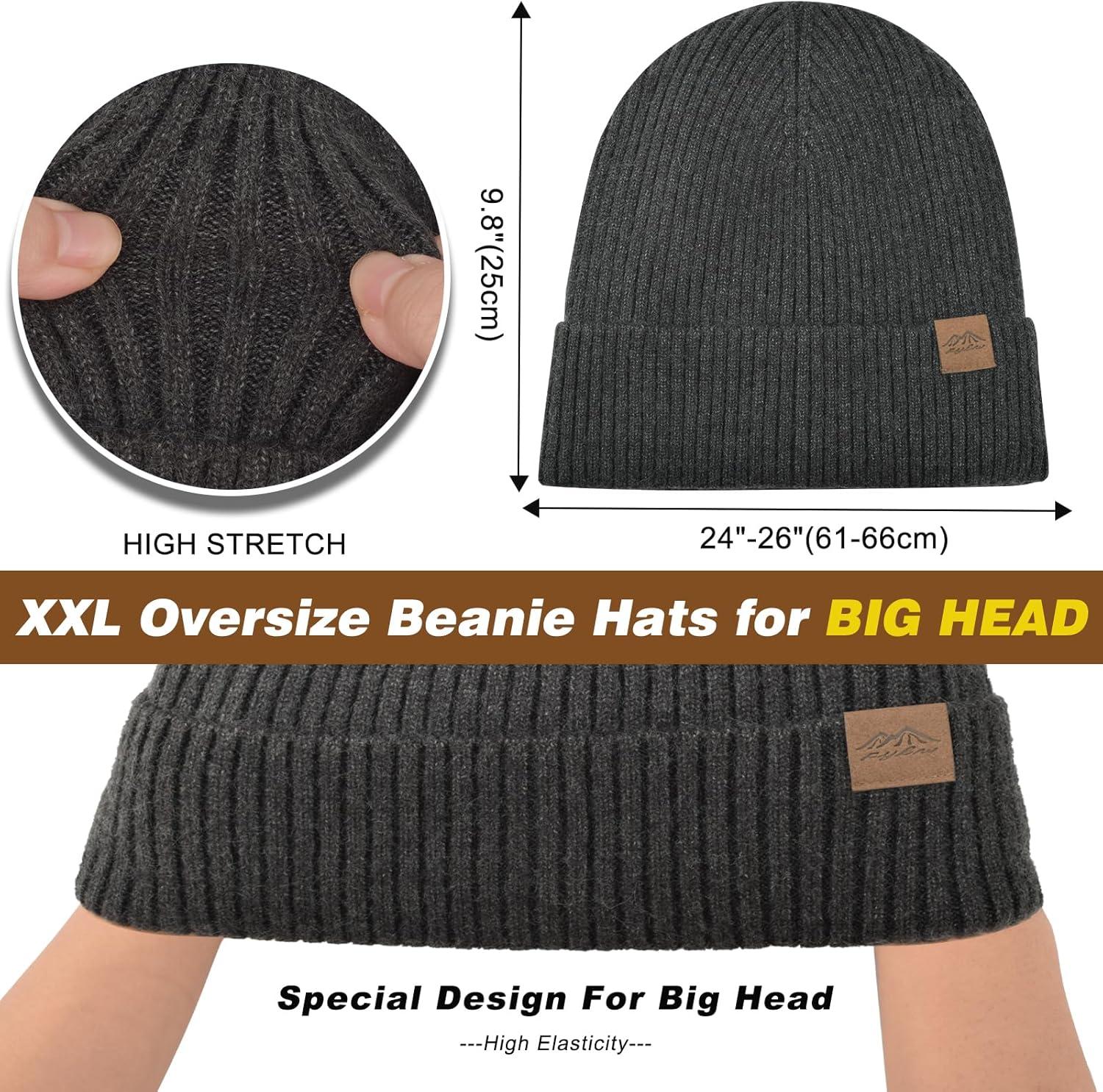 XXL Winter Beanie for Men Big Head, Cuffed Stocking Cap Coral Fleece Lined Warm Knit Beanies Hats(Black Grey)