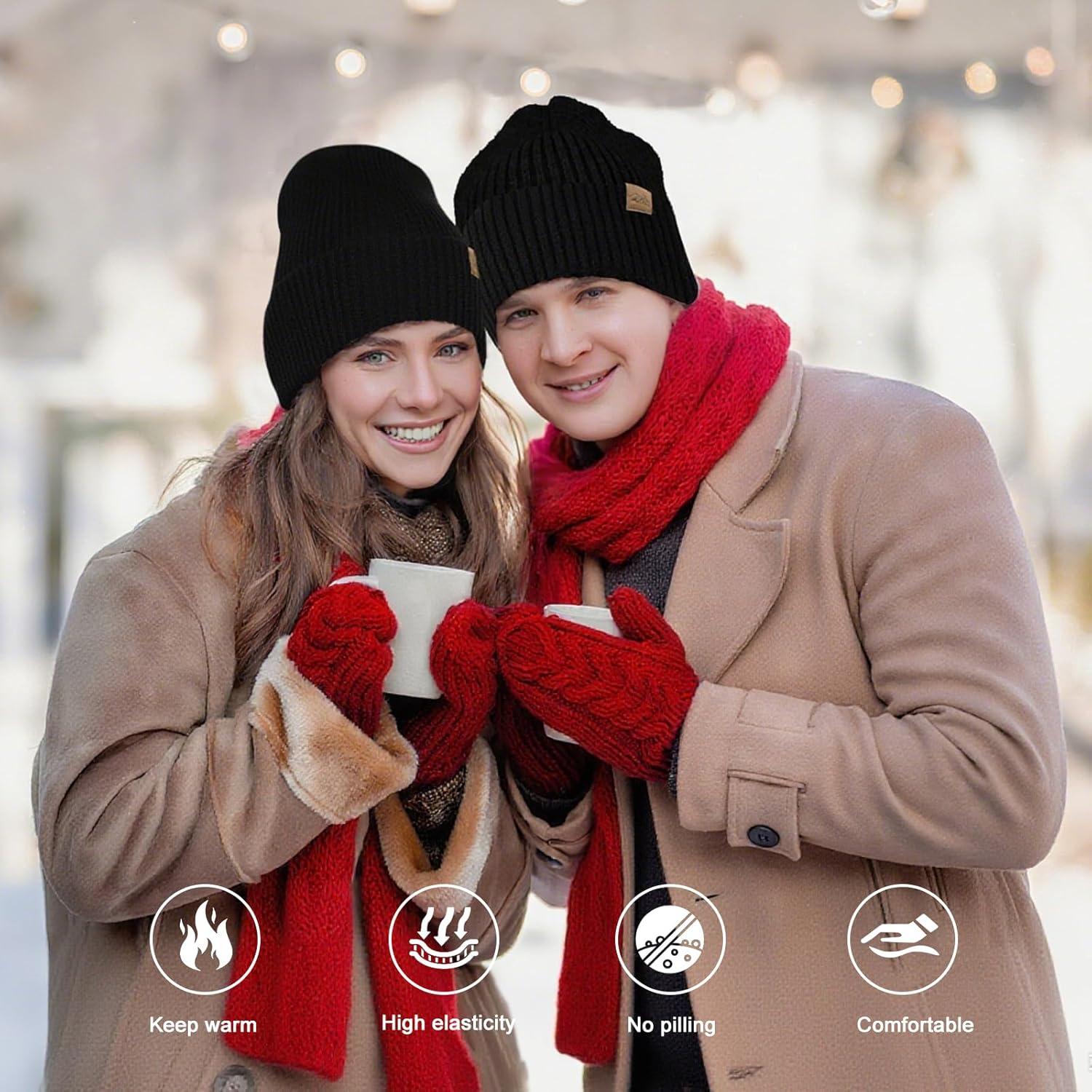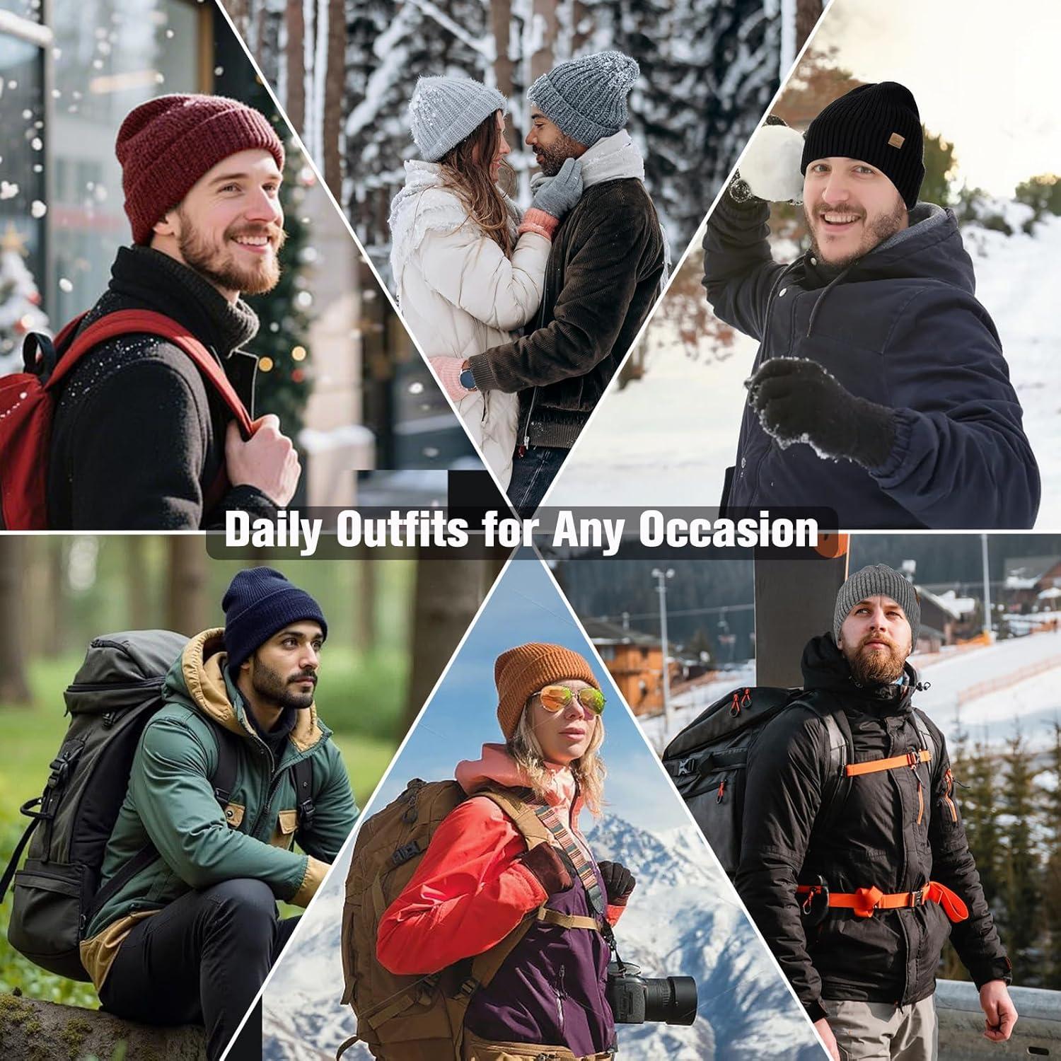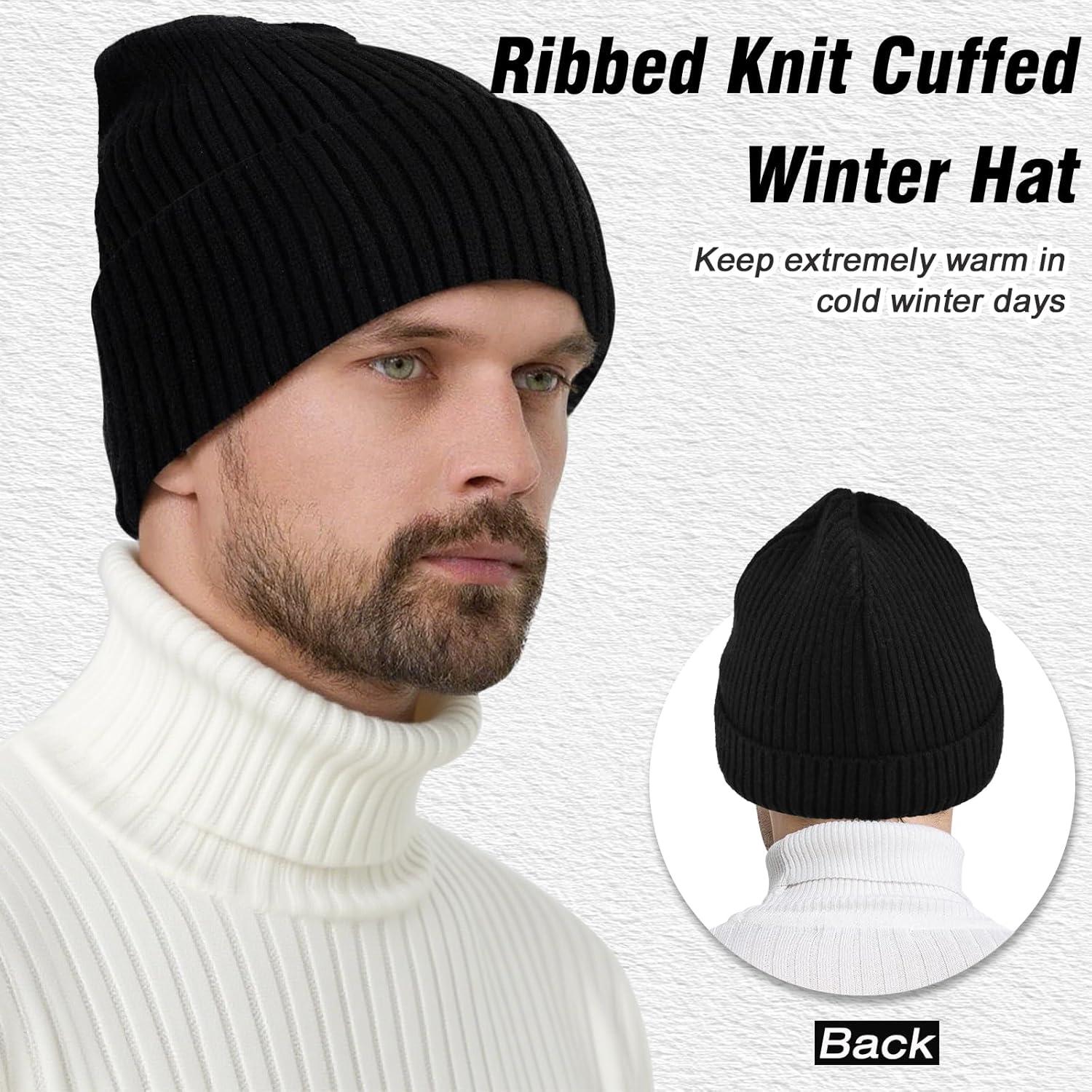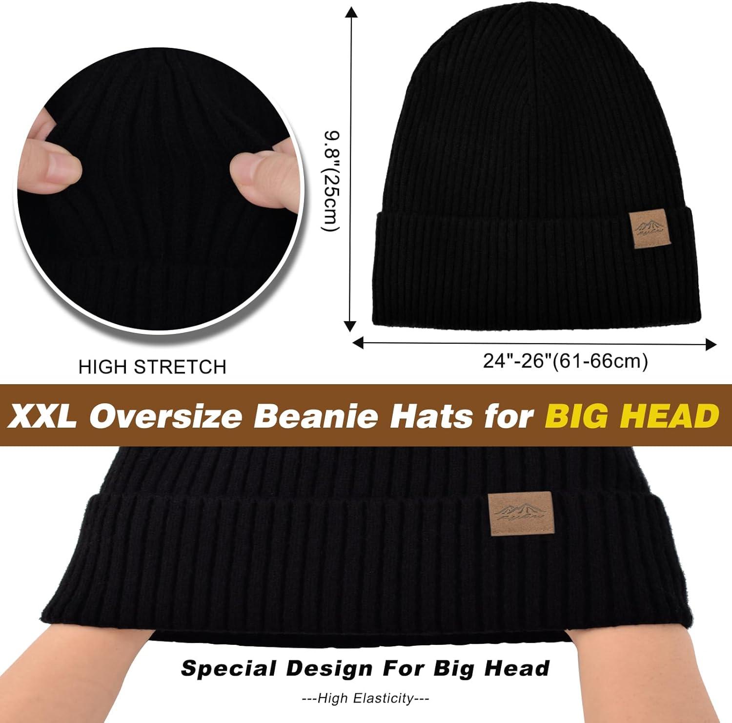 XXL Winter Beanie for Men Big Head, Cuffed Stocking Cap Coral Fleece Lined Warm Knit Beanies Hats(Black)
