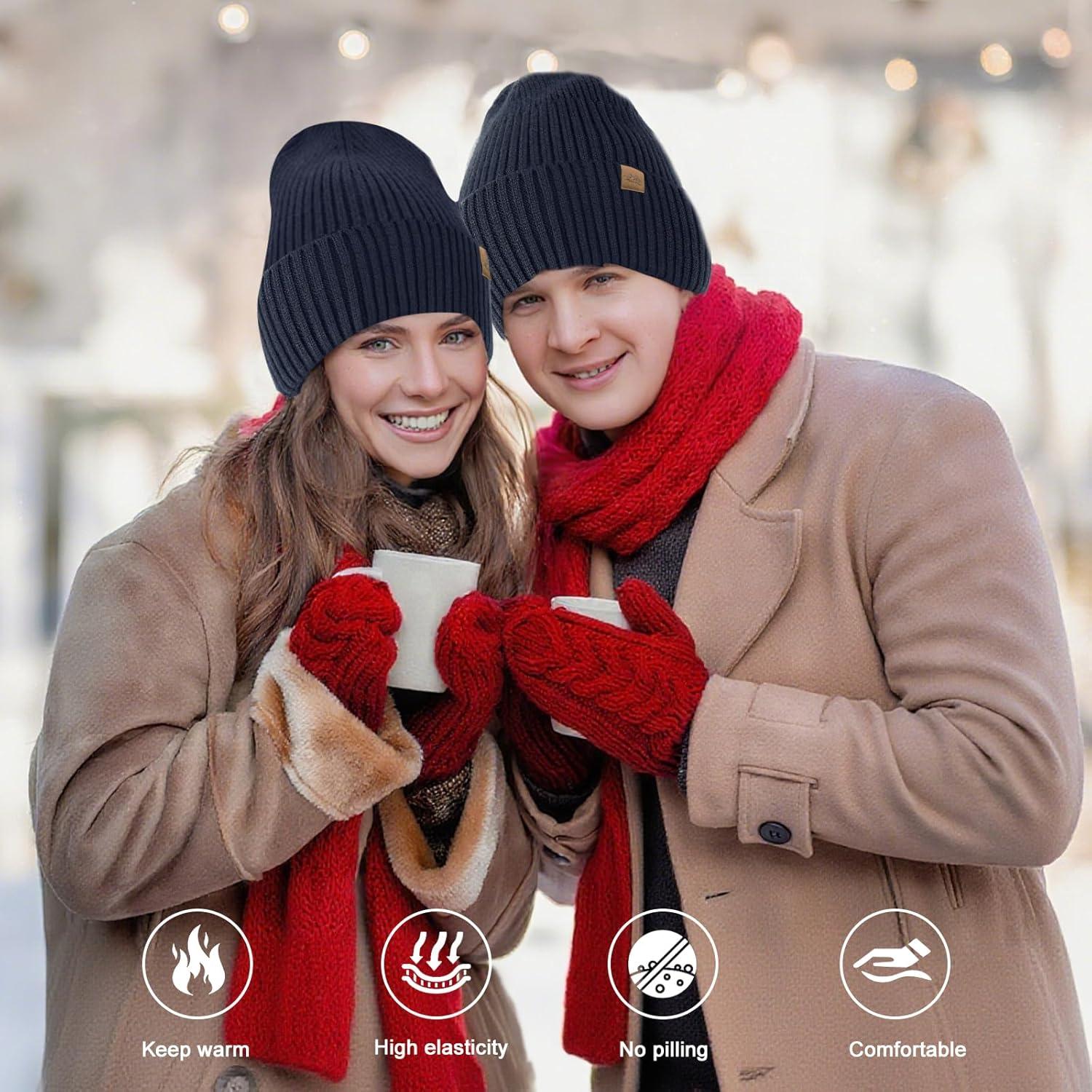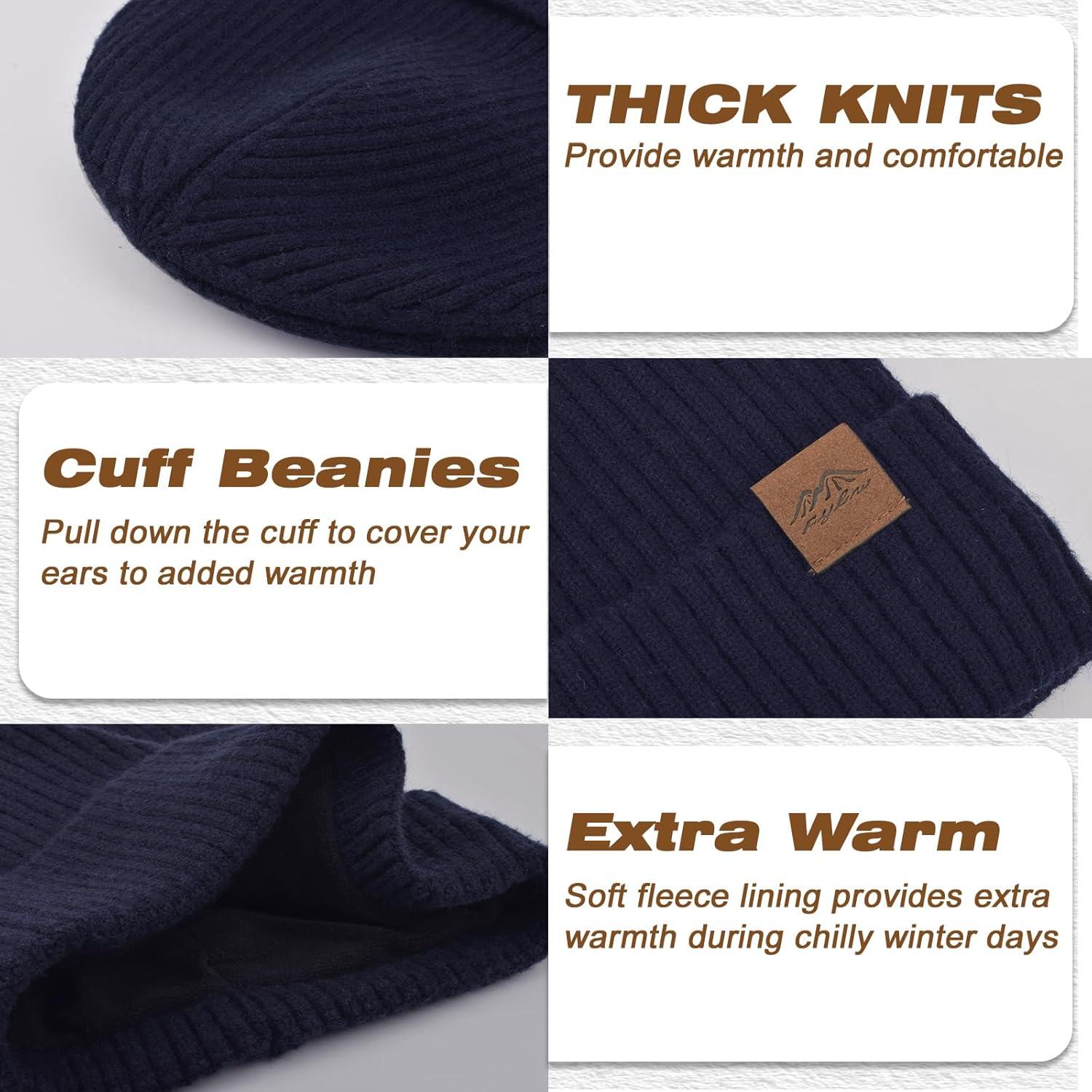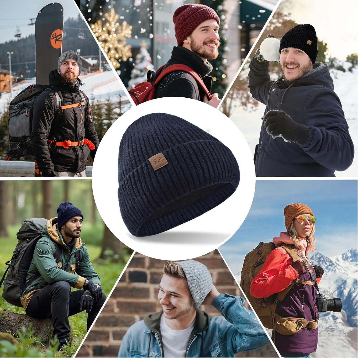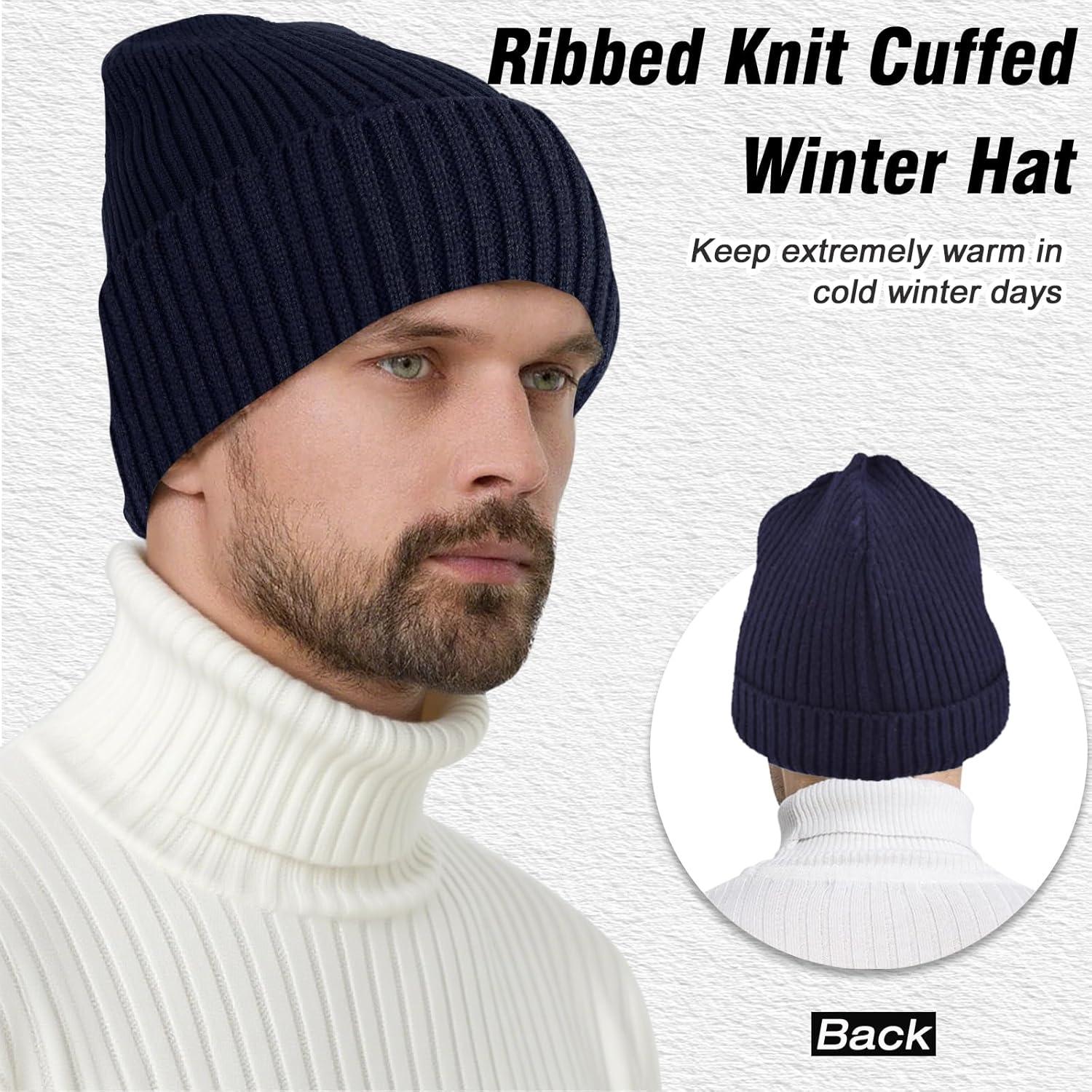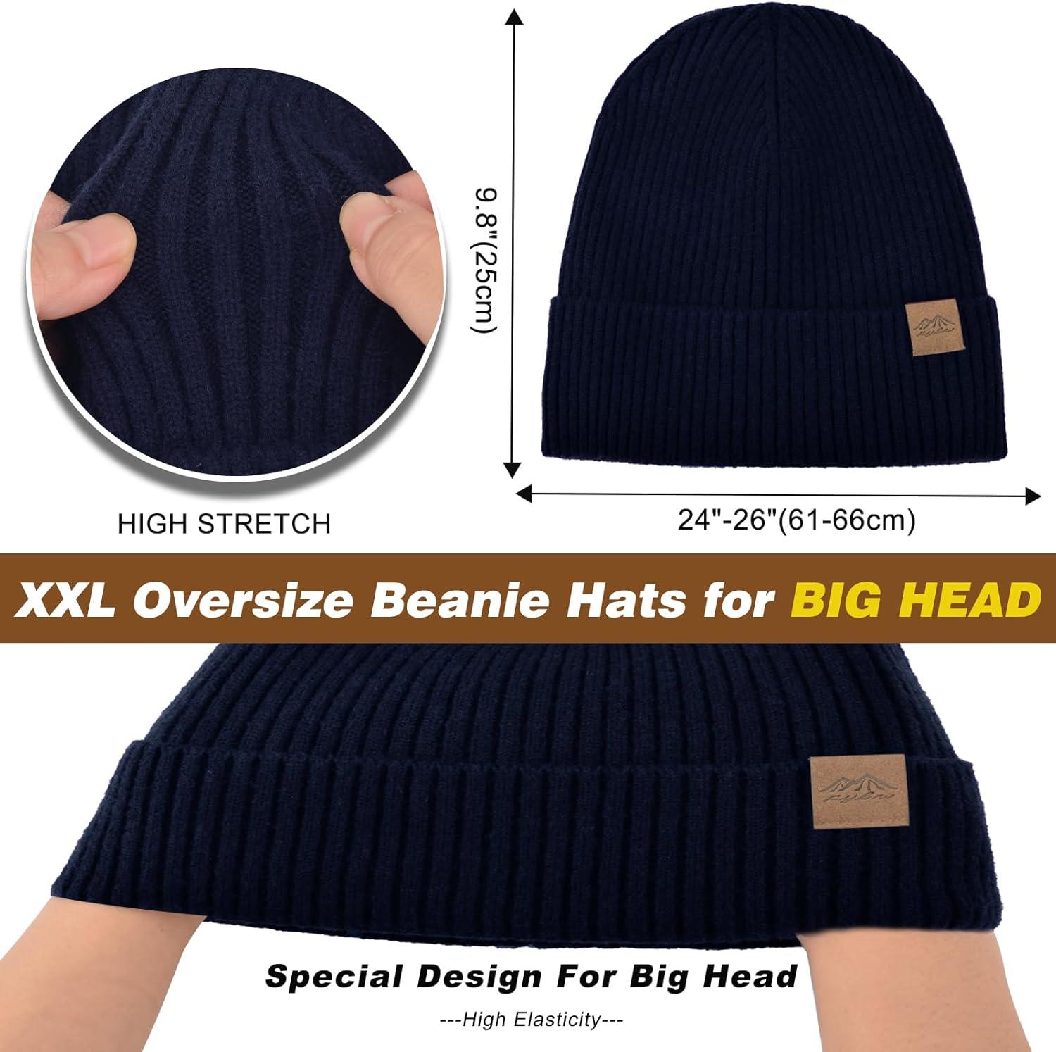 XXL Winter Beanie for Men Big Head, Cuffed Stocking Cap Coral Fleece Lined Warm Knit Beanies Hats(Dark Blue)
